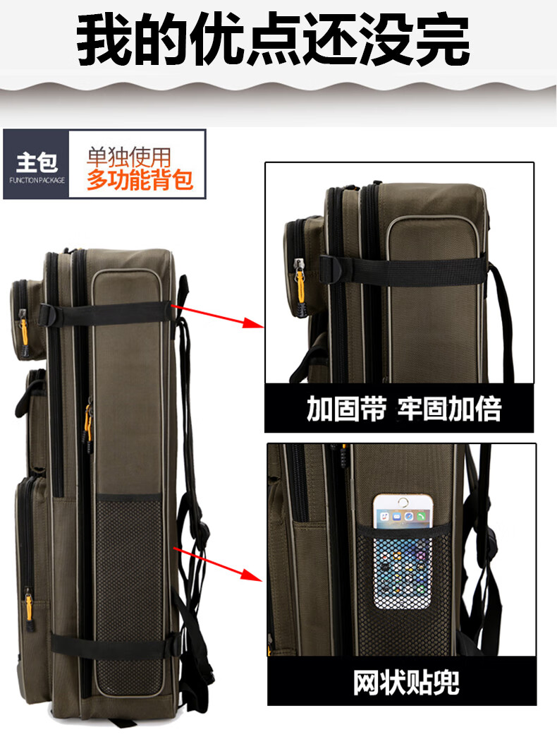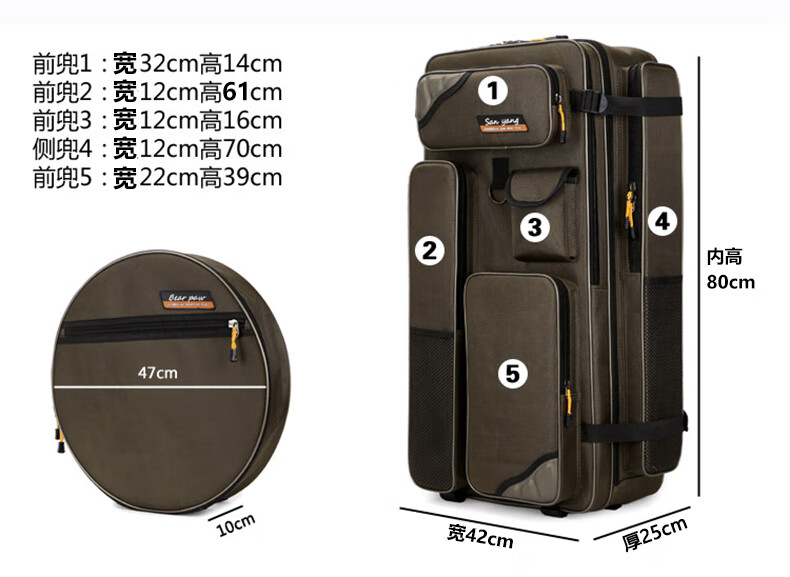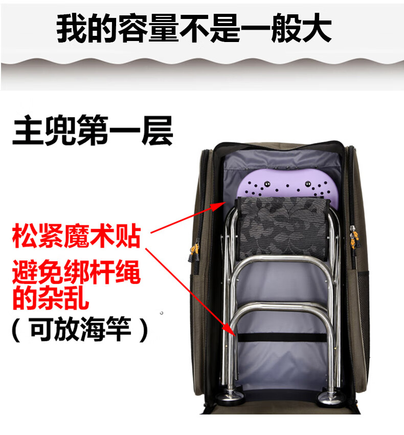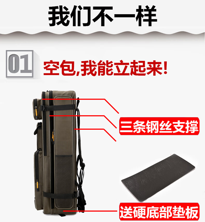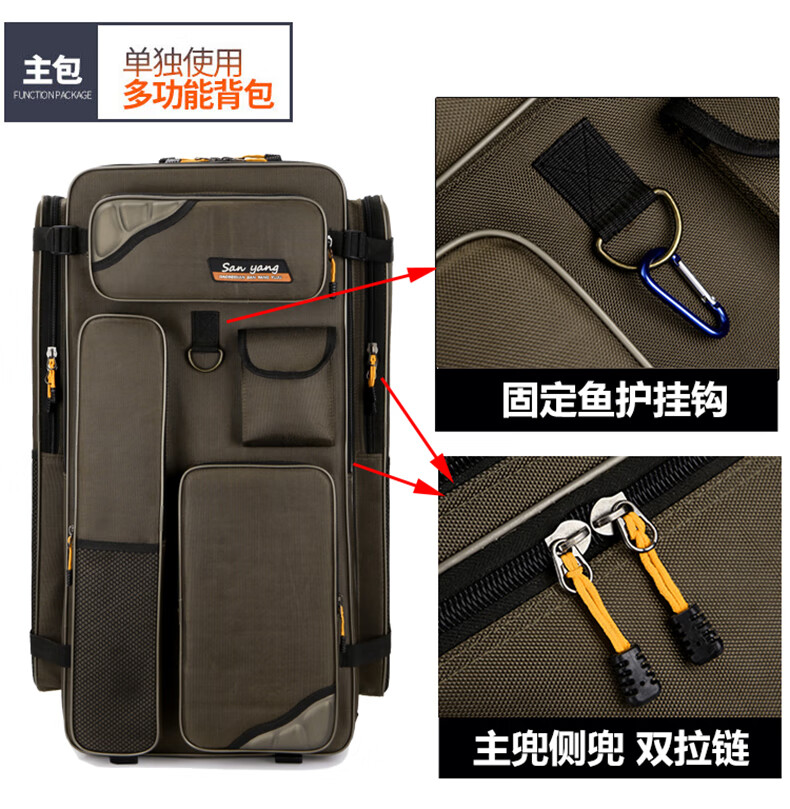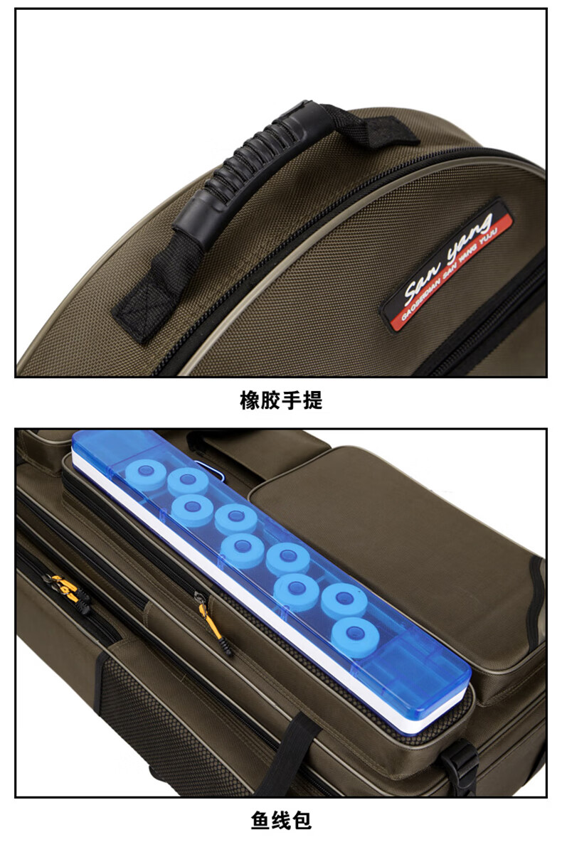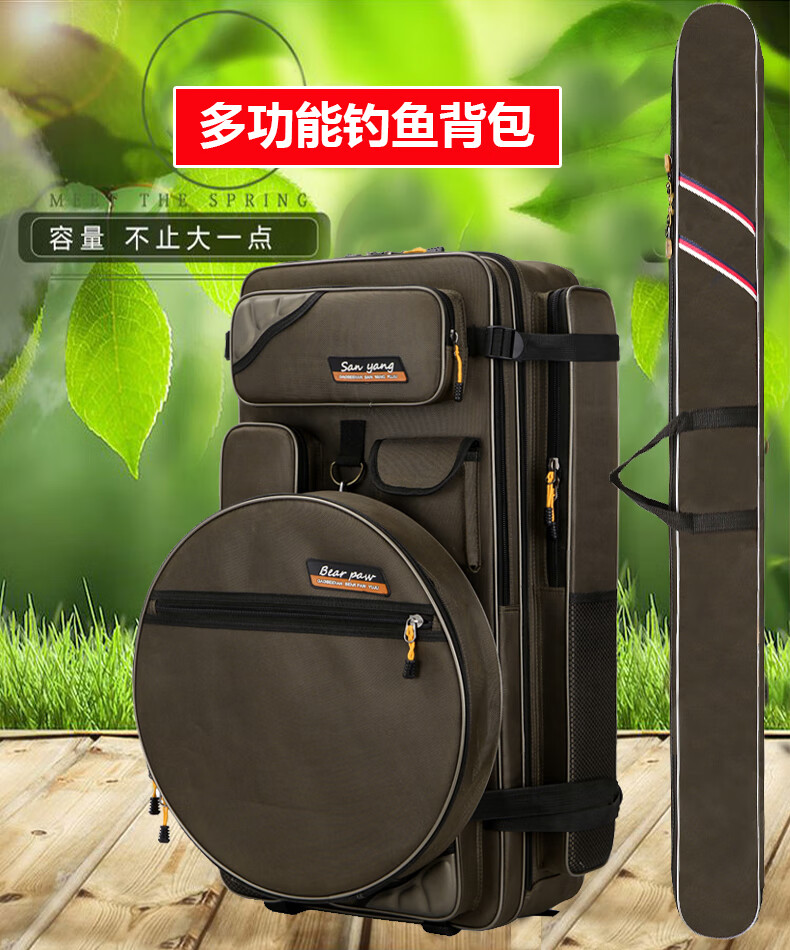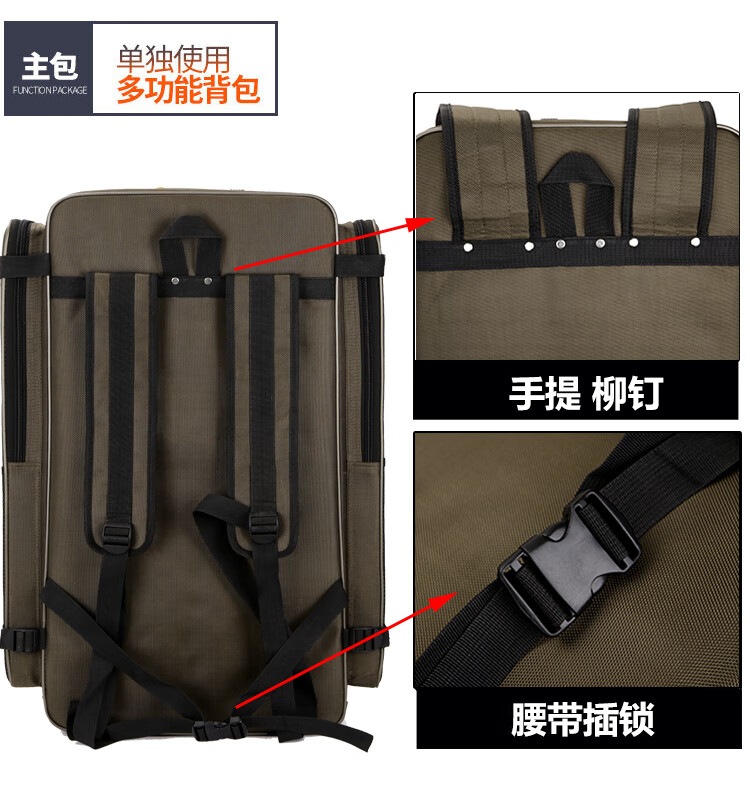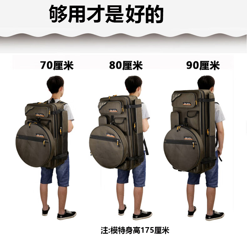 Zailu chair bag, thickened fishing gear bag, fishing chair bag, shoulder fish bag, waterproof fishing rod bag, multi-functional fishing backpack, 65 cm double layer fishing chair bag, main bag only, 1680D brown green