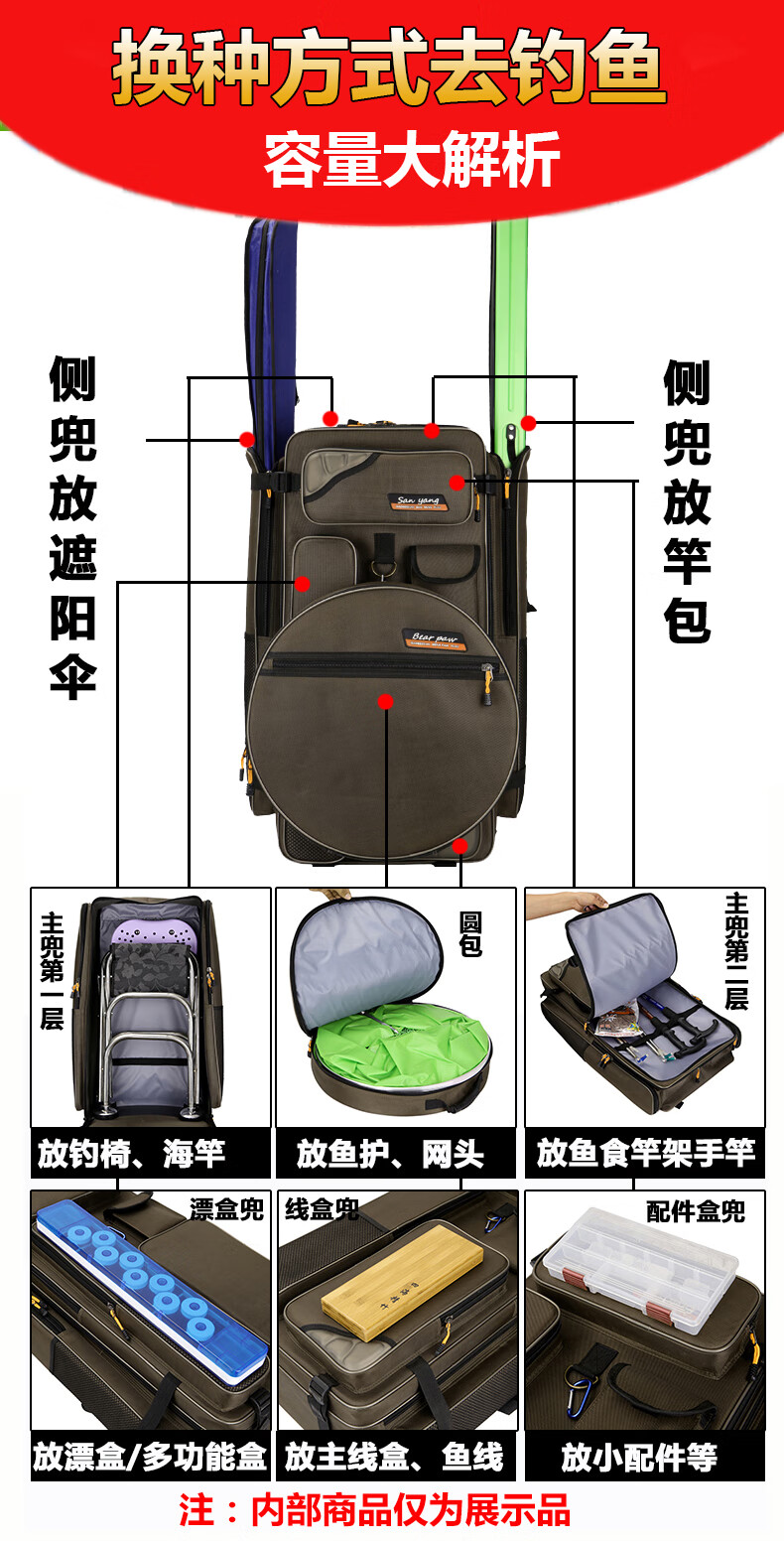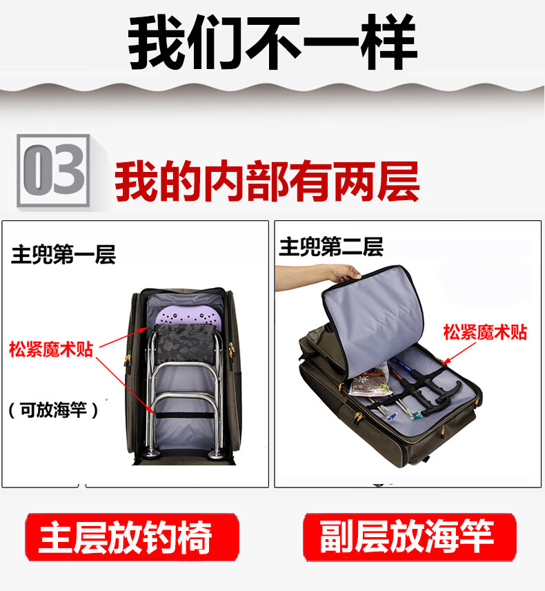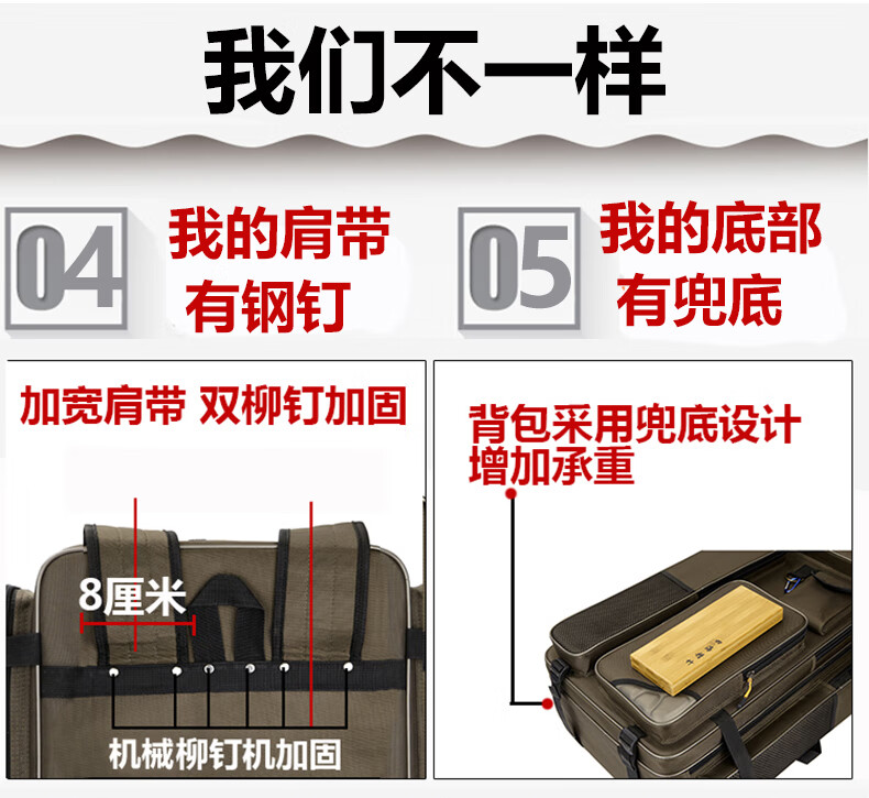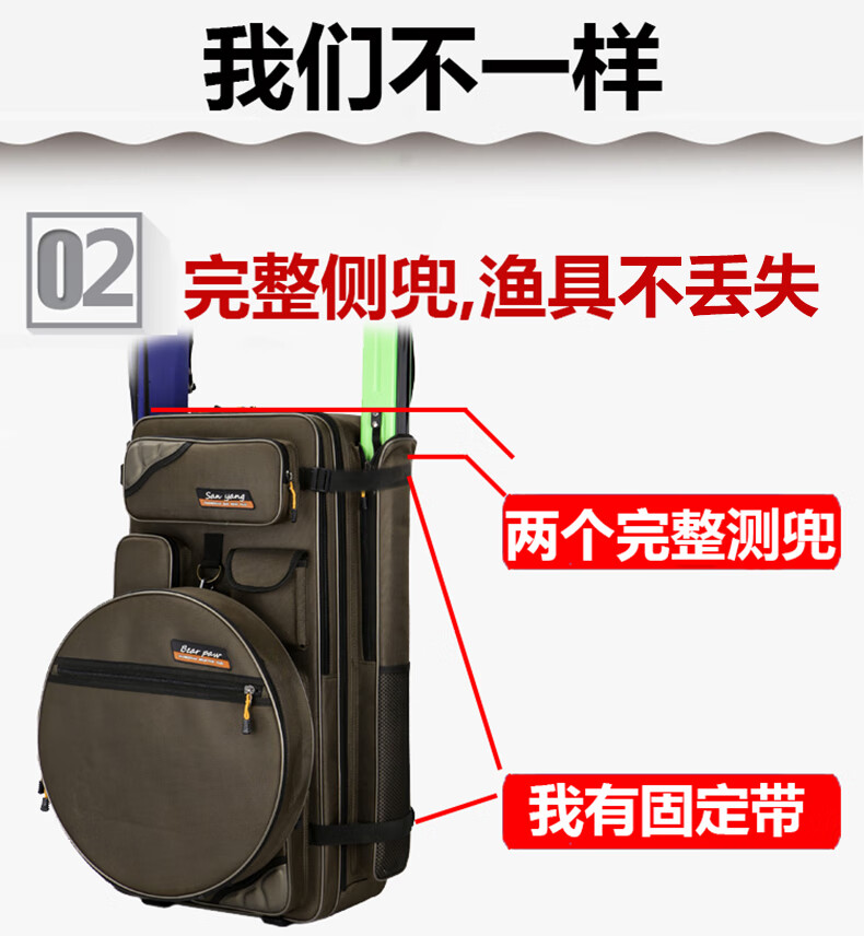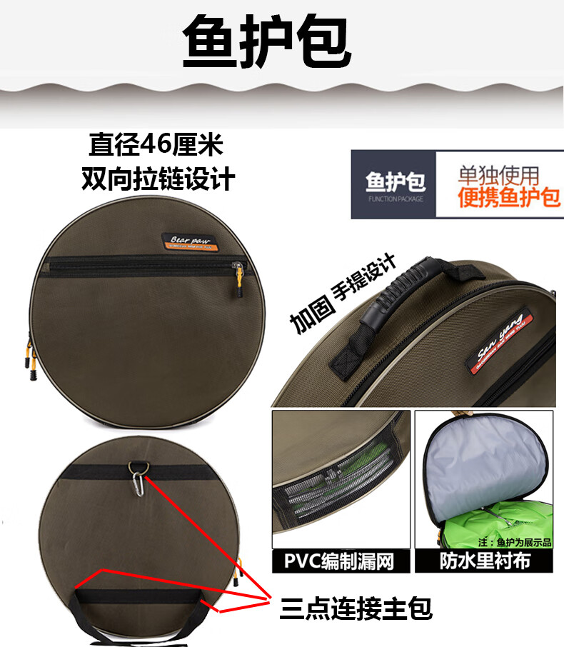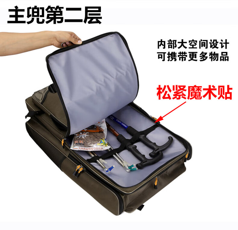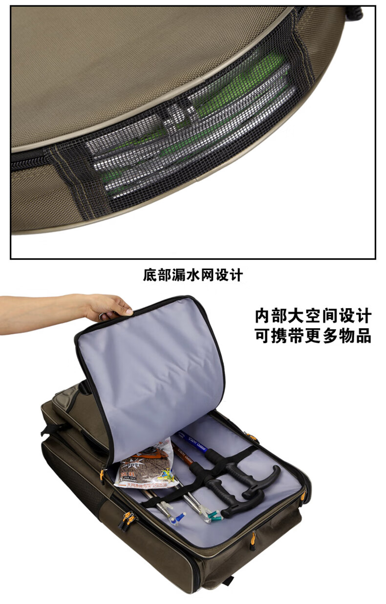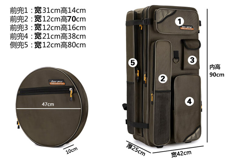 Zailu chair bag, thickened fishing gear bag, fishing chair bag, shoulder fish bag, waterproof fishing rod bag, multi-functional fishing backpack, 65 cm double layer fishing chair bag, main bag only, 1680D brown green