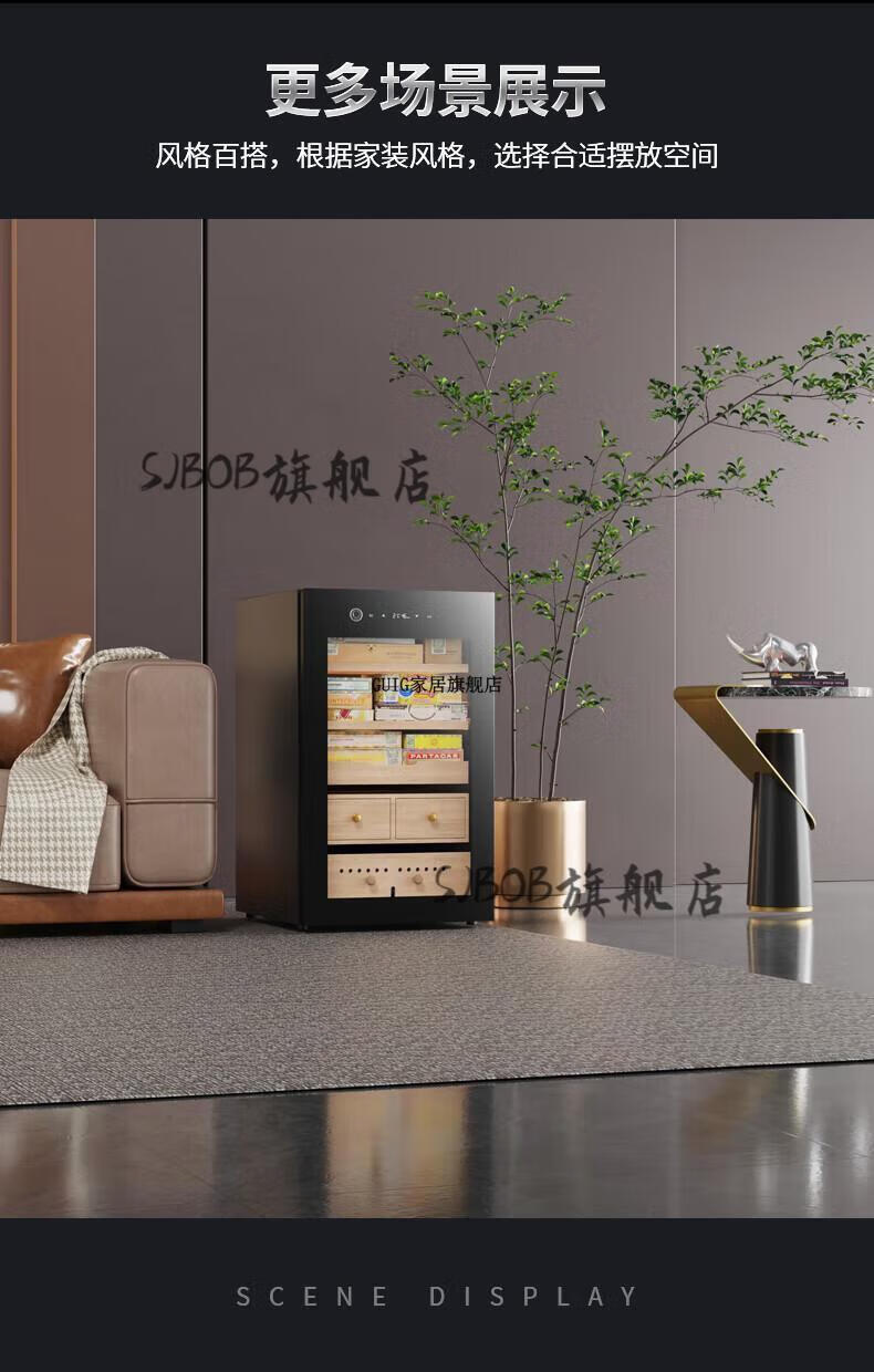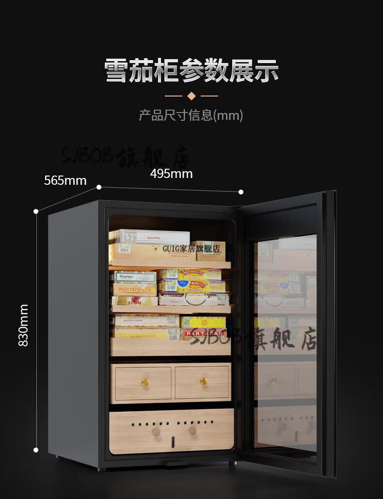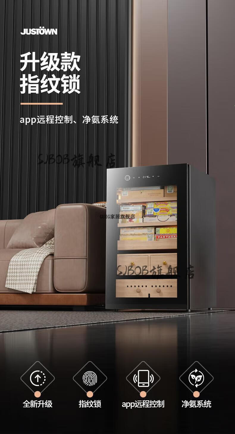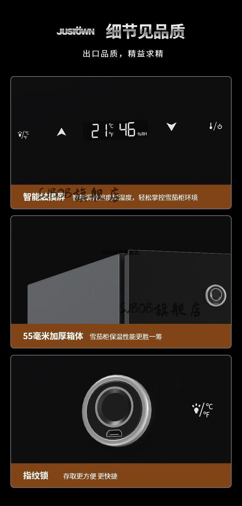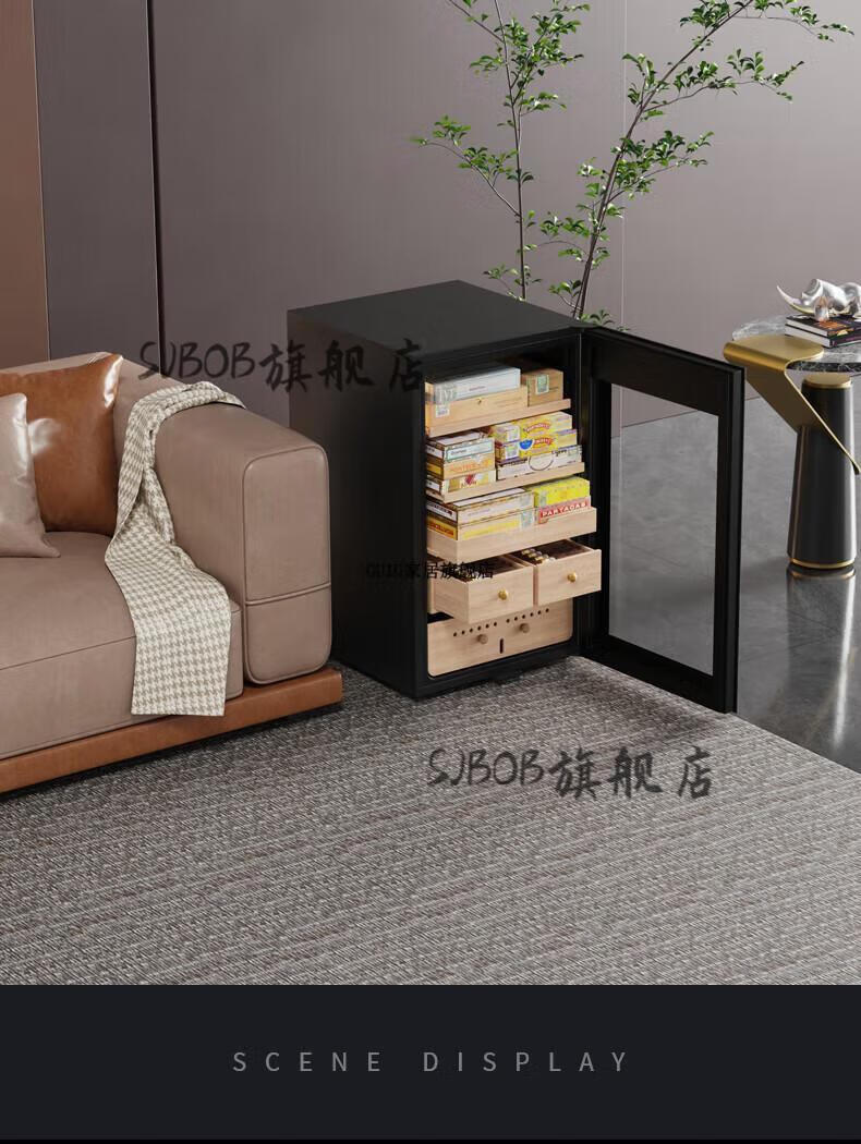 SJBOB German imported quality fingerprint lock compressor constant temperature and humidity cigar cabinet Spanish cedar wood shelf black - compressor model - about 200 pieces
