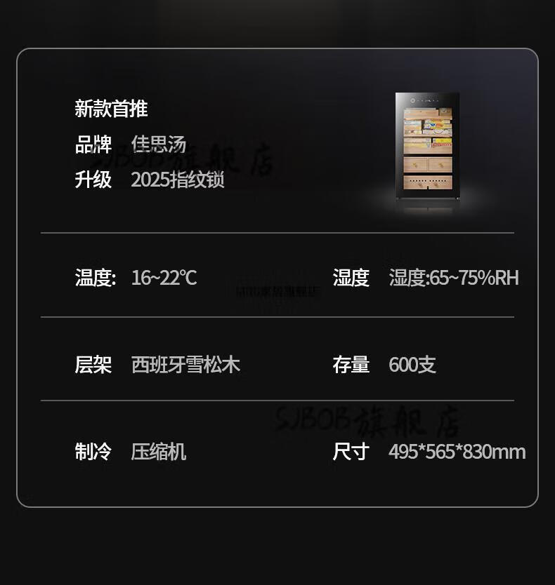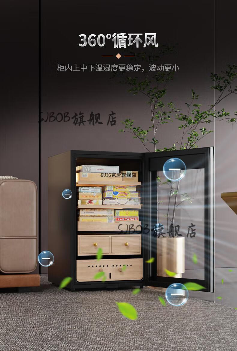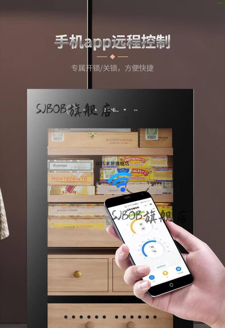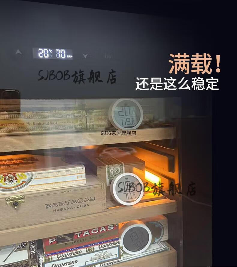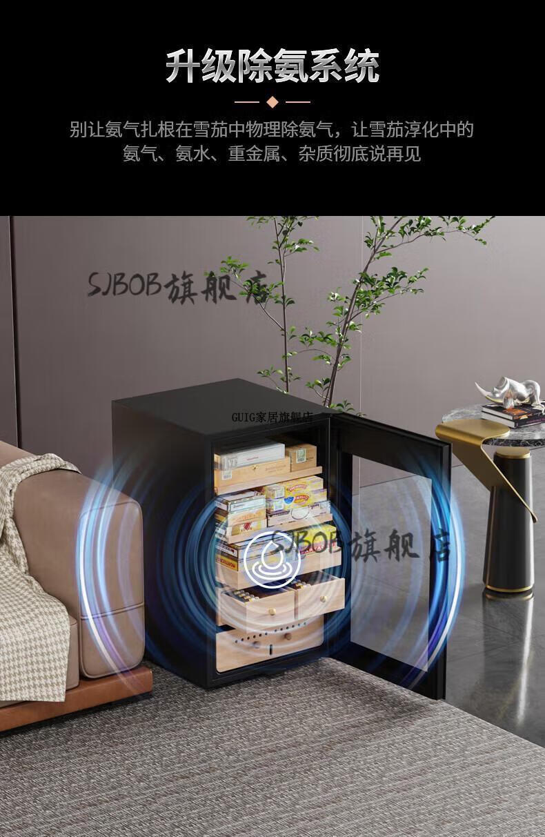 SJBOB German imported quality fingerprint lock compressor constant temperature and humidity cigar cabinet Spanish cedar wood shelf black - compressor model - about 200 pieces