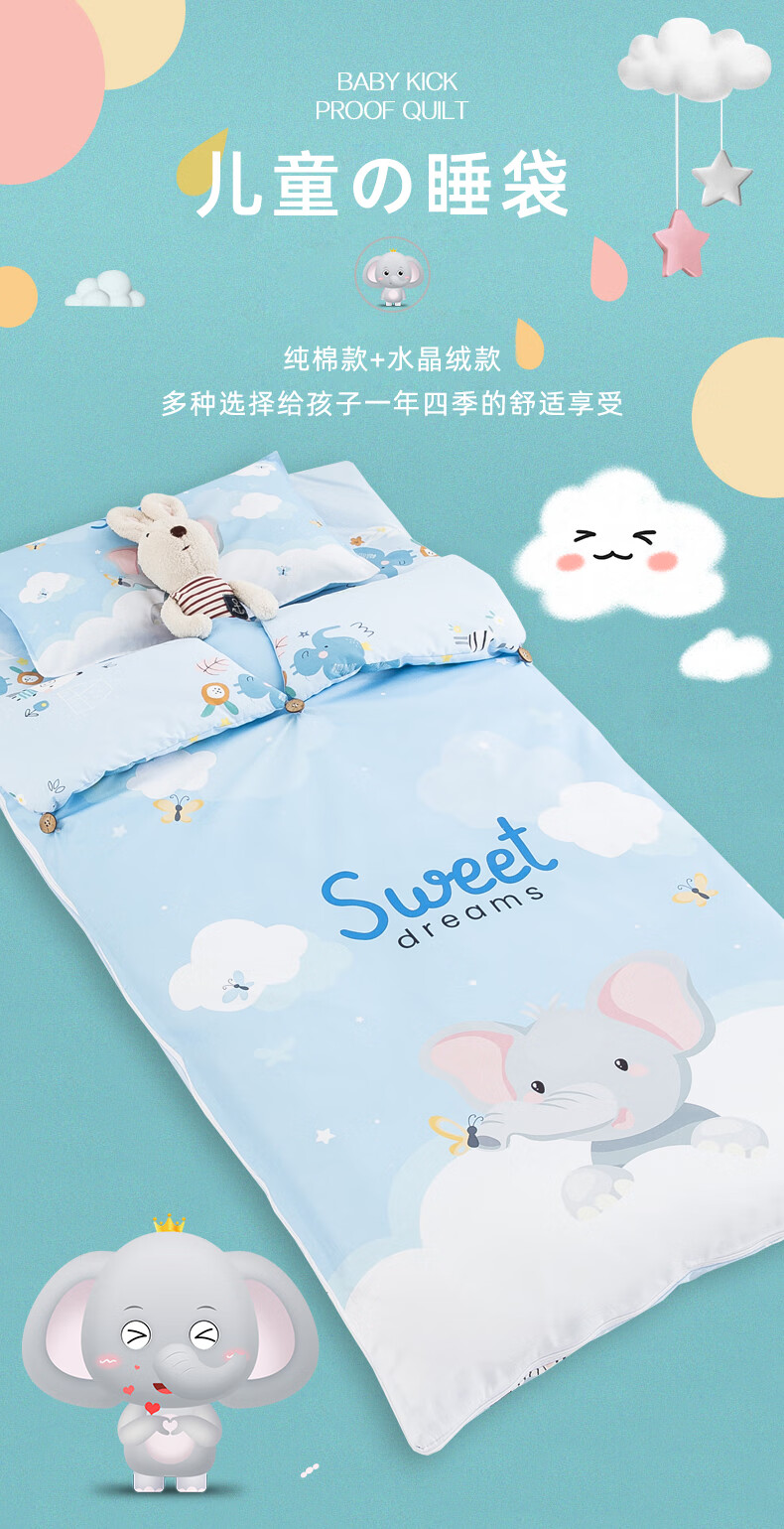 Children aged 0-12 years old student sleeping bag anti-kicking quilt autumn and winter plus velvet baby sleeping bag baby thickened winter universal four-season excavator soft and comfortable 80X150cm cotton mother-in-law liner