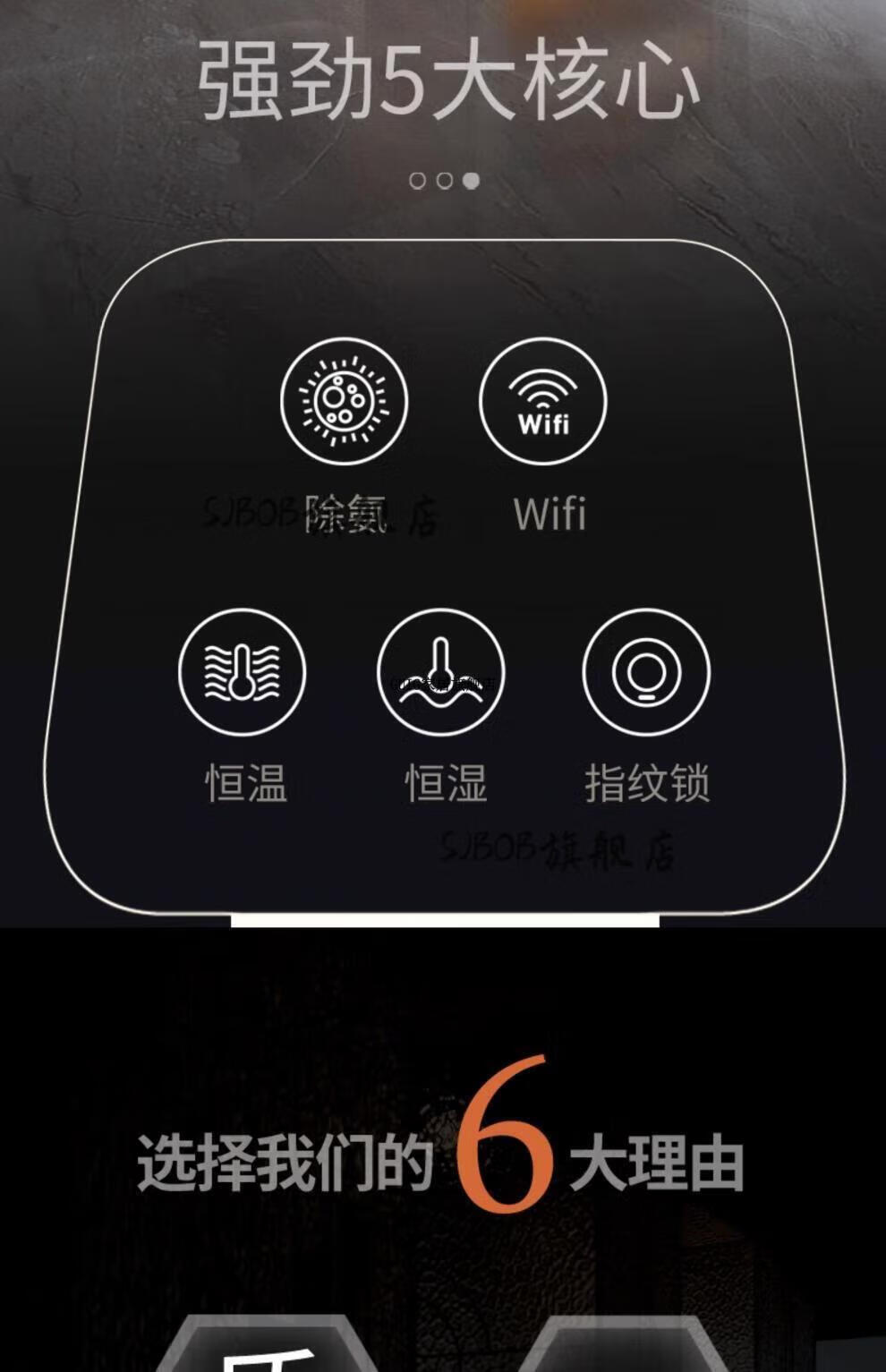 SJBOB German imported quality constant temperature and humidity cigar cabinet compressor air-cooled humidification cabinet cedar wood with lock WIFI ammonia removal JC-6060/L constant temperature and humidity + mechanical 0L