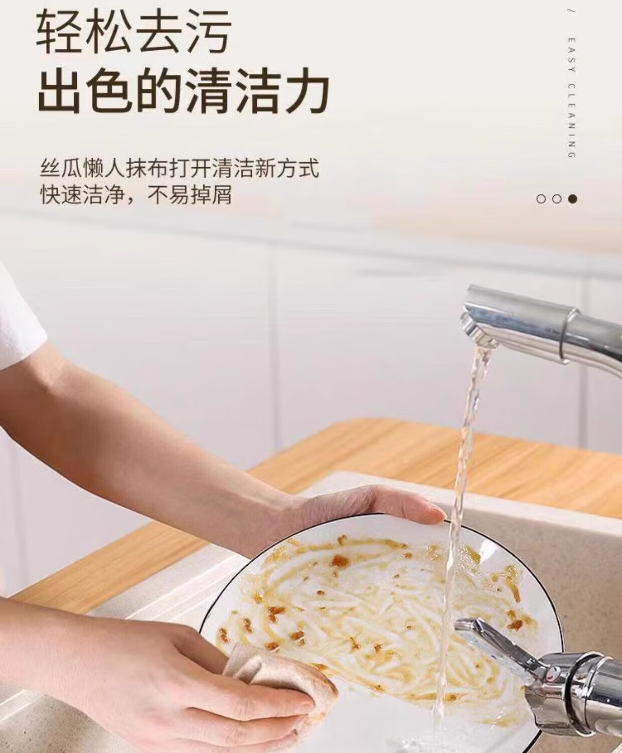 Luffa rag, vegetable fiber, absorbs oil and does not stick to oil. Kitchen is easy to clean, thickened loofah dishcloth, scouring pad, removes oil stains, 3 pieces, wet and dry use
