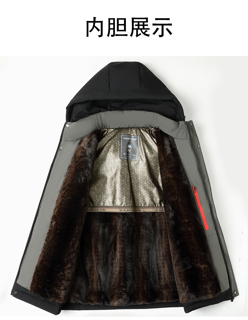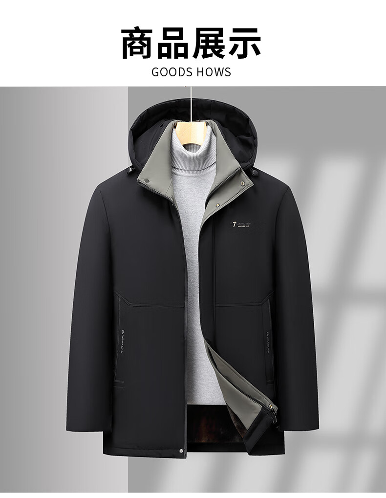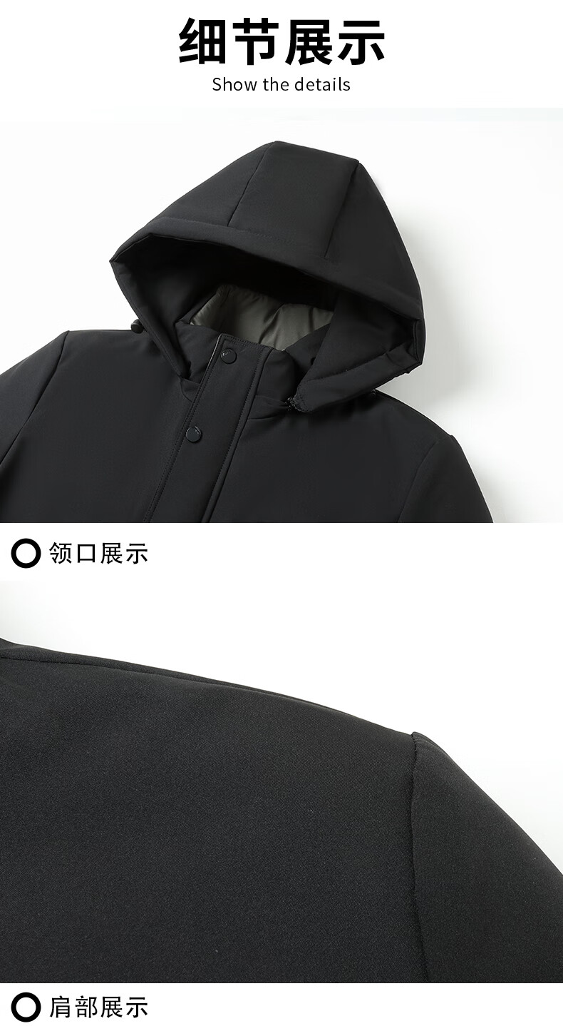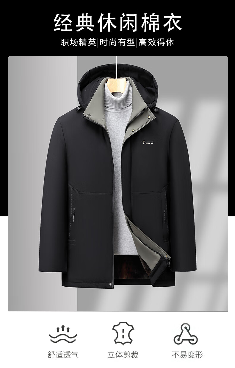 Woodpecker (TUCANO) cotton-padded jacket for men, thickened with velvet, middle-aged and elderly dad's jacket, winter jacket, winter cotton-padded jacket for the elderly, black (thickened with velvet + removable cap) XL (110-125Jin Jin is equal to 0.5kg)
