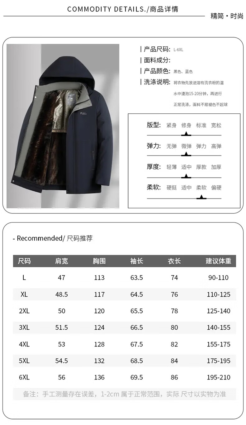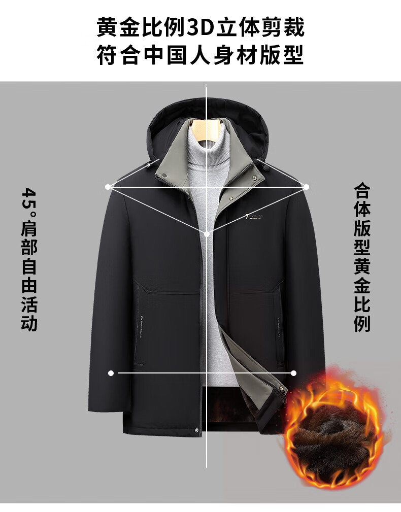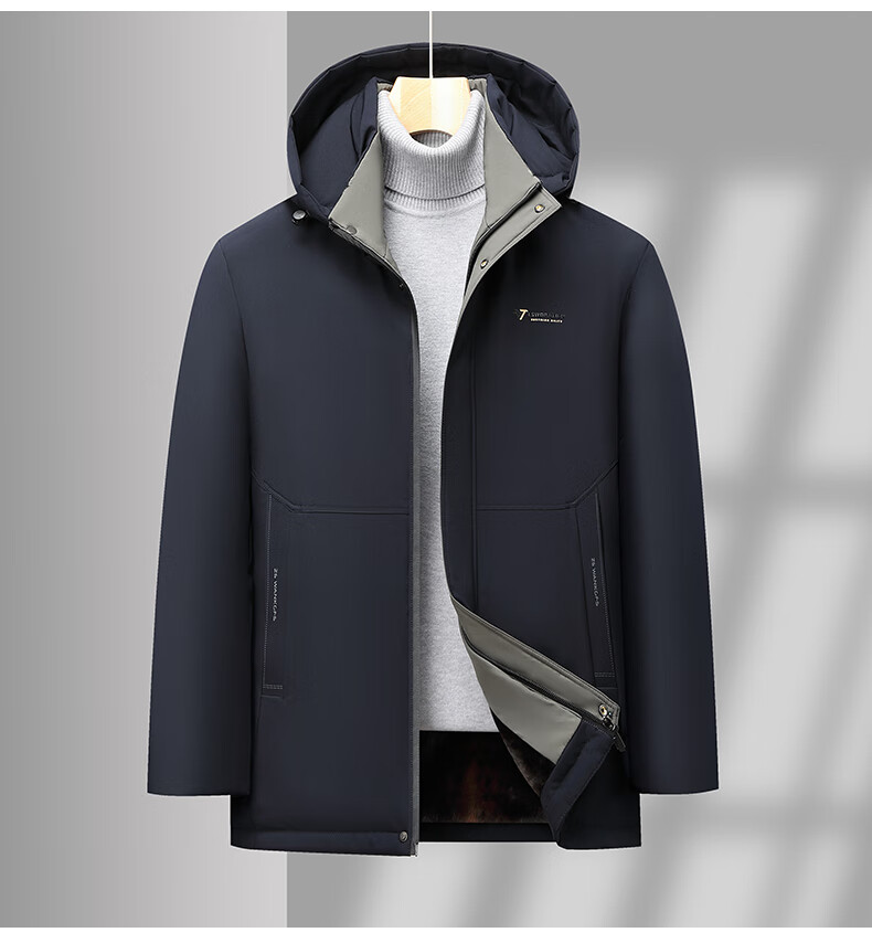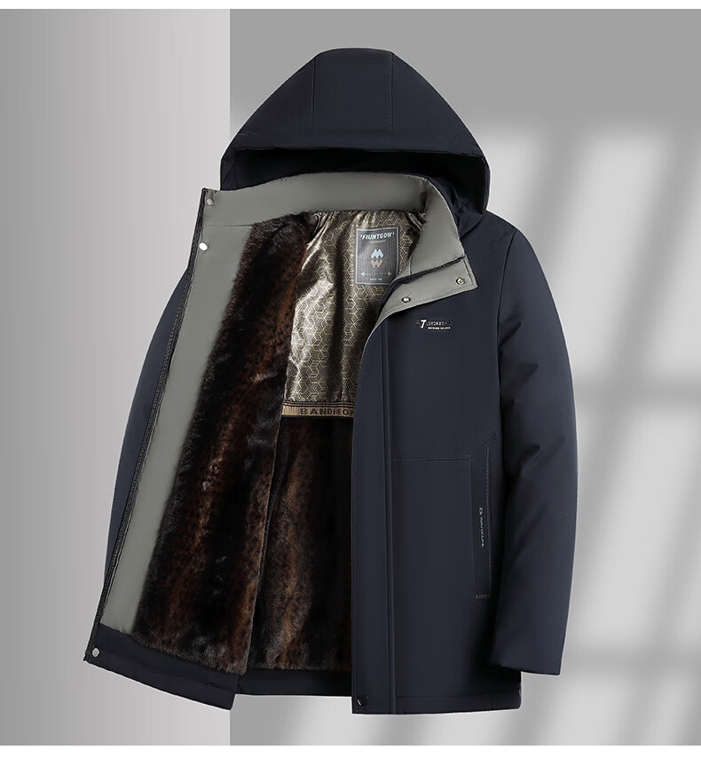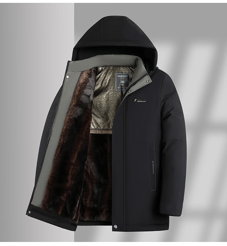 Woodpecker (TUCANO) cotton-padded jacket for men, thickened with velvet, middle-aged and elderly dad's jacket, winter jacket, winter cotton-padded jacket for the elderly, black (thickened with velvet + removable cap) XL (110-125Jin Jin is equal to 0.5kg)