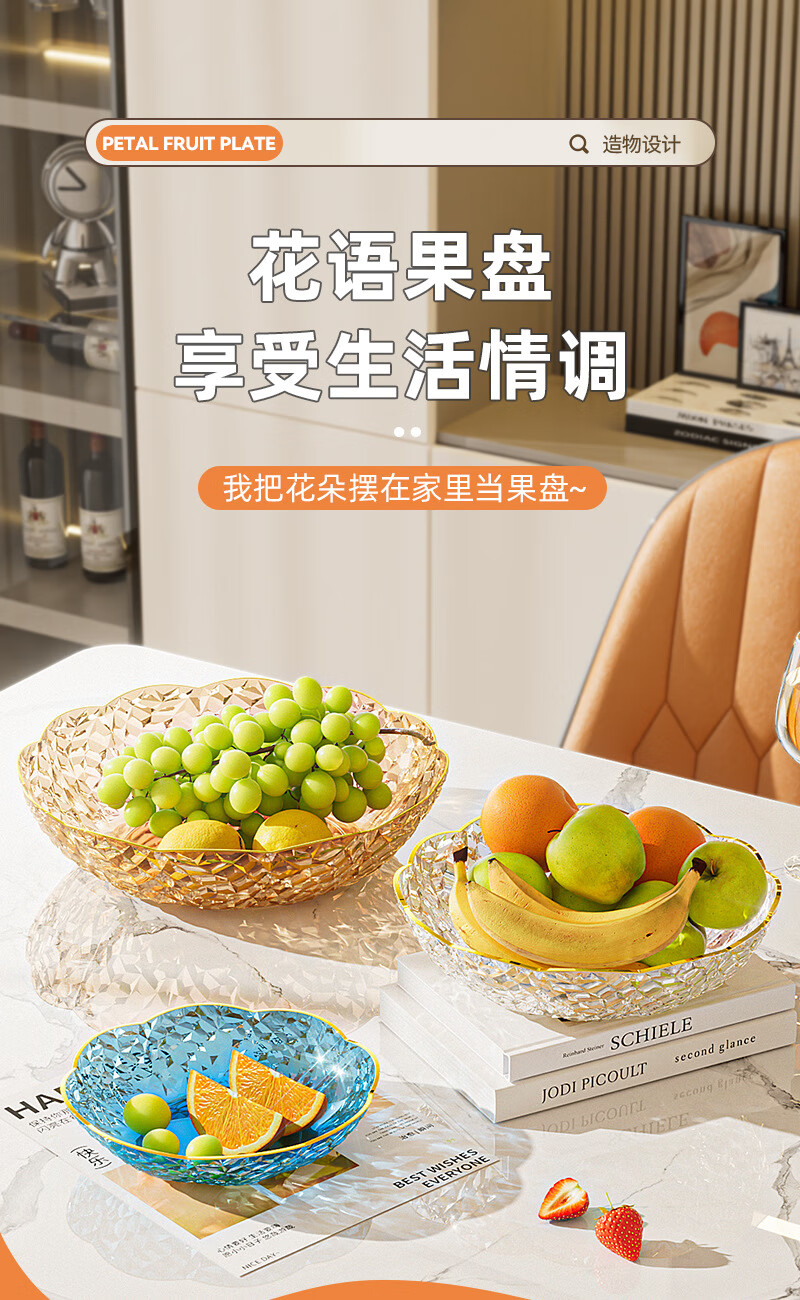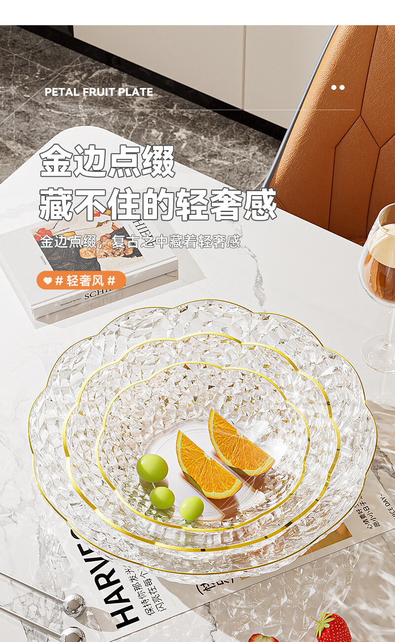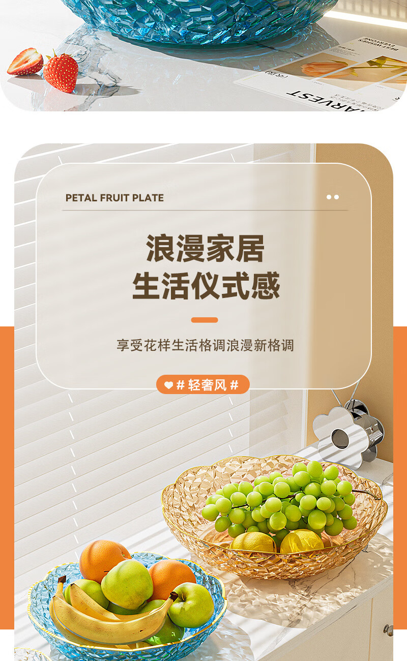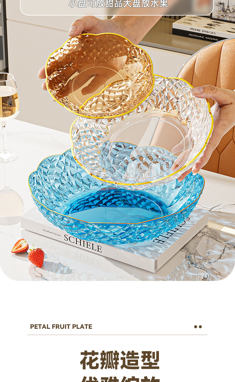 Internet celebrity fruit plate light luxury flower shape transparent Chinese plate home living room coffee table candy snack plate snack plate fruit bowl white large size