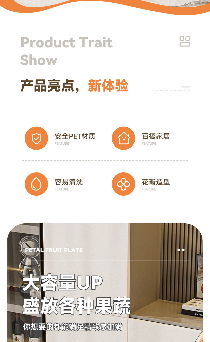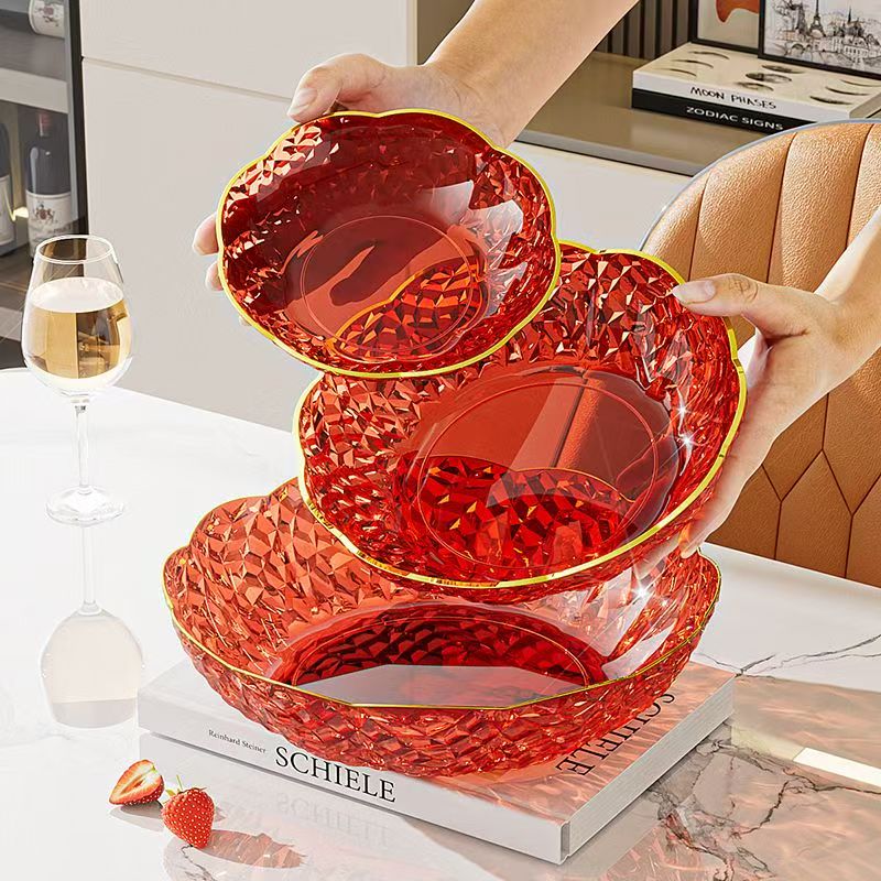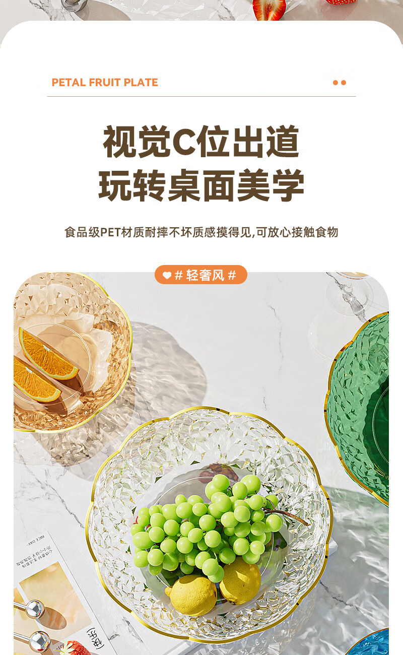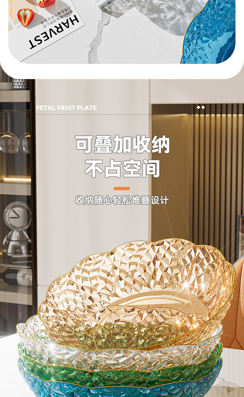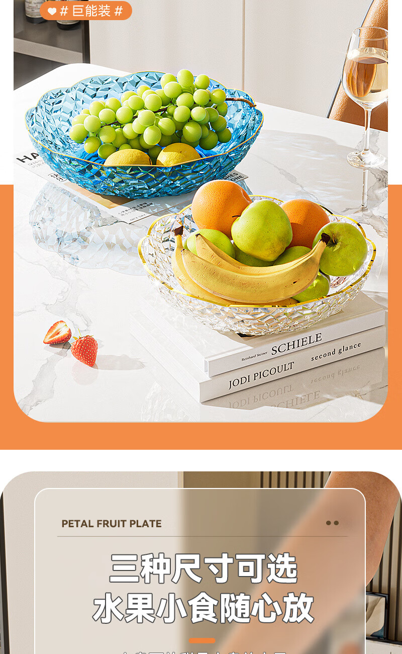 Internet celebrity fruit plate light luxury flower shape transparent Chinese plate home living room coffee table candy snack plate snack plate fruit bowl white large size