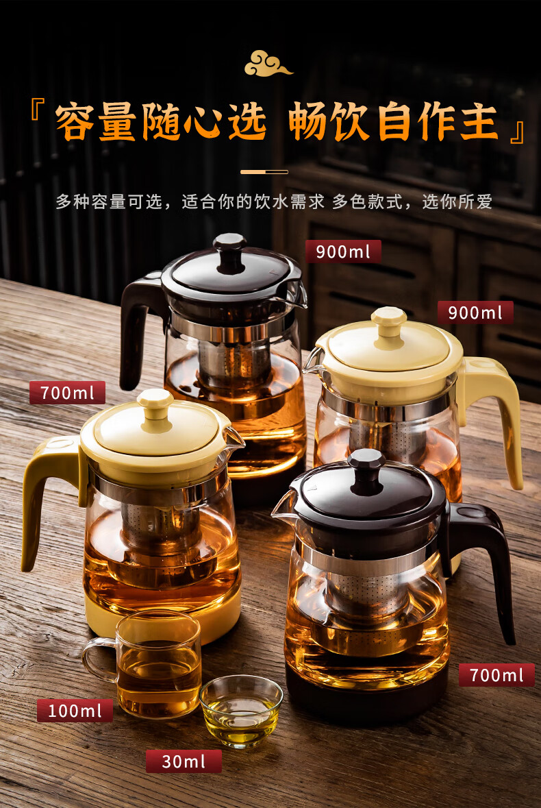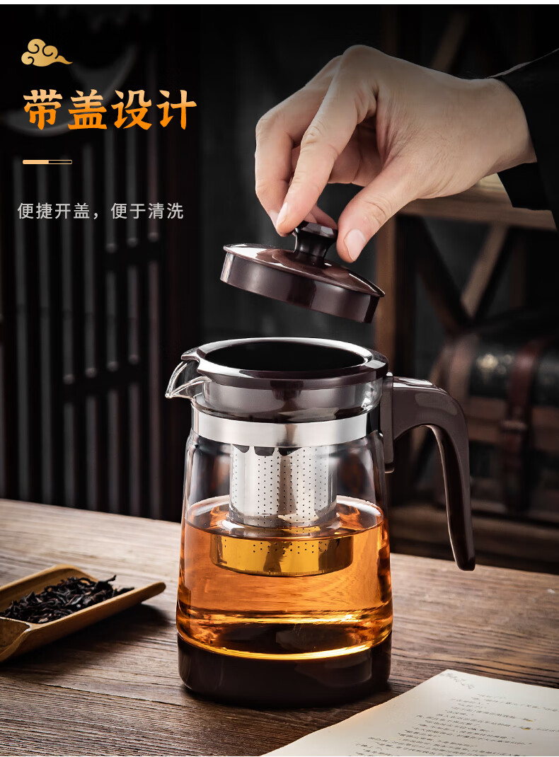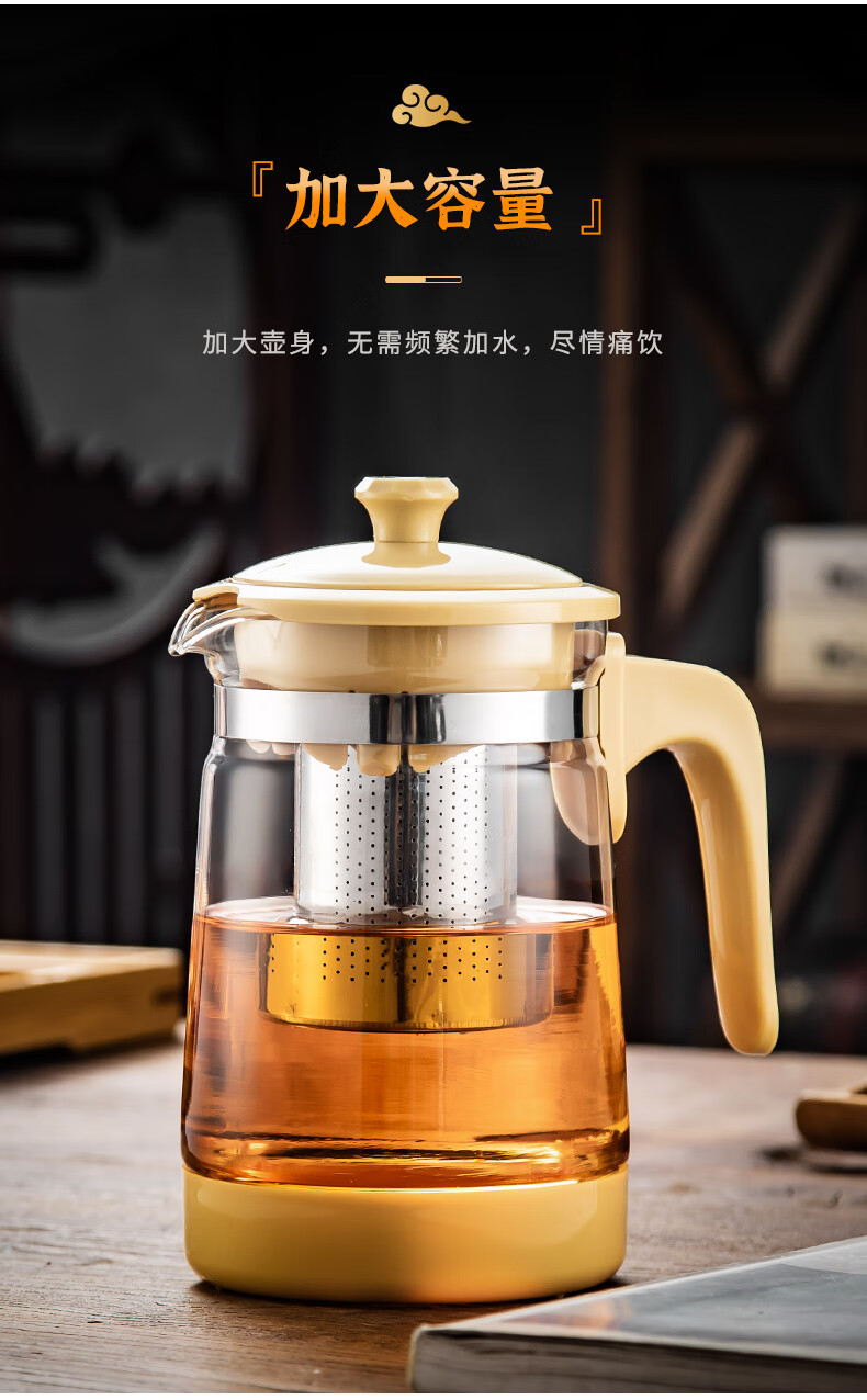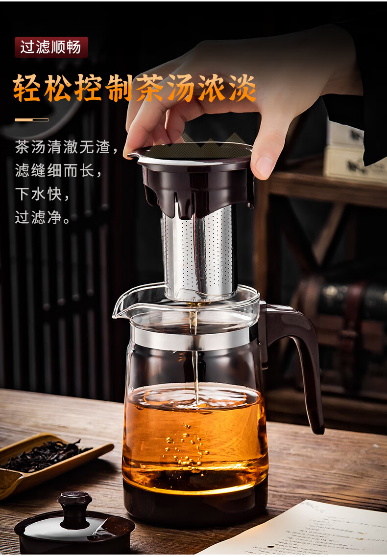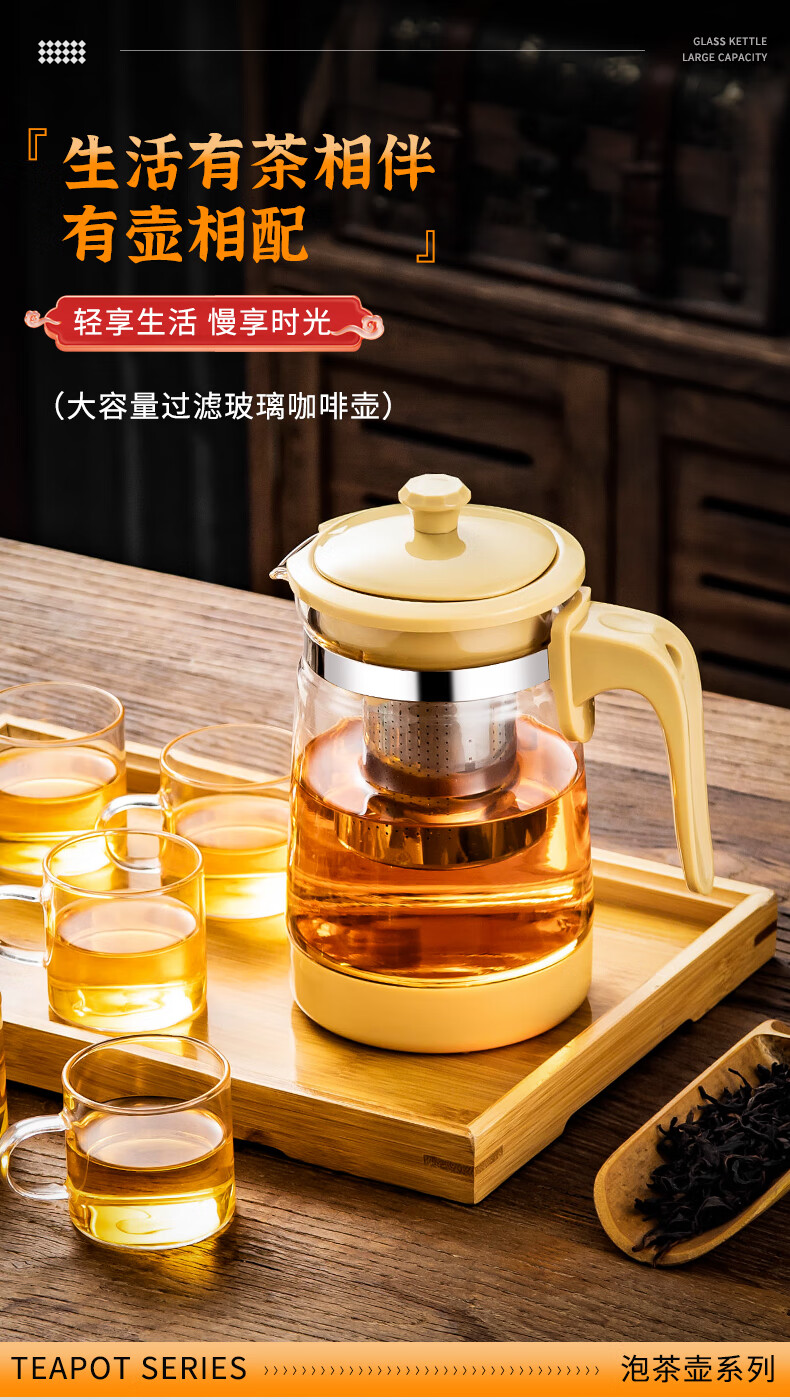 Heat-resistant glass teapot flower teapot coffee pot teapot color kettle lazy coffee appliance household tea maker 900ml teapot dark brown