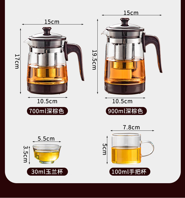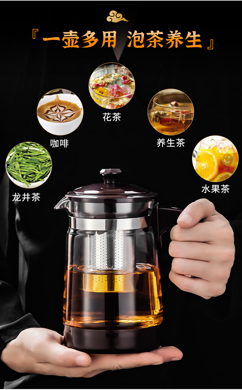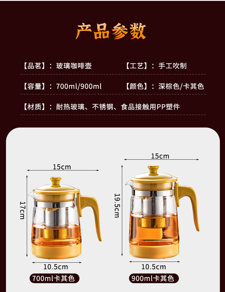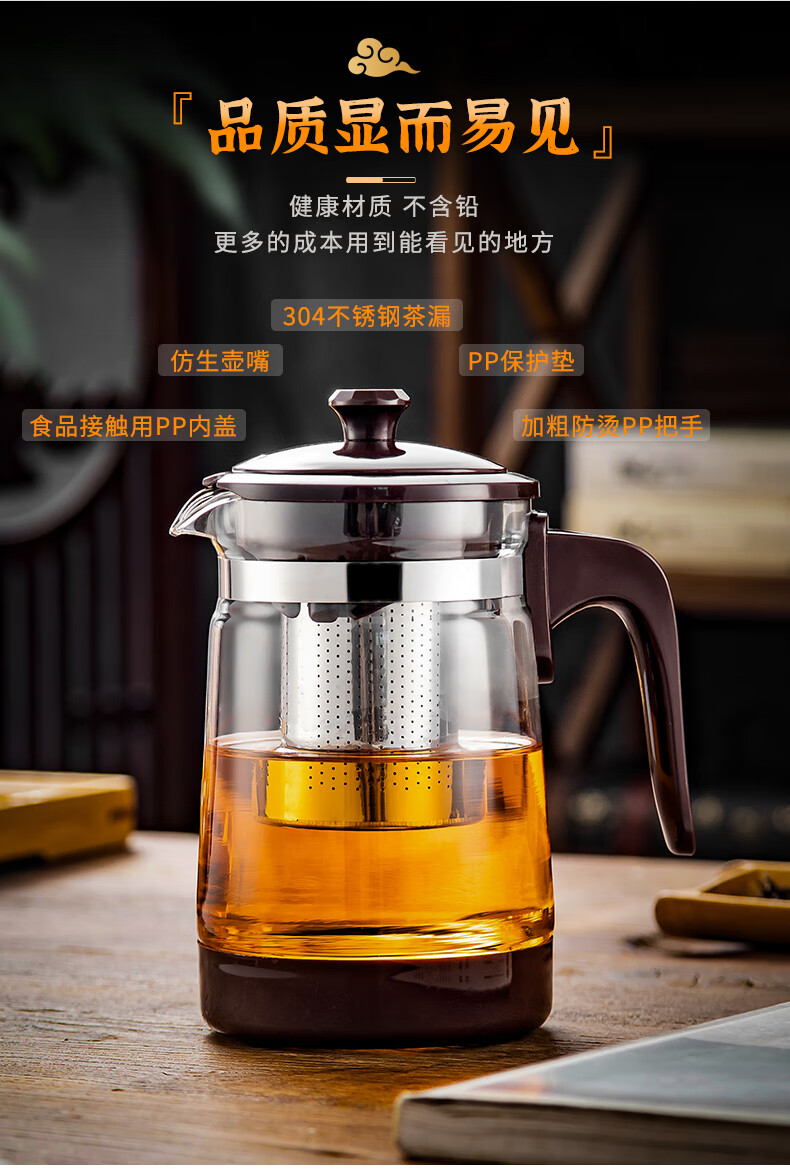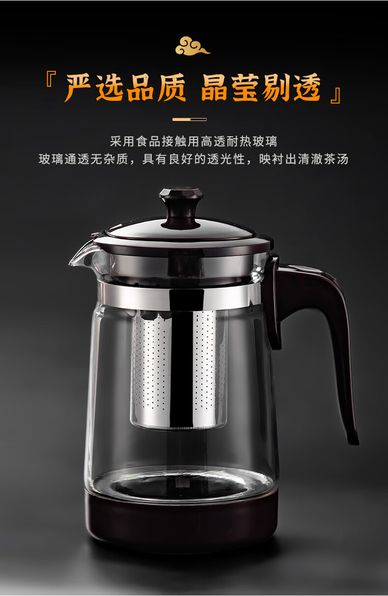 Heat-resistant glass teapot flower teapot coffee pot teapot color kettle lazy coffee appliance household tea maker 900ml teapot dark brown