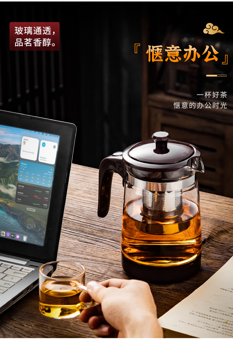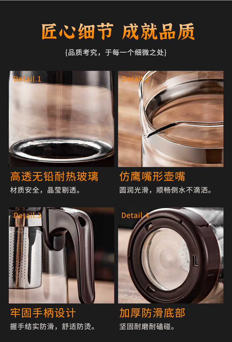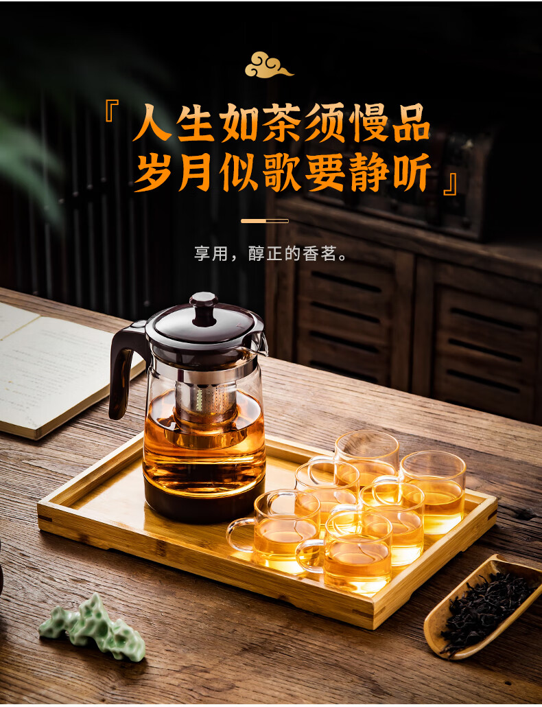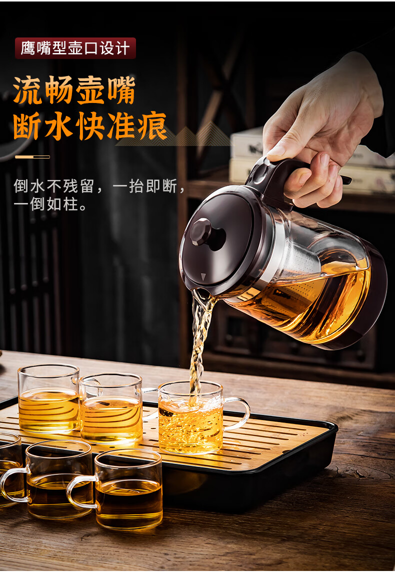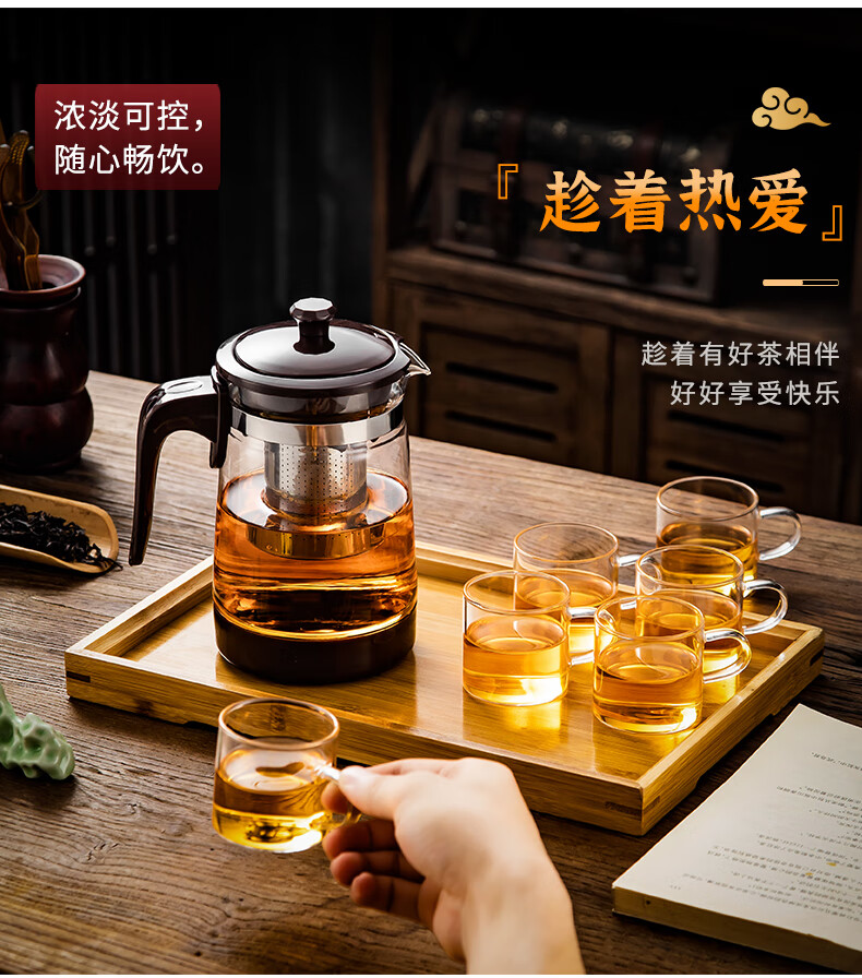 Heat-resistant glass teapot flower teapot coffee pot teapot color kettle lazy coffee appliance household tea maker 900ml teapot dark brown