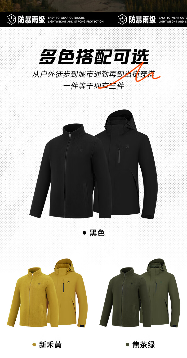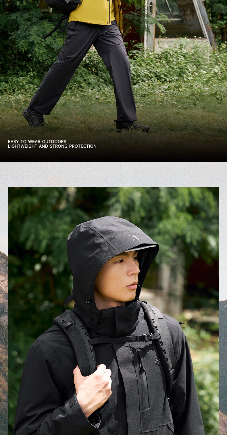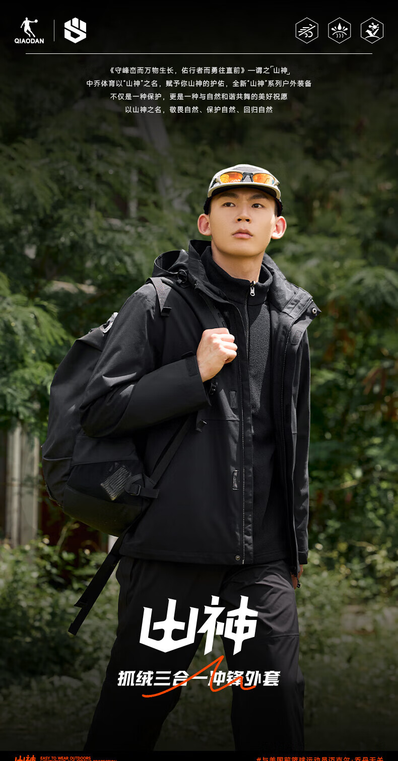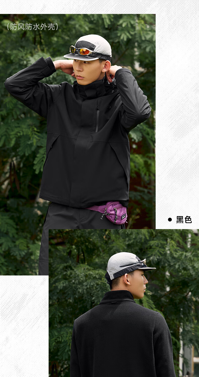 Jordan 3-in-1 Mountain God Jacket Men's Windbreaker Outdoor Mountaineering Windproof and Water-Repellent Hooded Jacket Black L