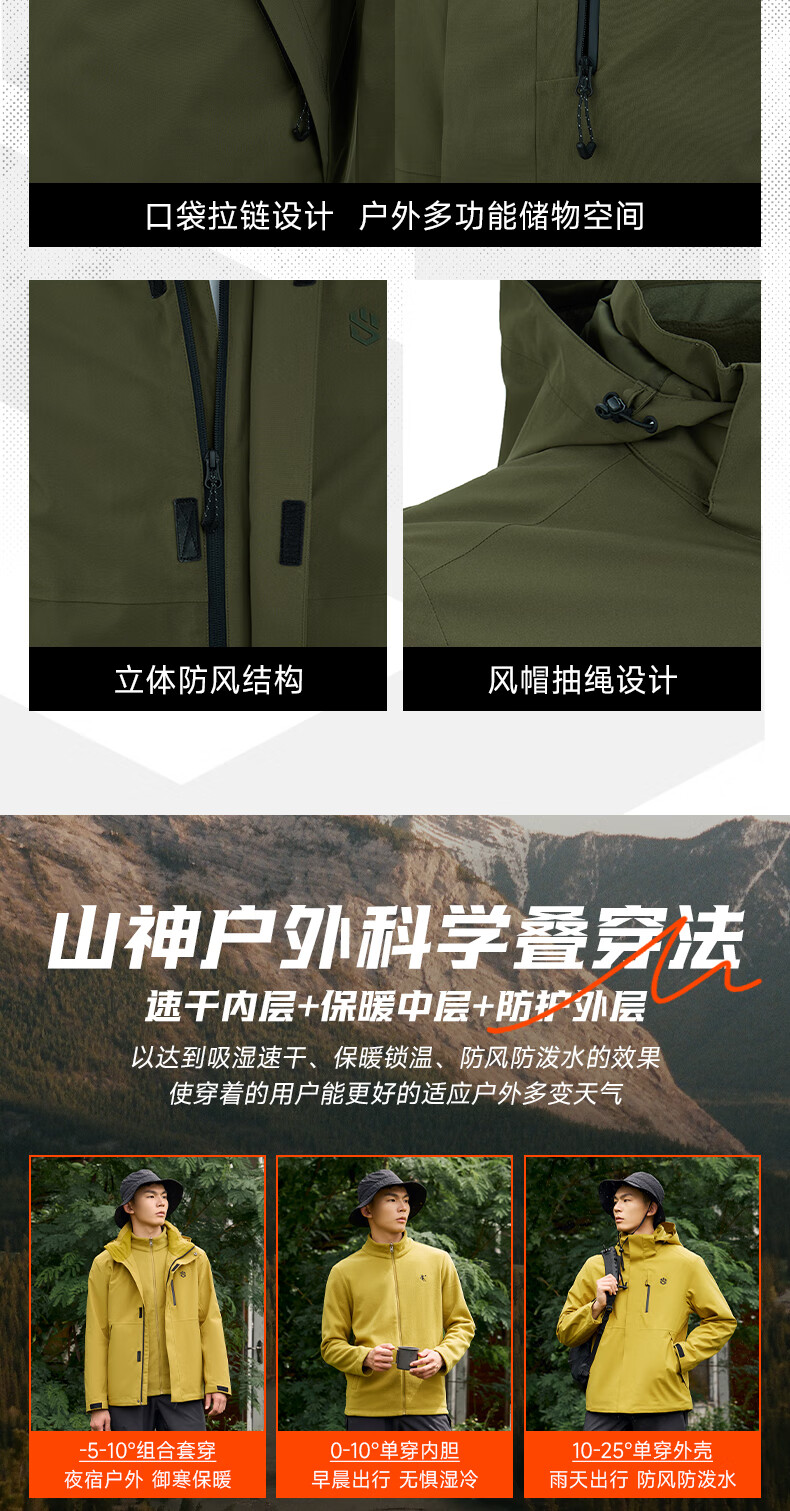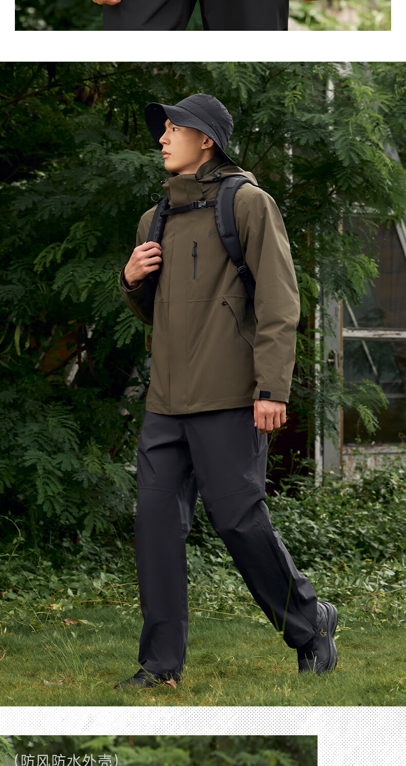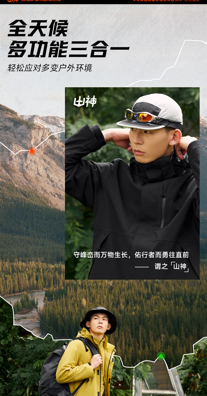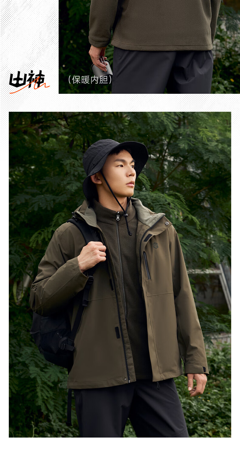 Jordan 3-in-1 Mountain God Jacket Men's Windbreaker Outdoor Mountaineering Windproof and Water-Repellent Hooded Jacket Black L