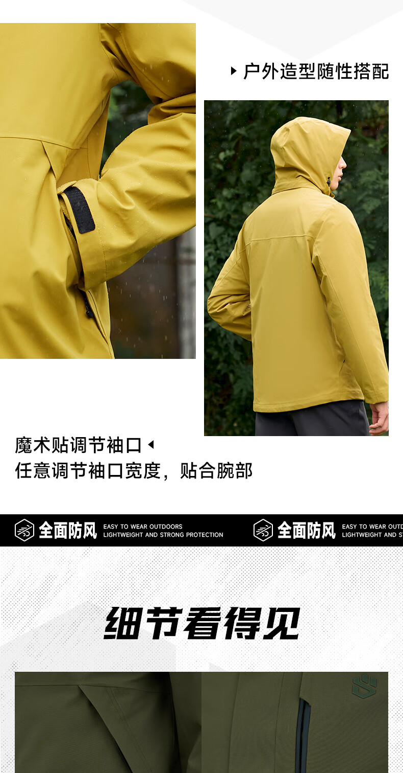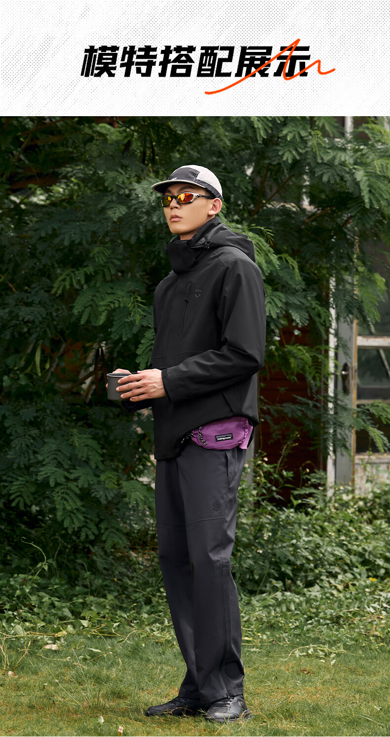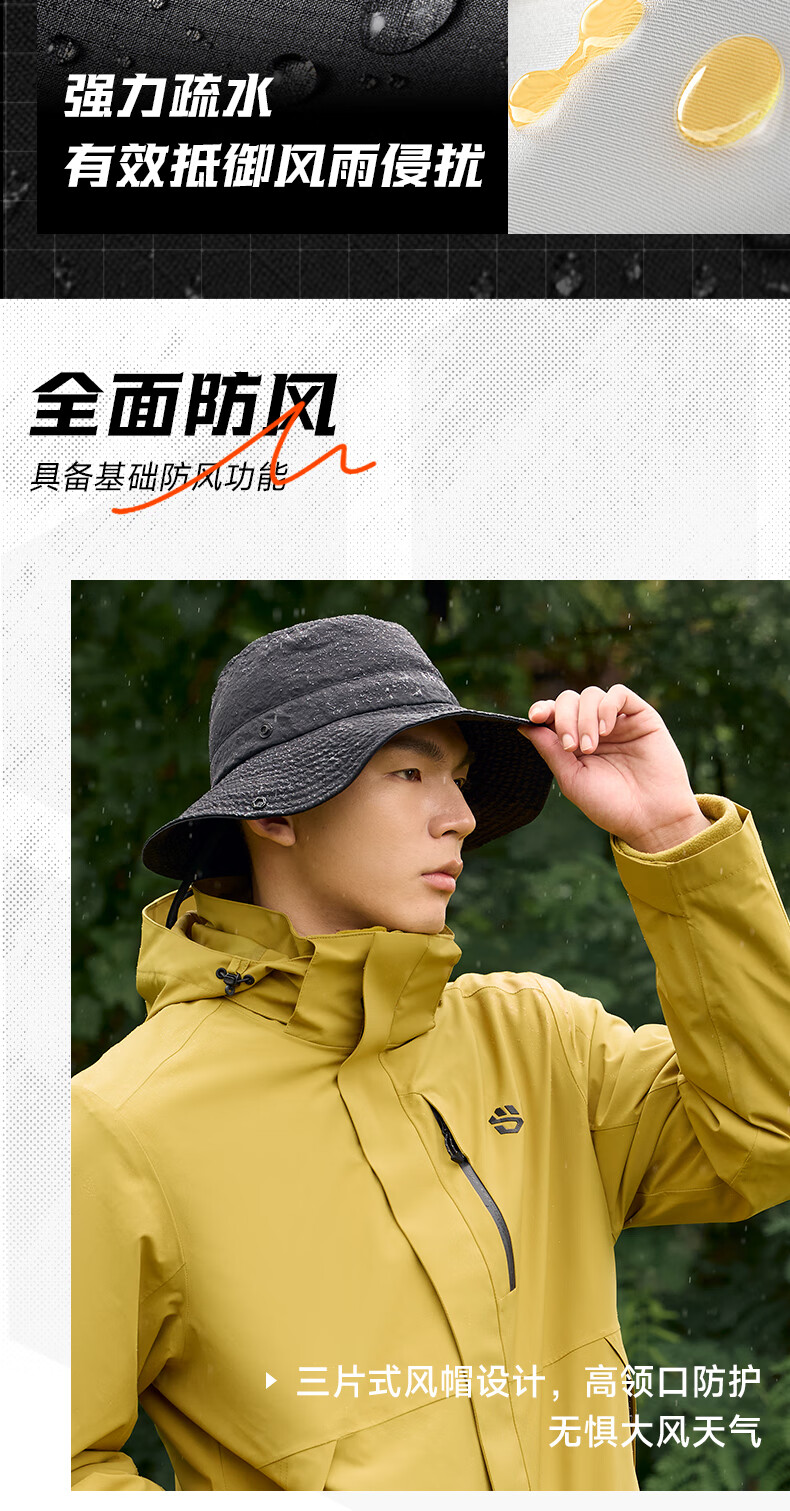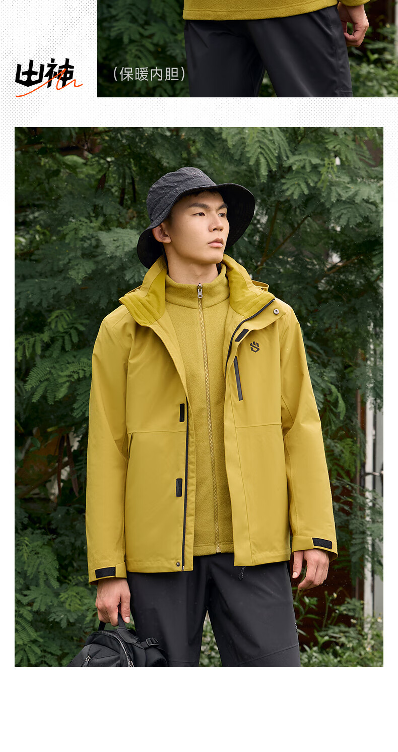 Jordan 3-in-1 Mountain God Jacket Men's Windbreaker Outdoor Mountaineering Windproof and Water-Repellent Hooded Jacket Black L