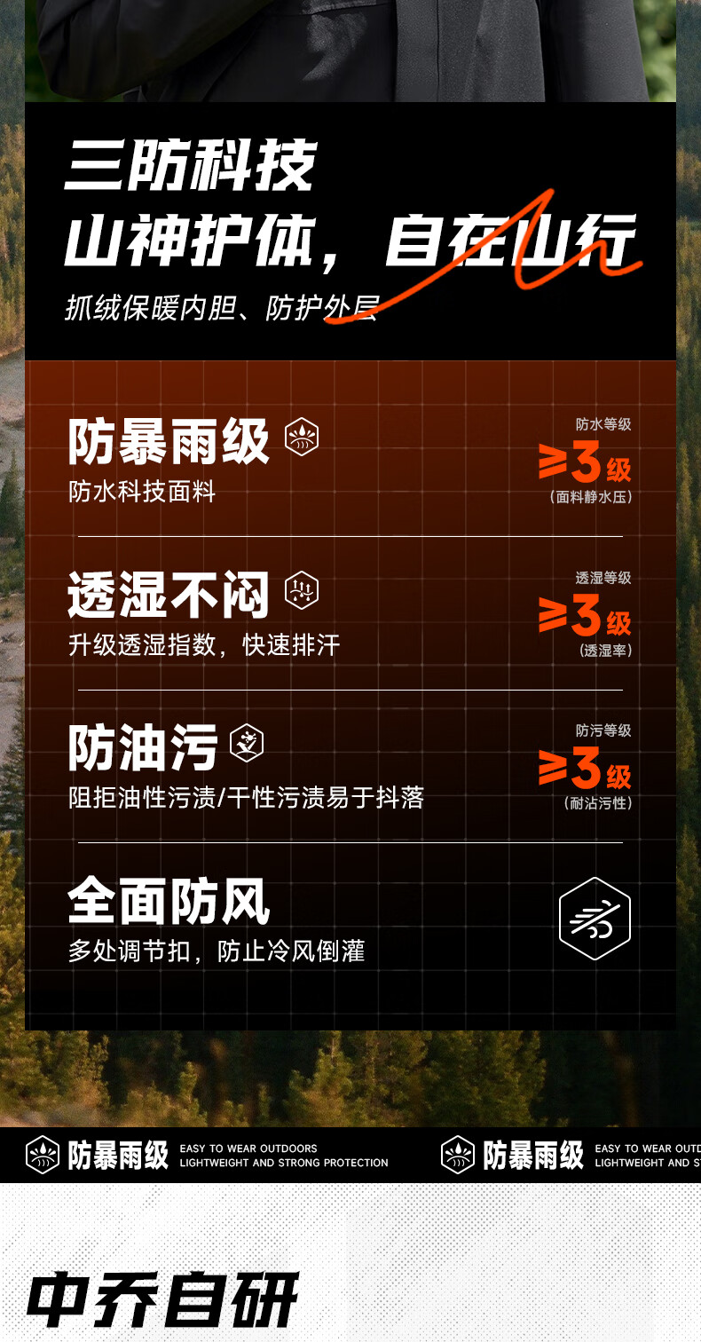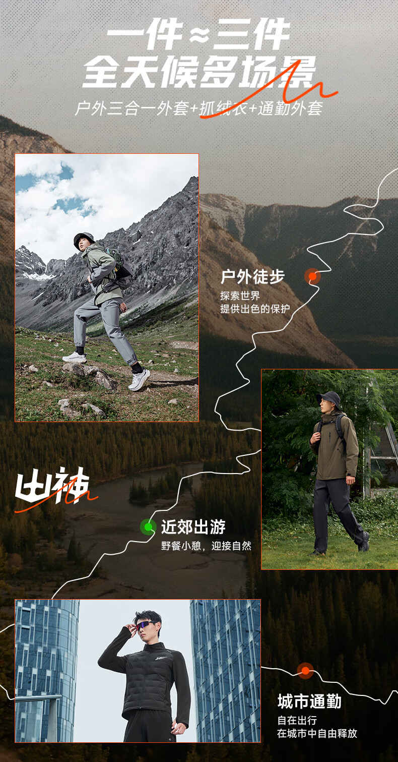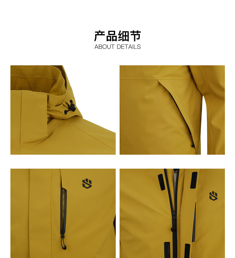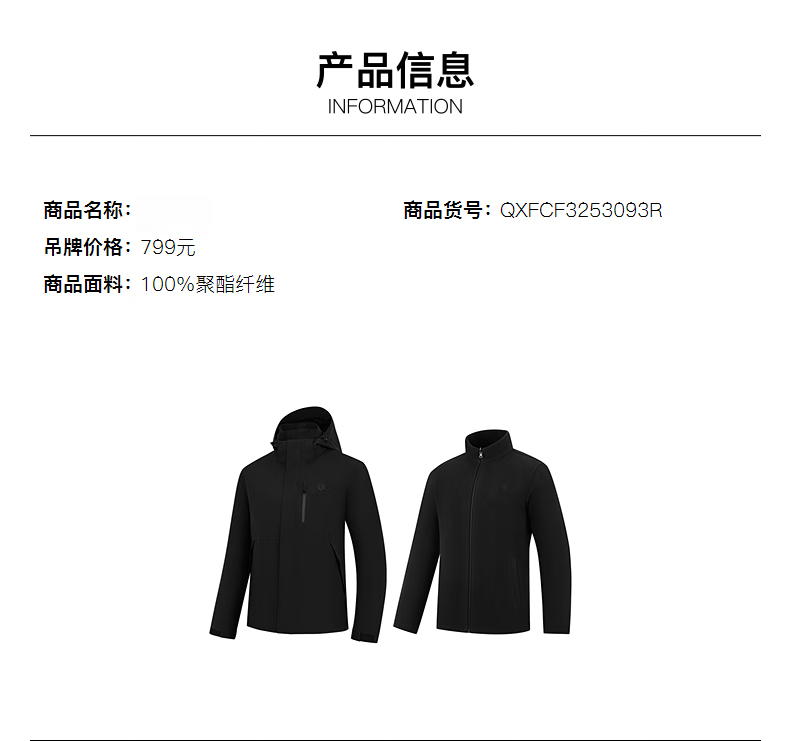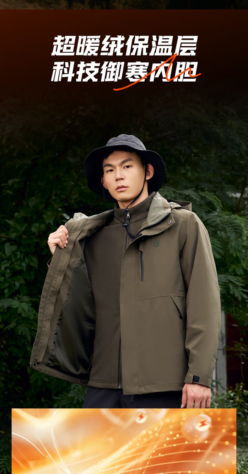 Jordan 3-in-1 Mountain God Jacket Men's Windbreaker Outdoor Mountaineering Windproof and Water-Repellent Hooded Jacket Black L