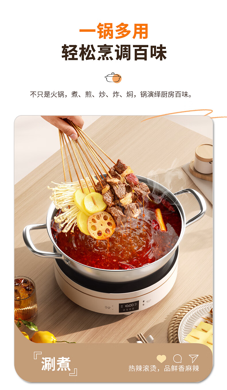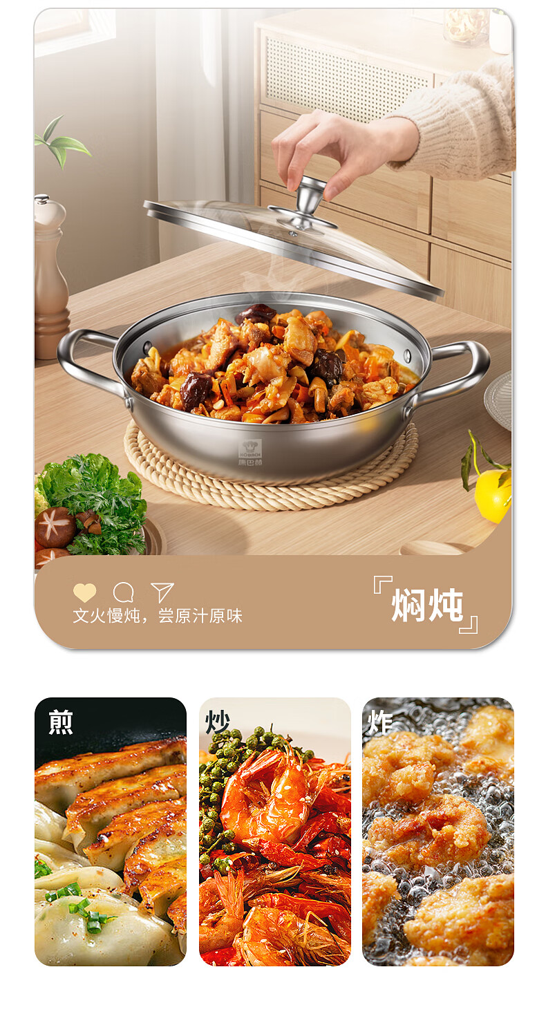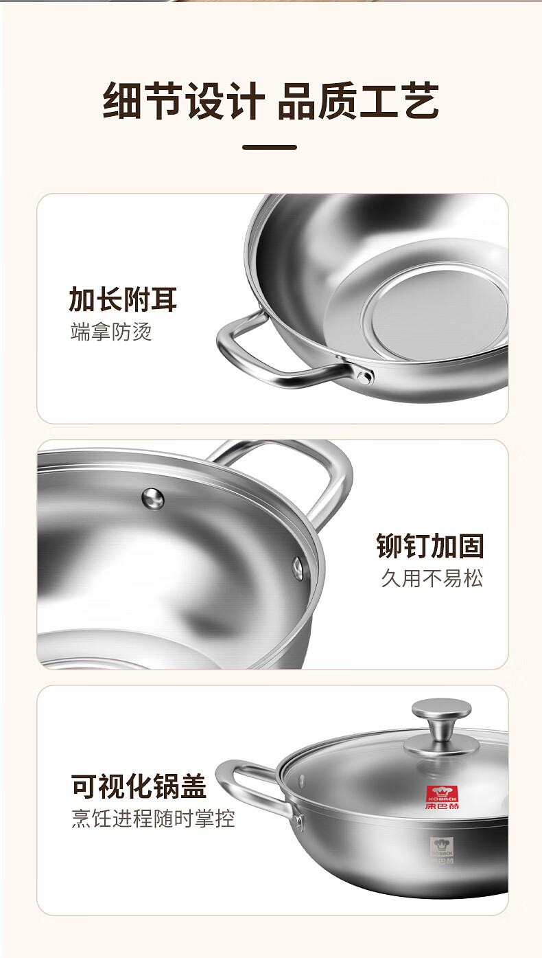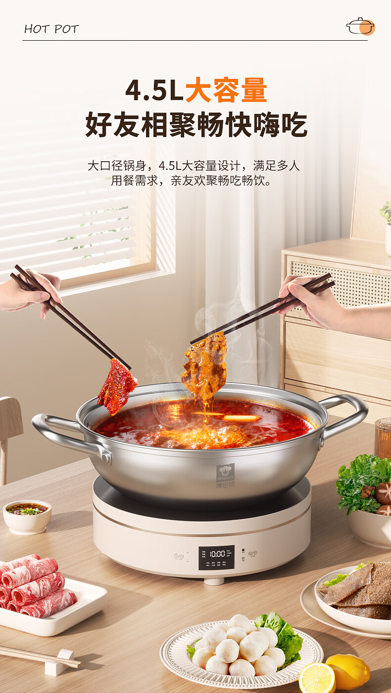 Kangbach hot pot 304 stainless steel uncoated thickened soup pot household hot pot pot for mutton shabu-shabu open flame induction cooker universal free soup spoon colander suitable for 2-3 people 28cm