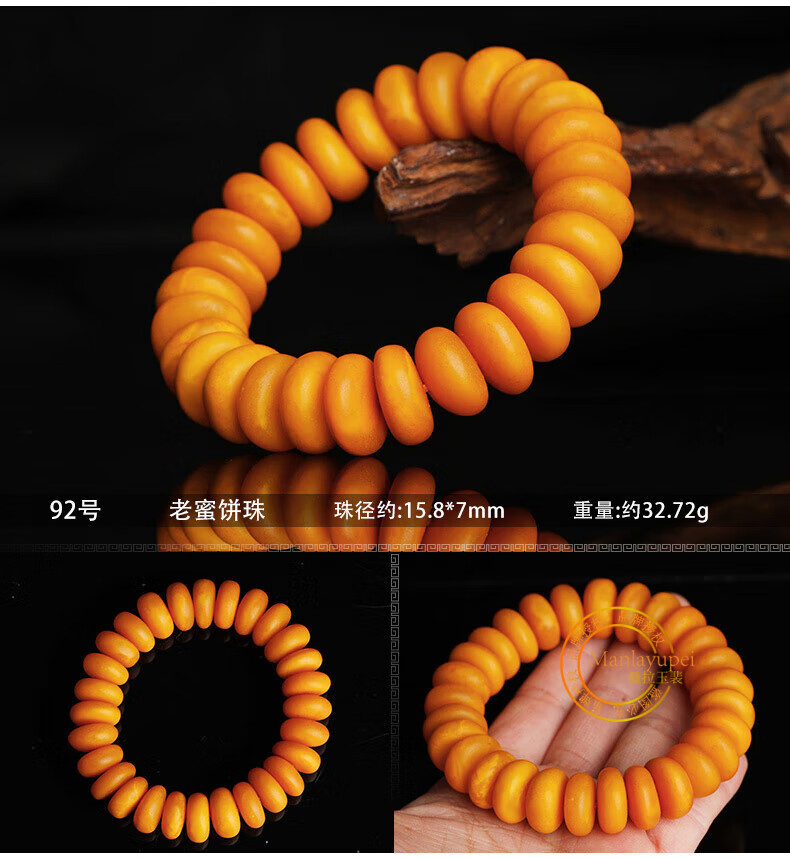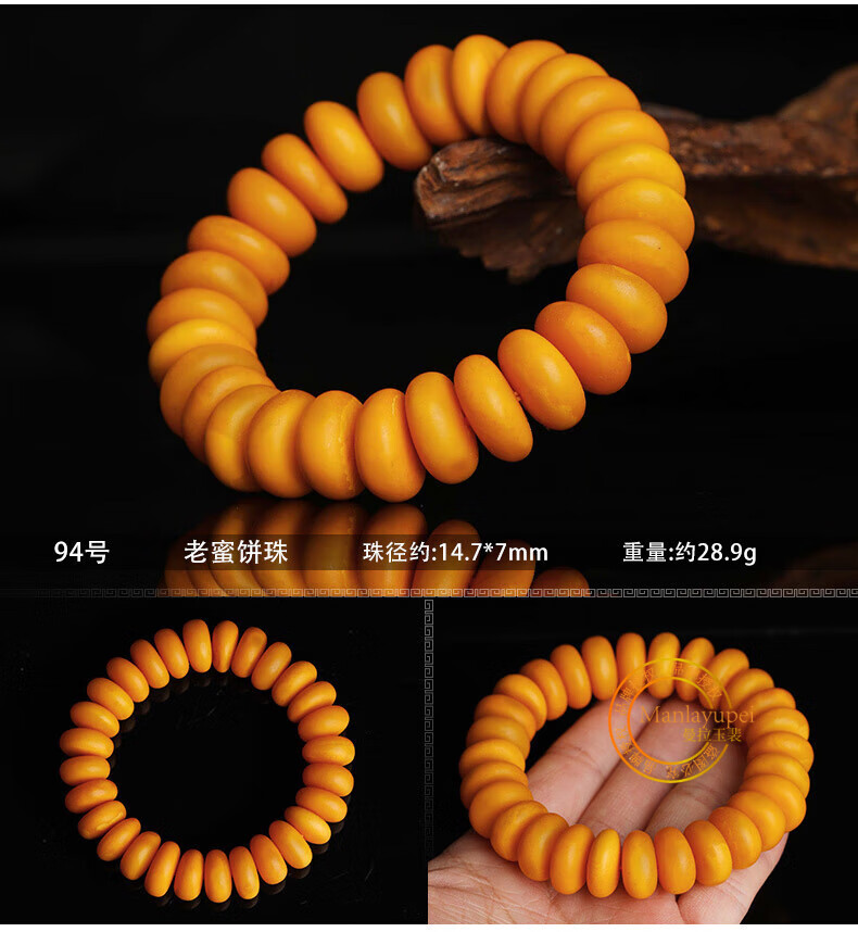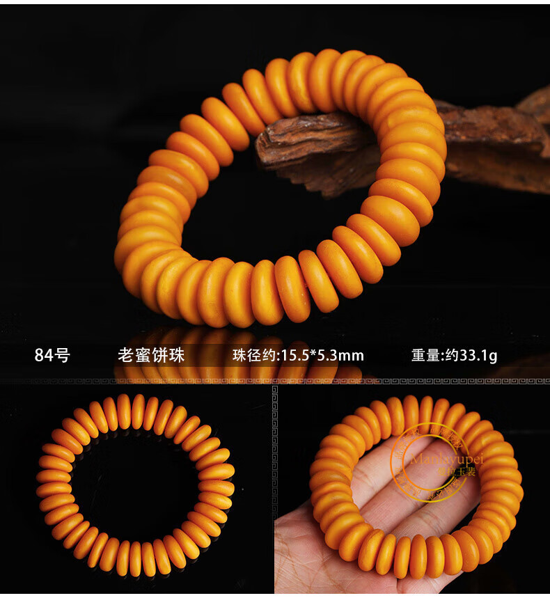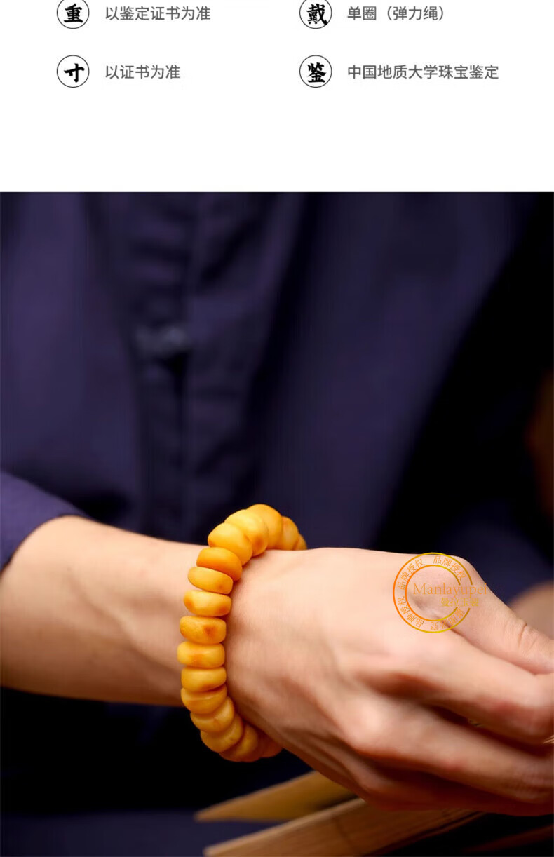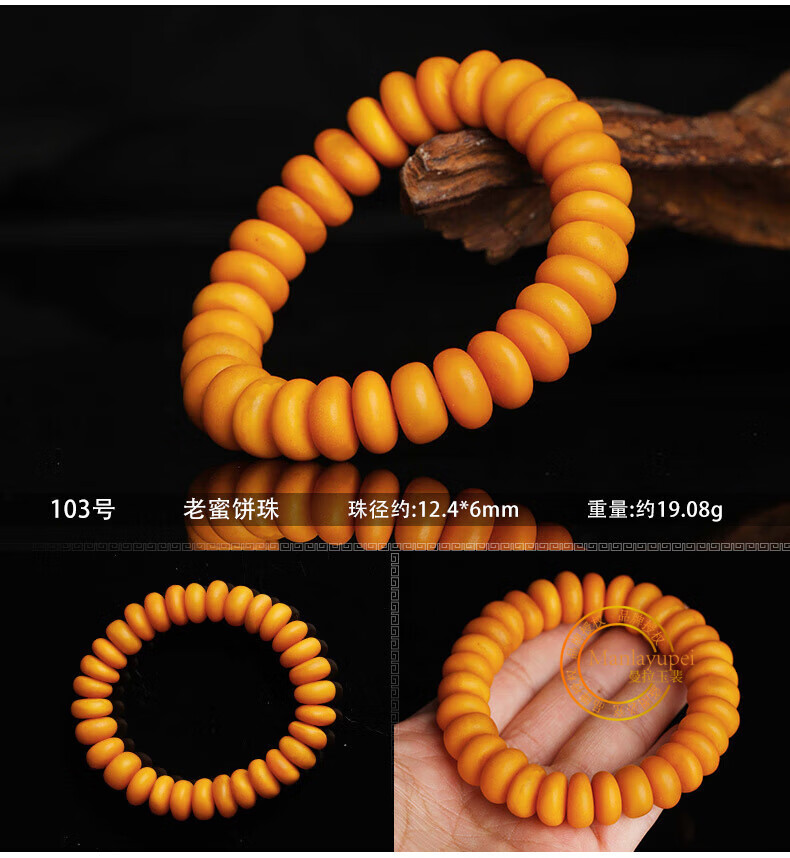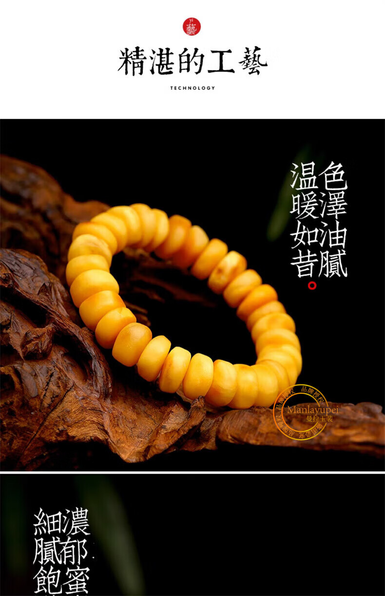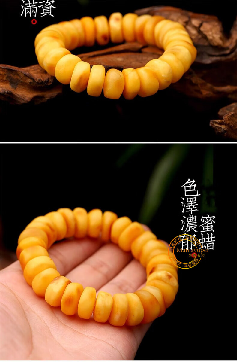 Manla Jade Baltic Sea Natural Beeswax Bracelet for Men and Women Old Honey Cake Beads Amber Chicken Oil Yellow Jade Beads Bracelet Authentic No. 103