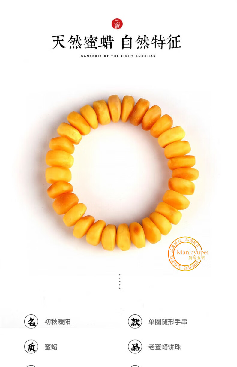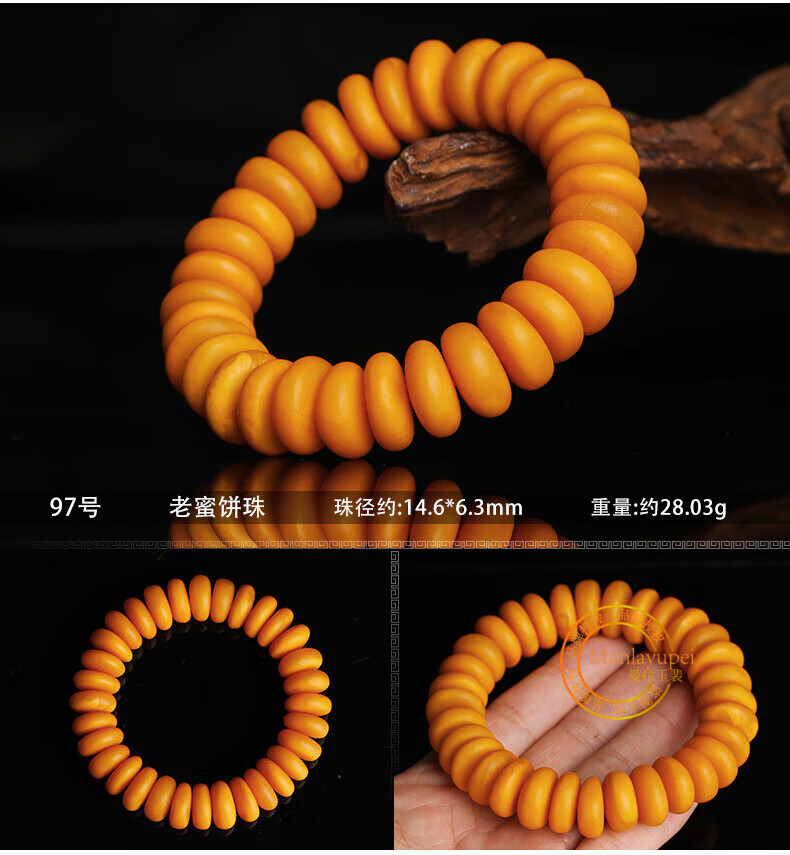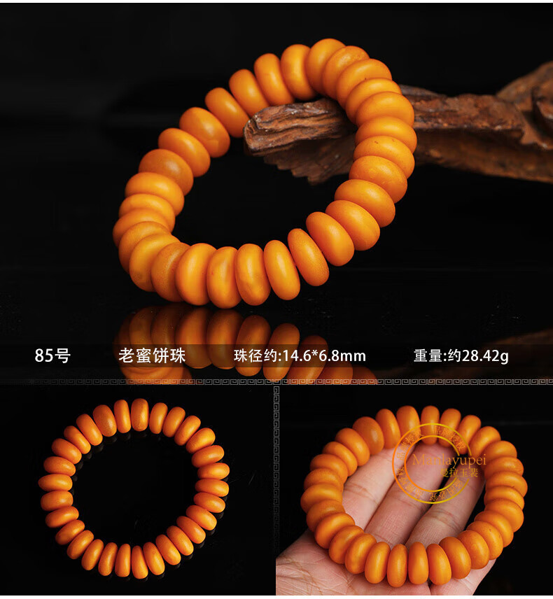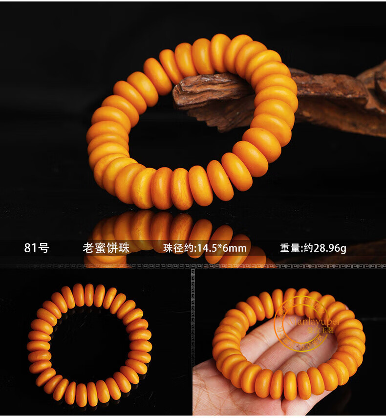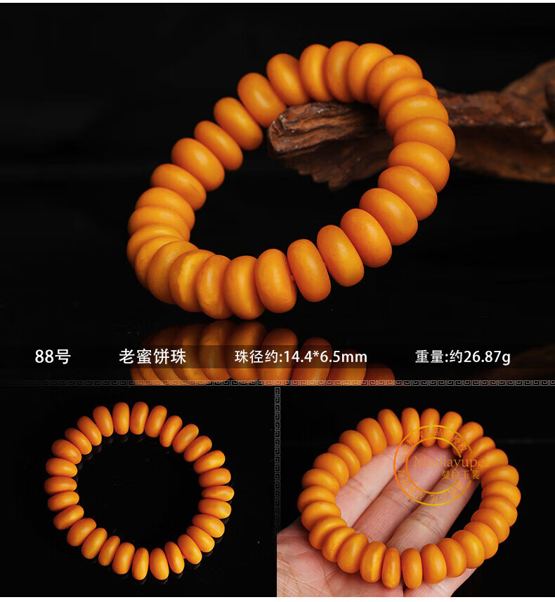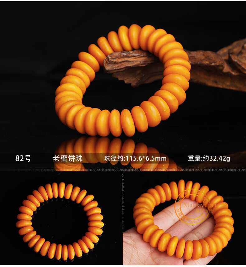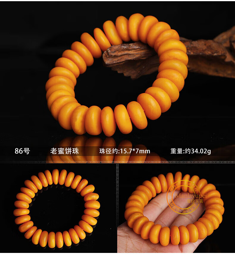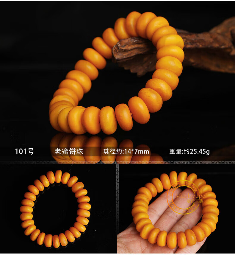 Manla Jade Baltic Sea Natural Beeswax Bracelet for Men and Women Old Honey Cake Beads Amber Chicken Oil Yellow Jade Beads Bracelet Authentic No. 103