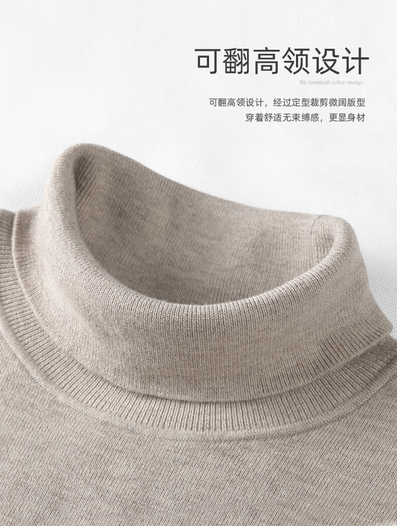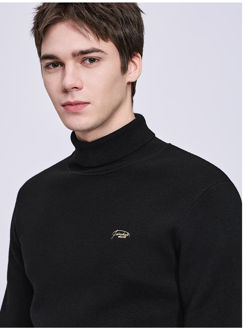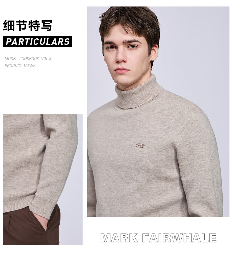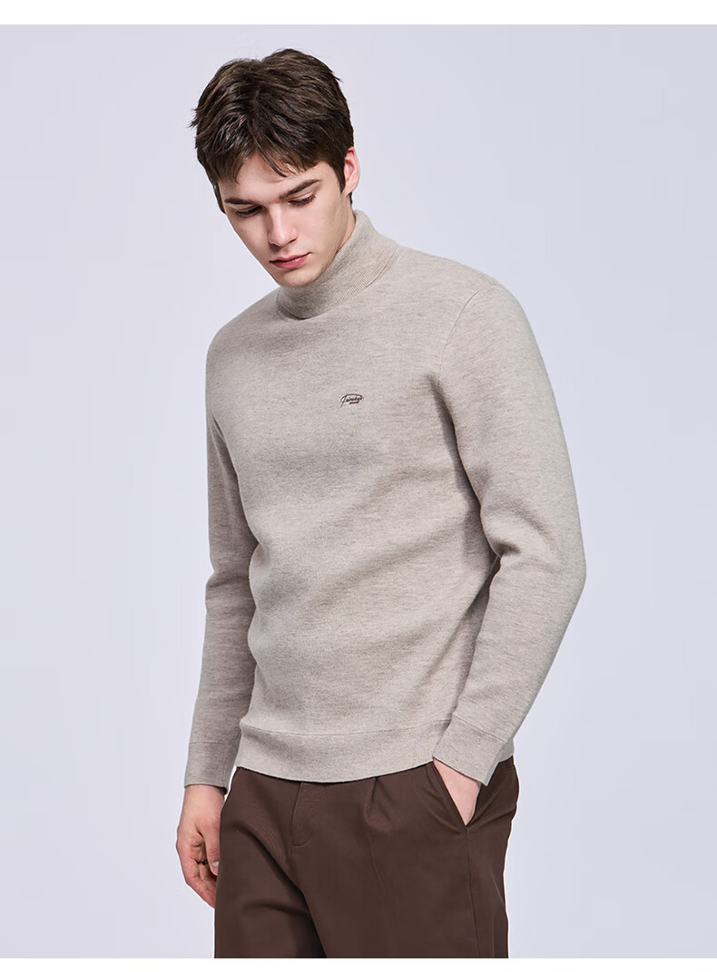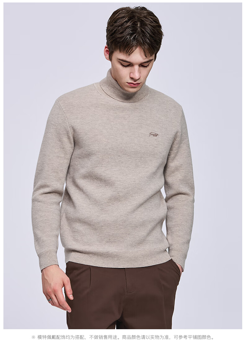 Mark Huafei fleece pure wool turtleneck sweater for men 2025 autumn and winter new casual warm sweater 2008 apricot 705 M 170