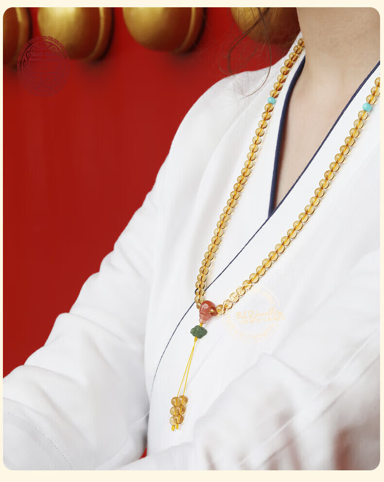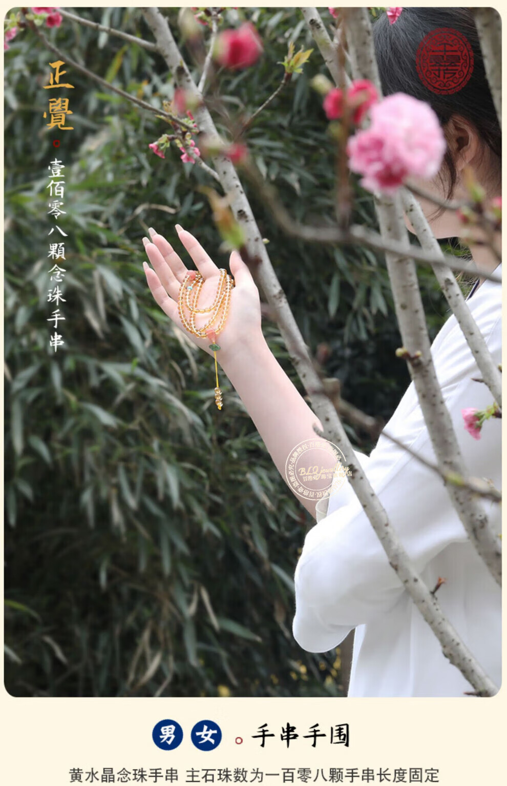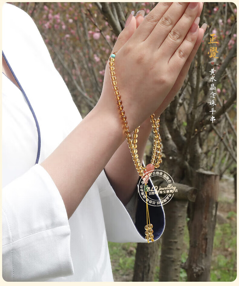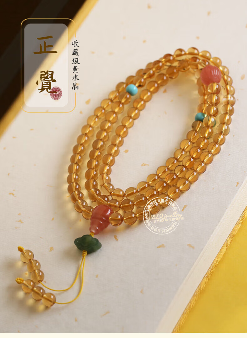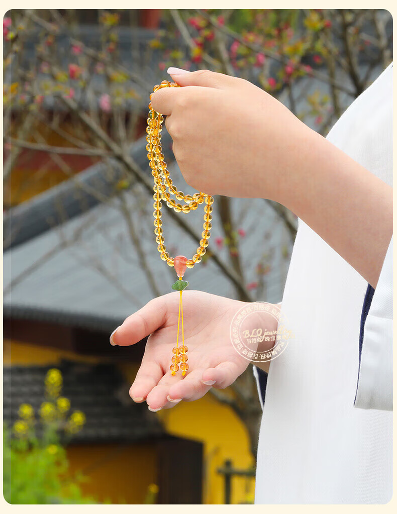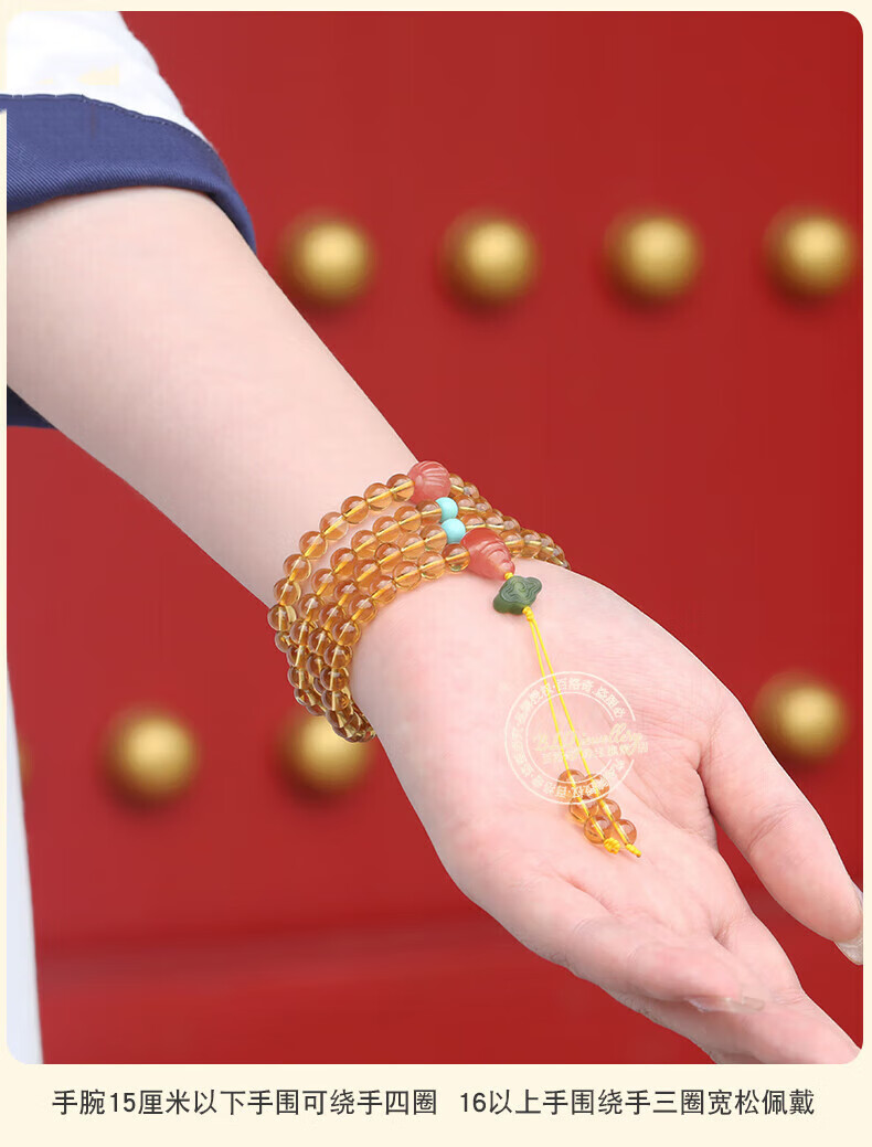Lihu Natural Collection Grade Citrine Bracelet for Men and Women Zhengjue 108 Rosary Beads Bracelet Necklace Dual-Purpose Citrine
