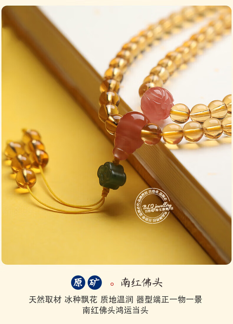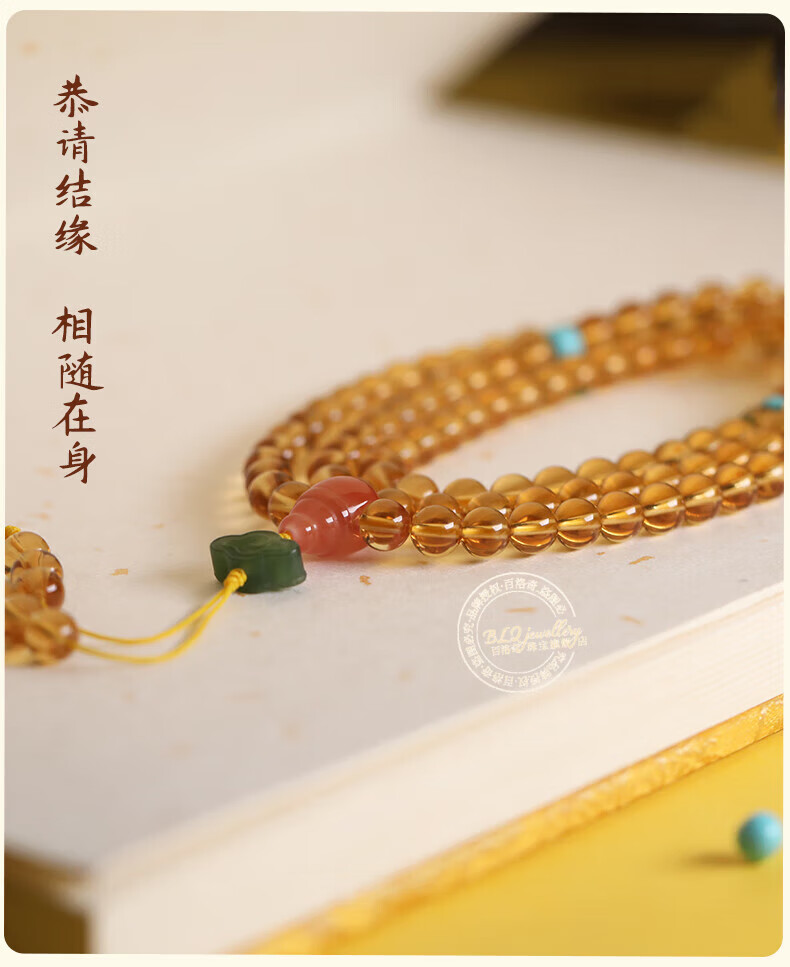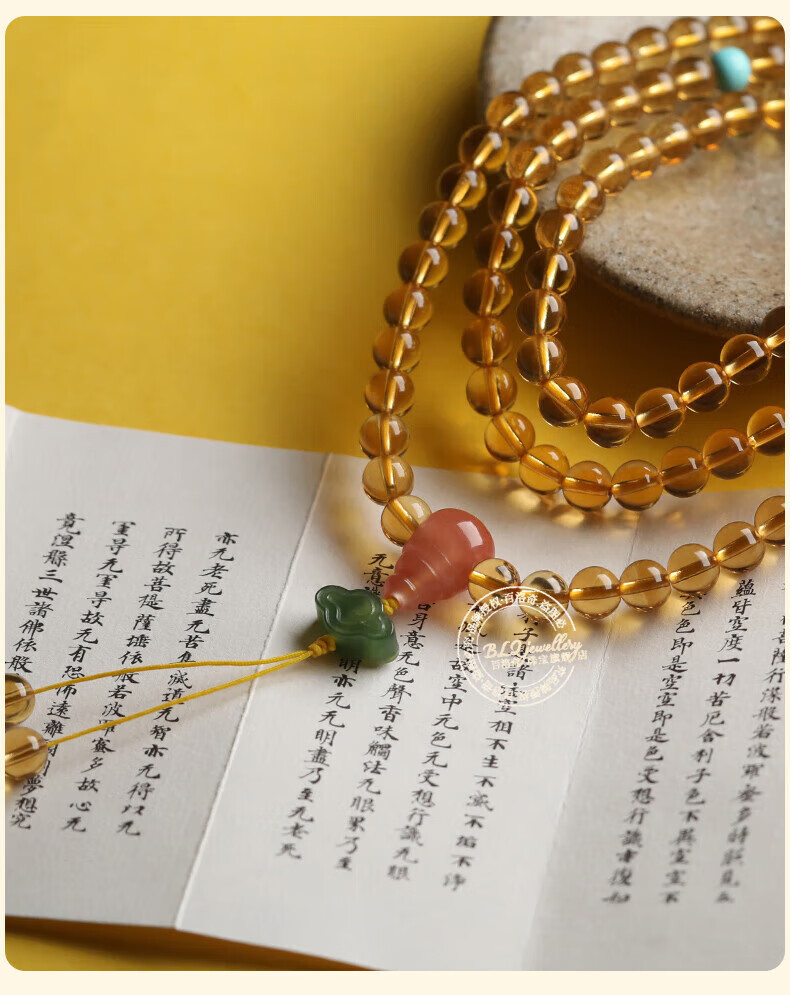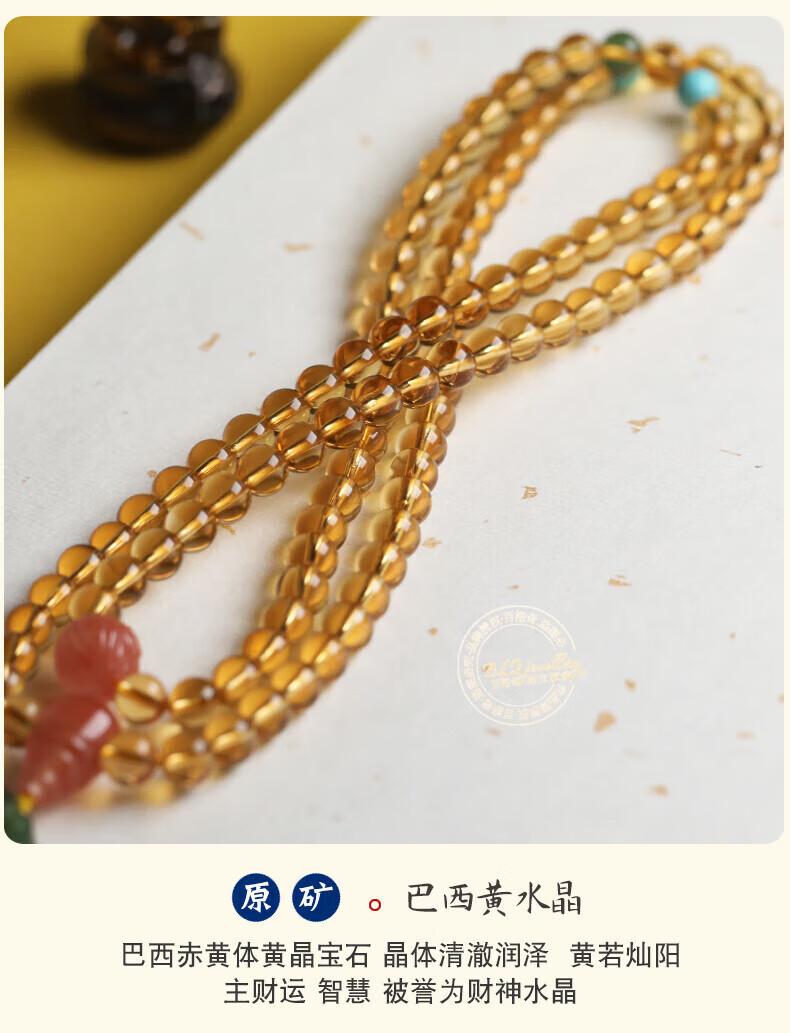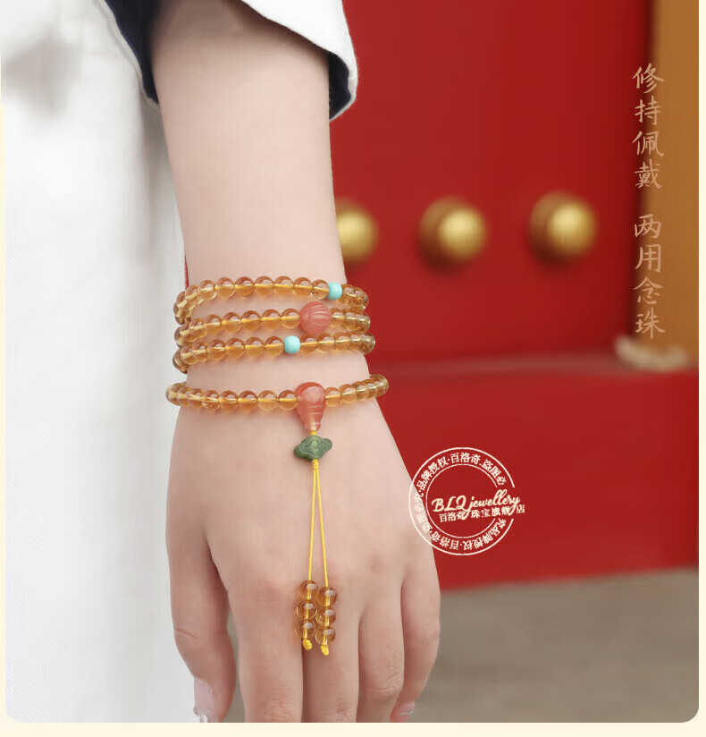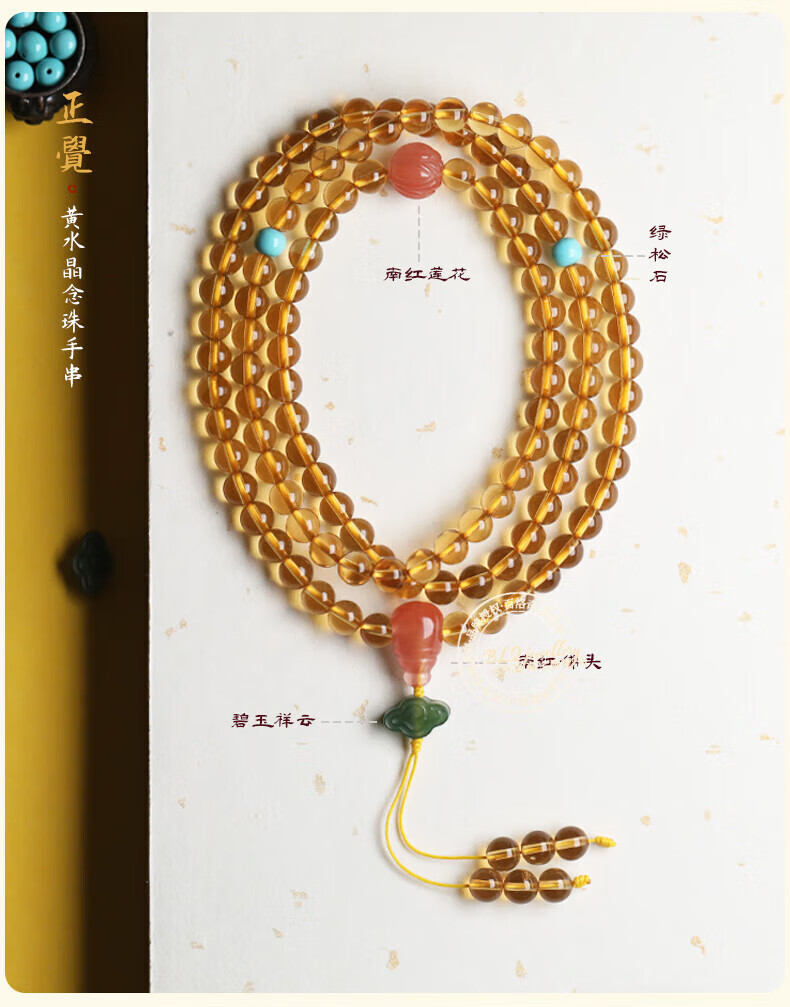 Lihu Natural Collection Grade Citrine Bracelet for Men and Women Zhengjue 108 Rosary Beads Bracelet Necklace Dual-Purpose Citrine