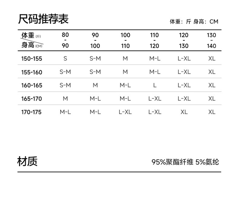 China (cm) 160-165/84-86 165-170 / 88-90 167-172 / 92-96 168-173 / 98-102 170-176 / 106-110