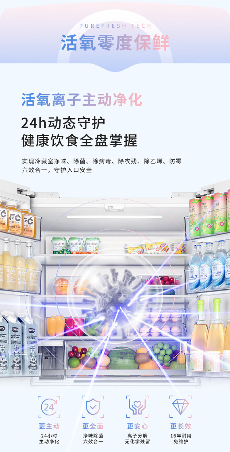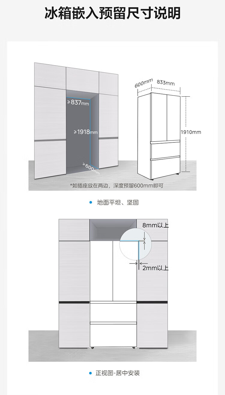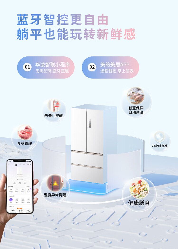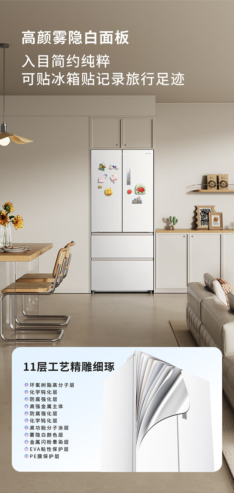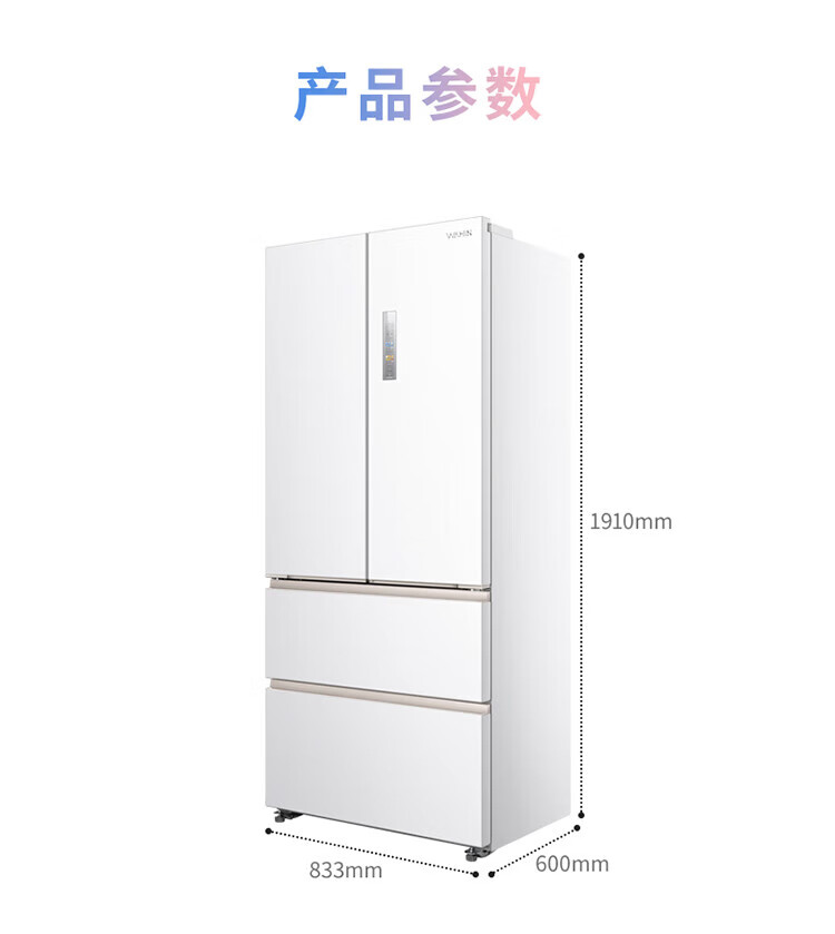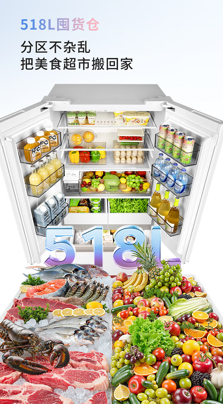 Midea Machine King 518 automatic ice making dual system 60cm ultra-thin zero-embedded French multi-door household refrigerator produced by Midea Hualing HR-518WUFIPZ