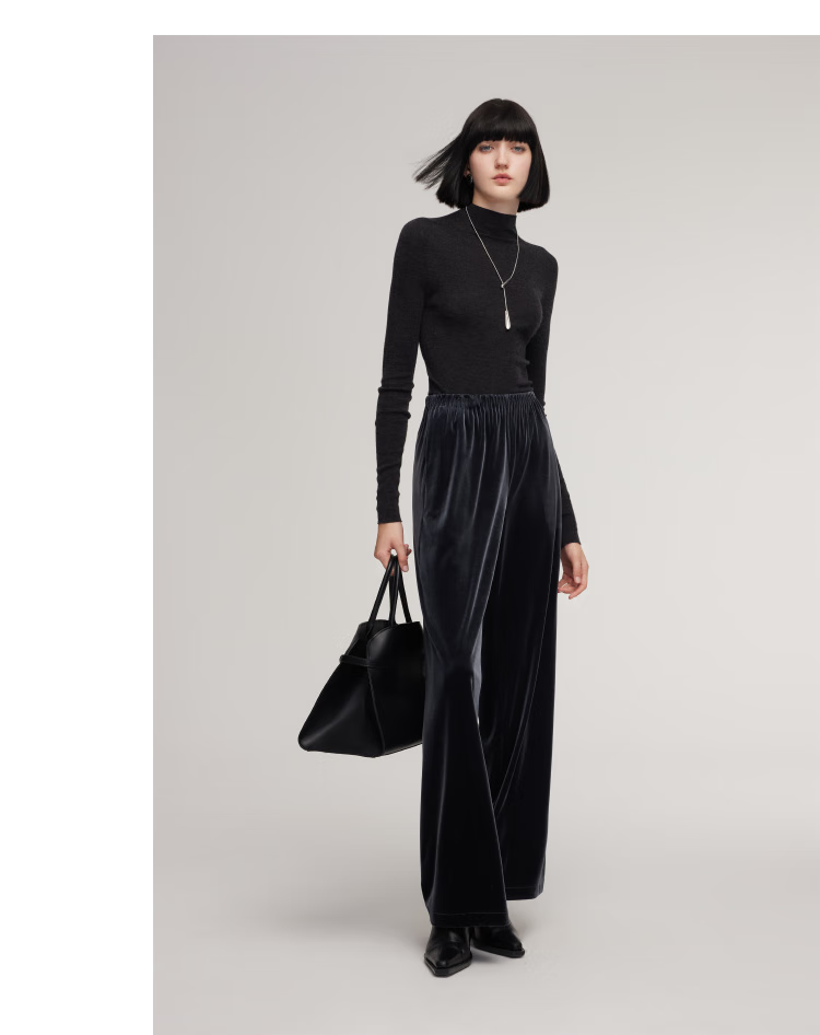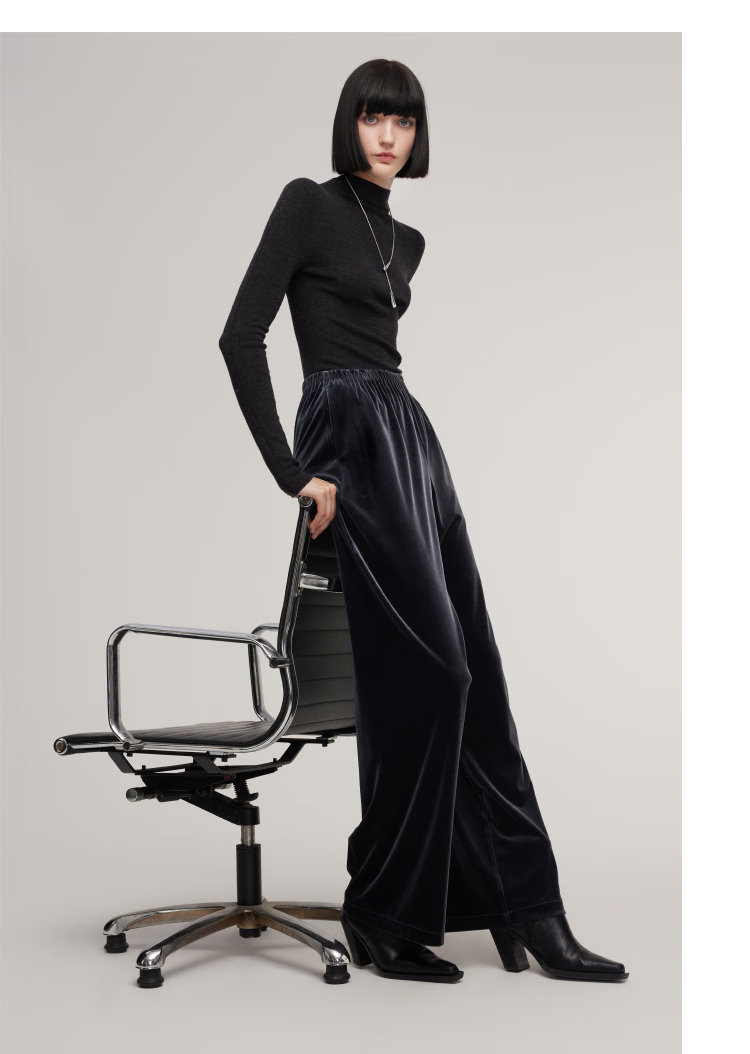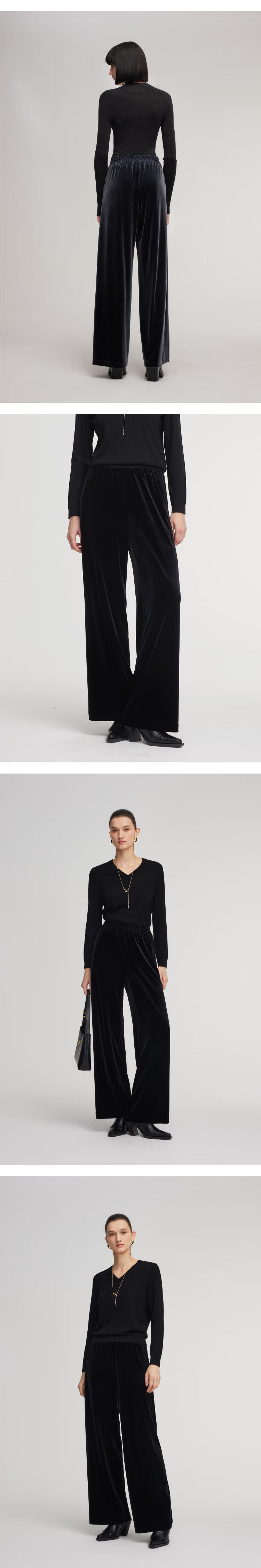 Gloria velvet wide-leg pants for women 2025 new winter wear knitted seamless high-waisted trousers 1EDL1I420 41B Gray S