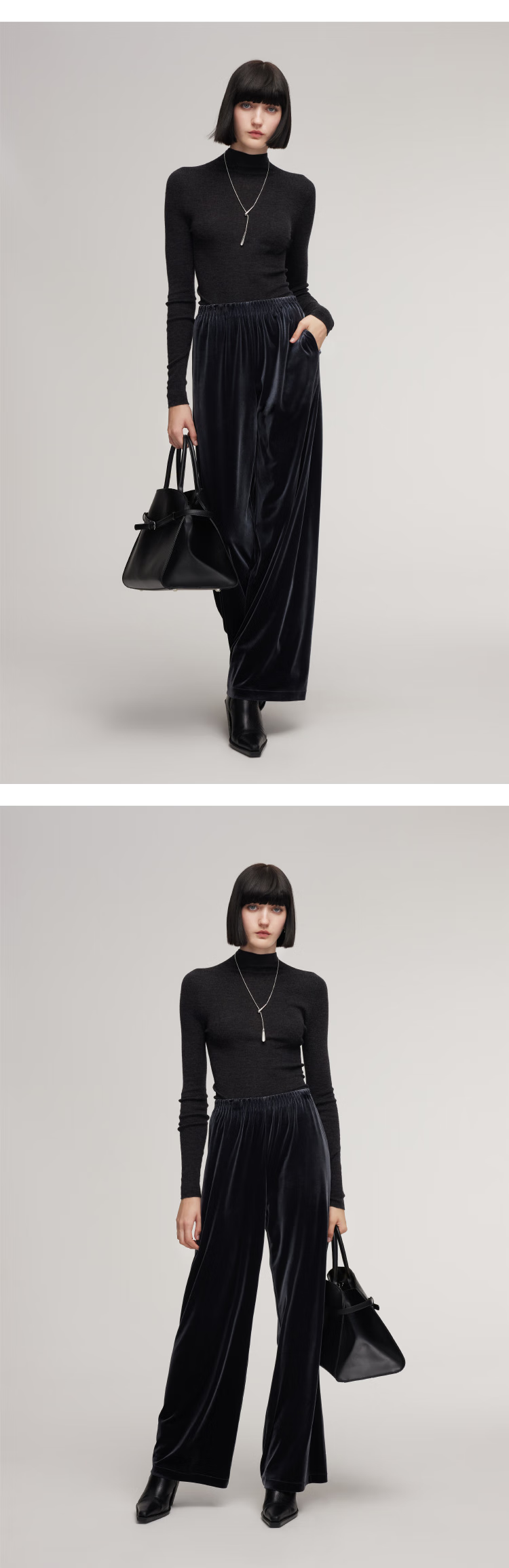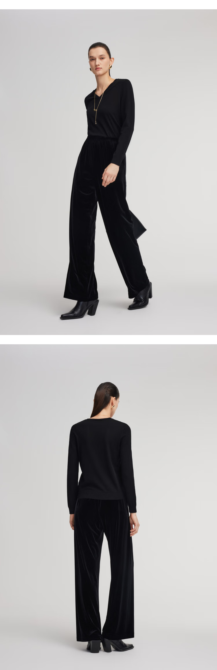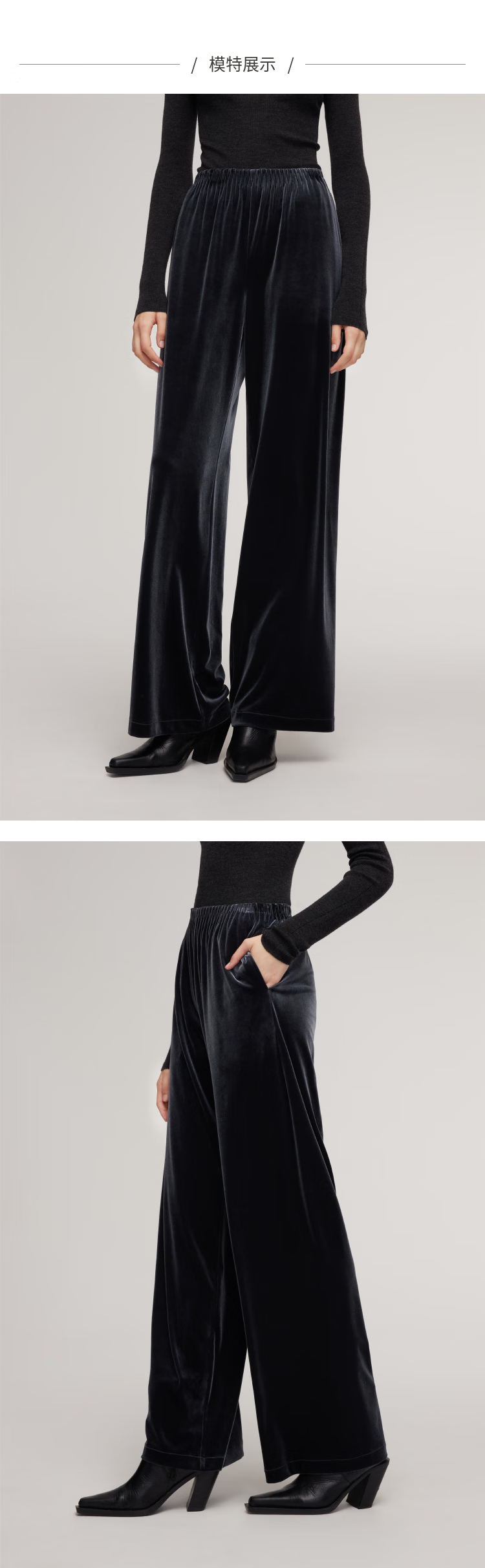 Gloria velvet wide-leg pants for women 2025 new winter wear knitted seamless high-waisted trousers 1EDL1I420 41B Gray S