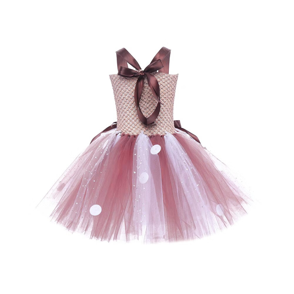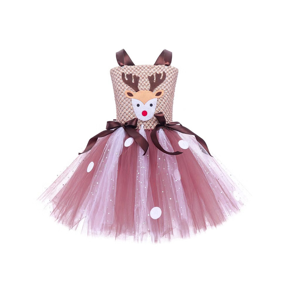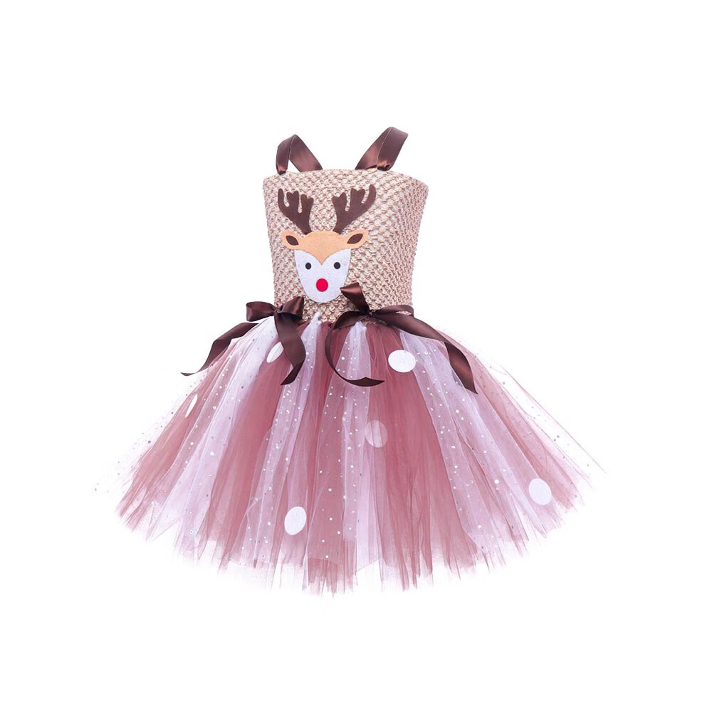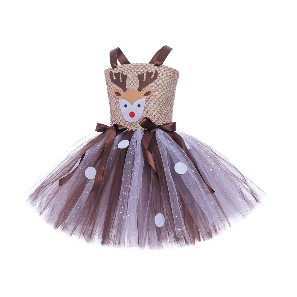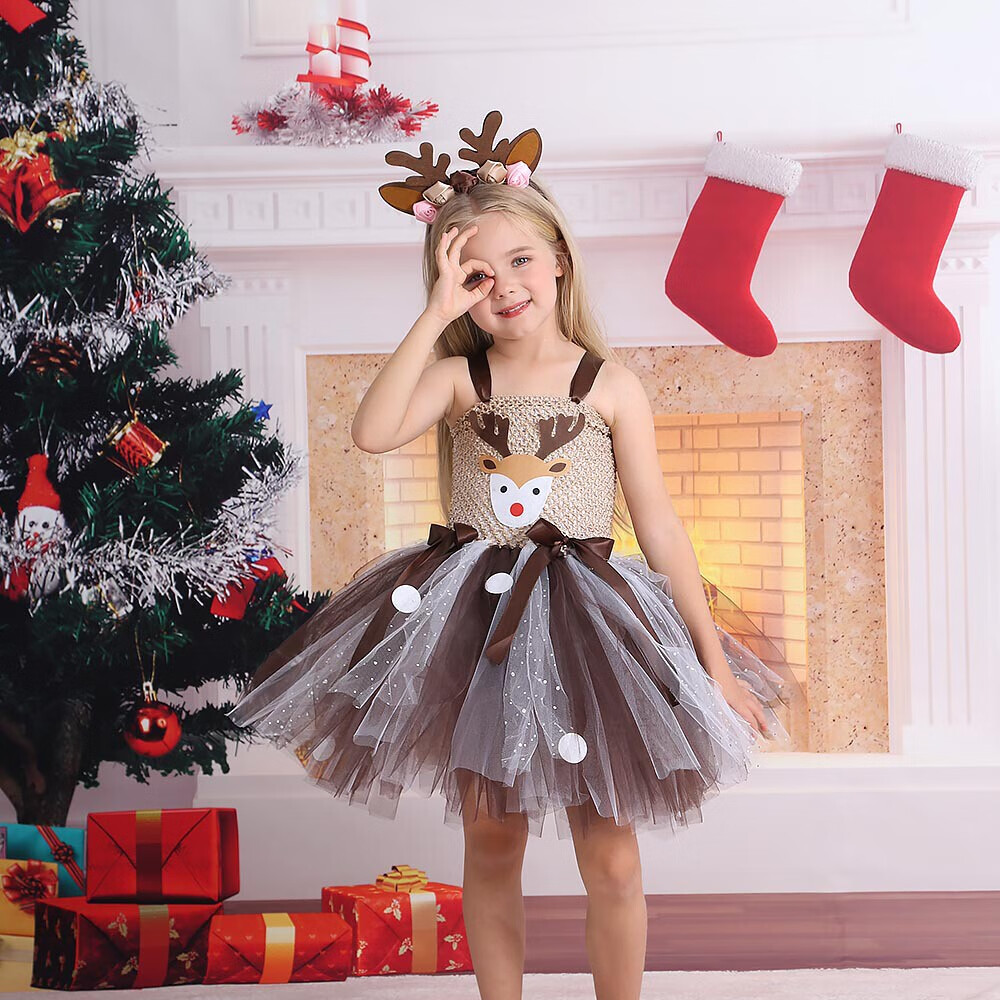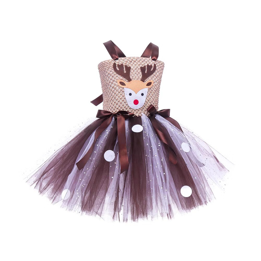 Christmas deer European and American children's elk performance princess skirt girls decoration holiday dress tutu skirt performance costume dark coffee dress 90 S (-105 cm)