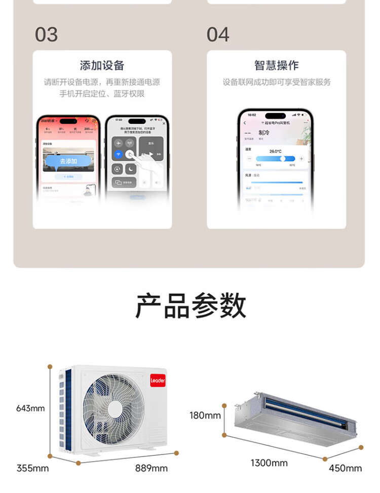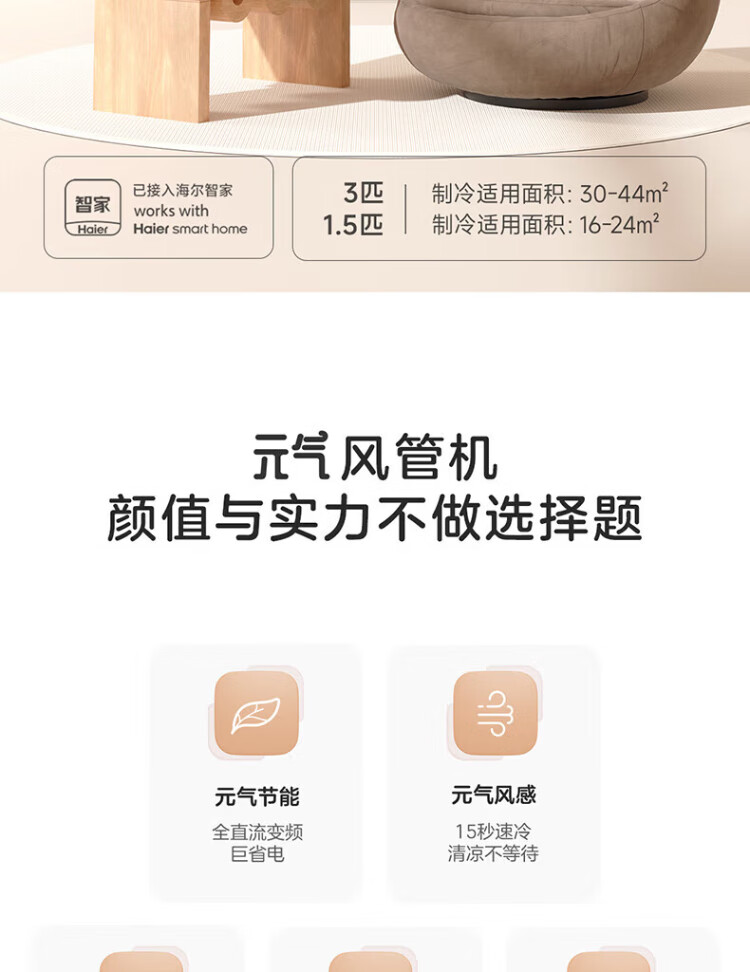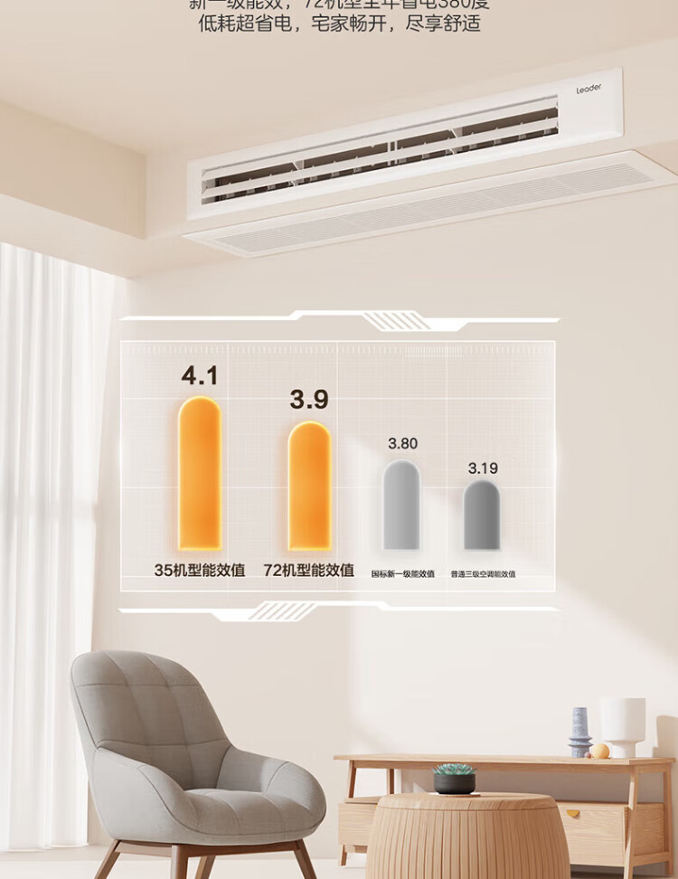 Haier produces Leader super energy-saving PULS Yuanqi 3 hp central air conditioner, one-to-one appliance, 4 hp home living room duct machine frequency conversion first-level energy efficiency package installation, small 4 hp, first-level energy efficiency, super power saving plus (preferred for large living rooms)