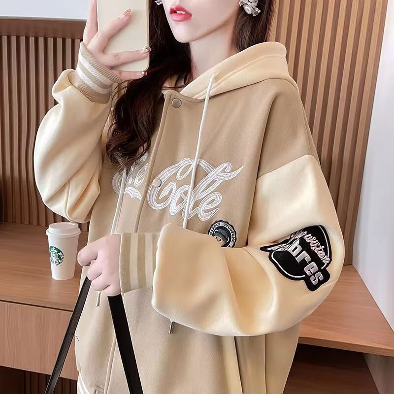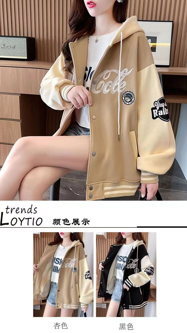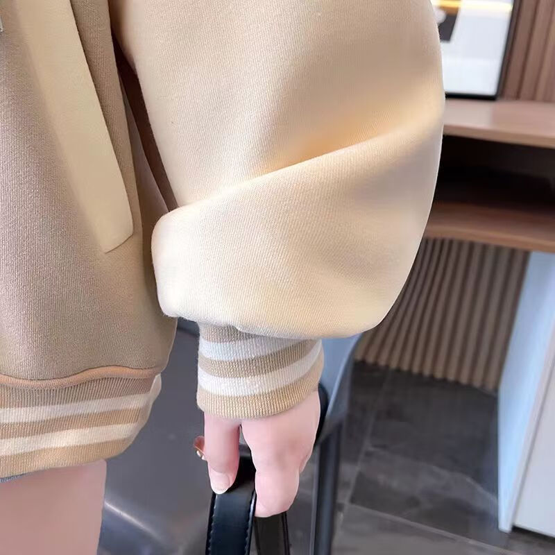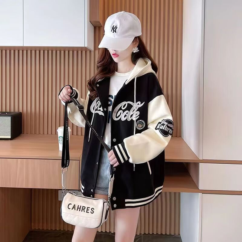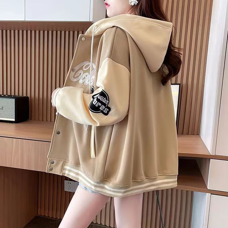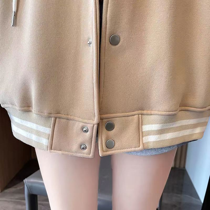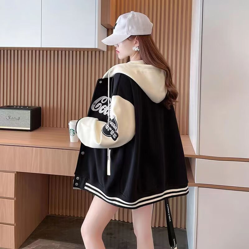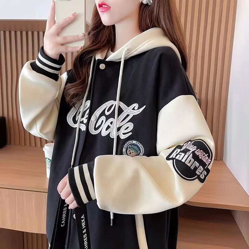 Girls' hooded jacket autumn and winter 2025 new children's fashionable medium and large children's fashionable baseball uniform sports autumn clothing plus velvet black thickened alpaca 170 (recommended height is about 160cm)