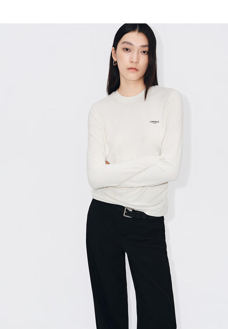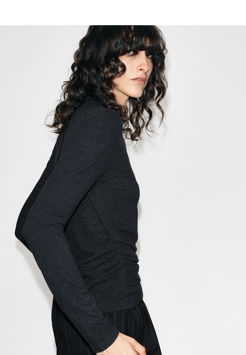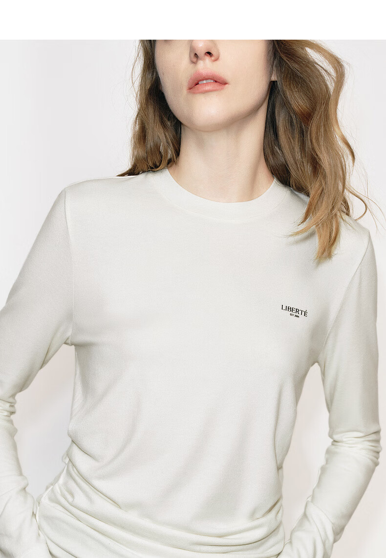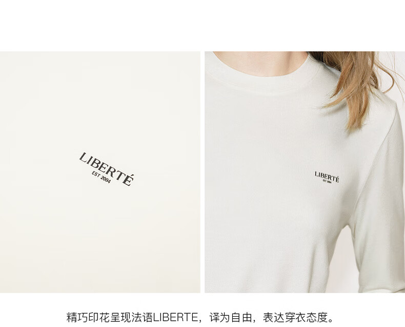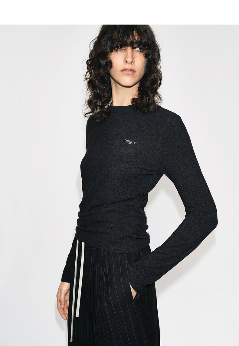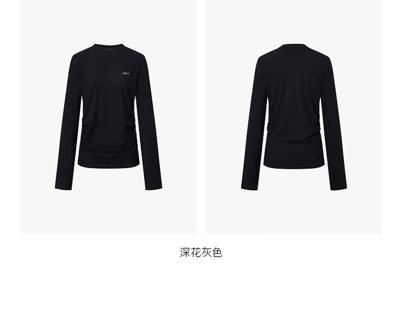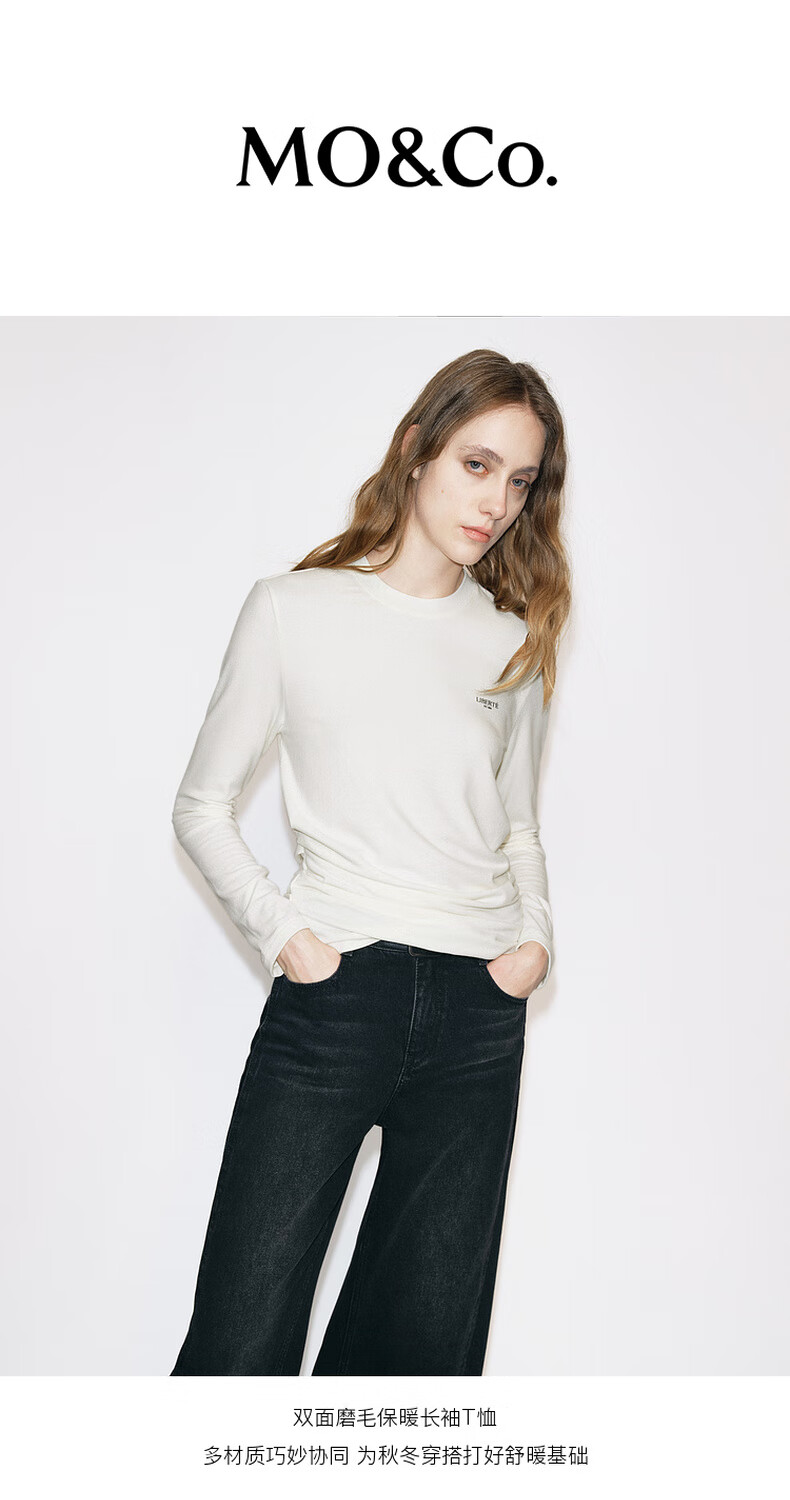 MO&Co. Qin Lan's same style long-sleeved T-shirt 2025 winter new far-infrared heating double-sided brushed MBE4TEET03 dark floral gray M /165