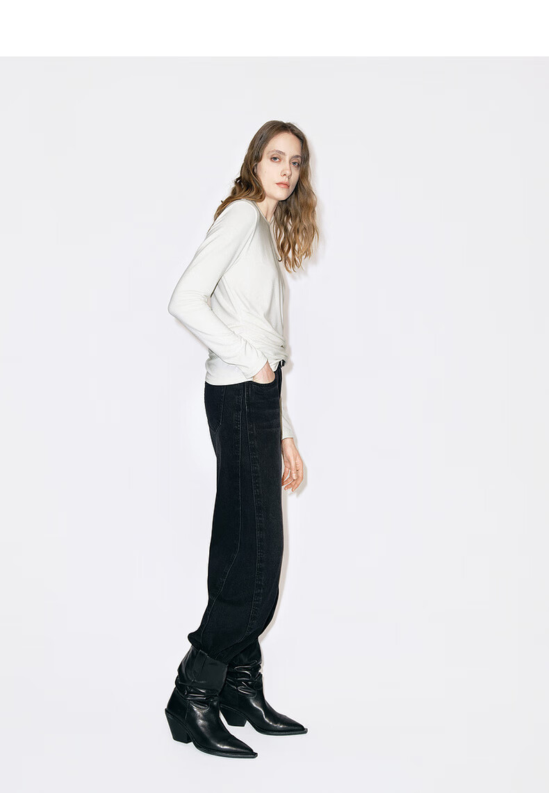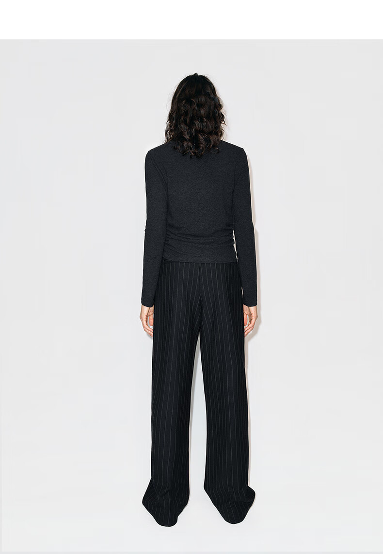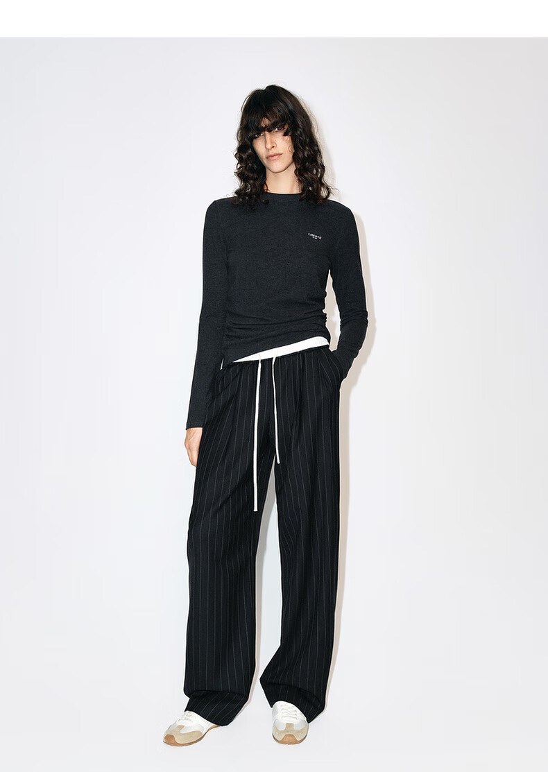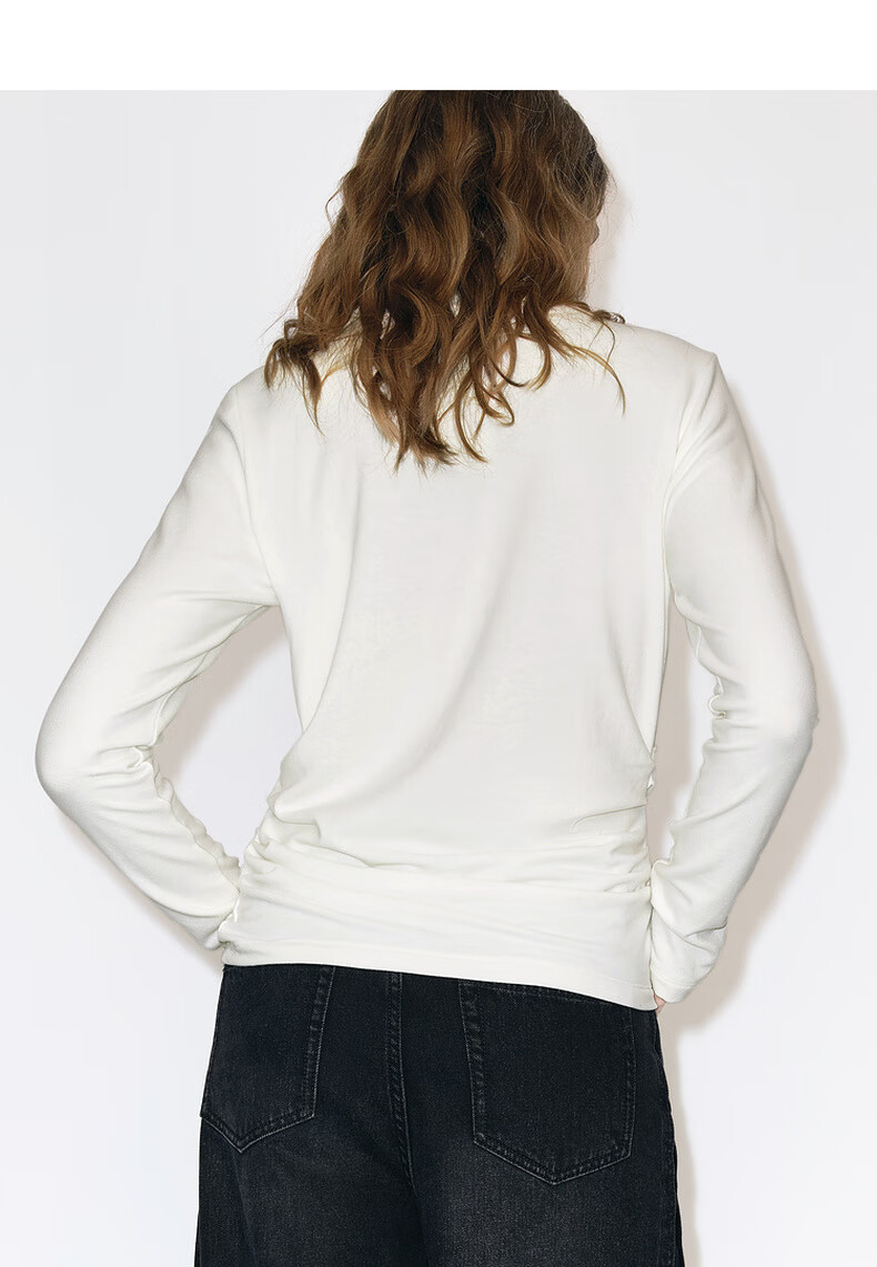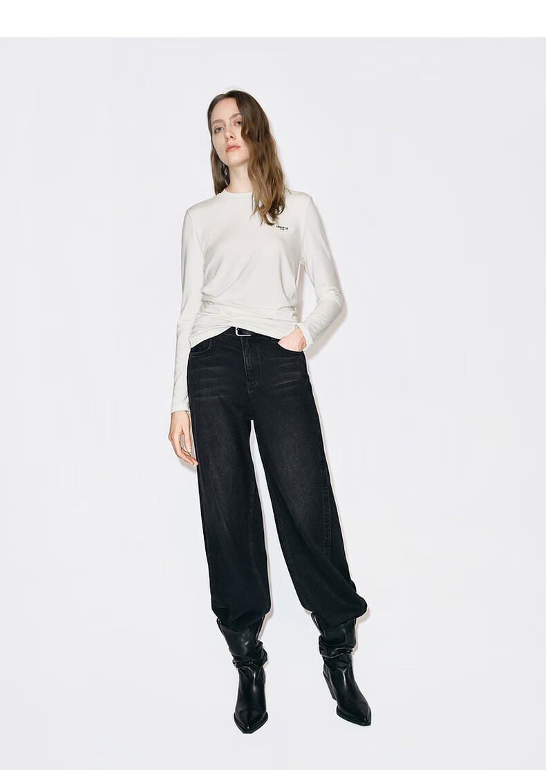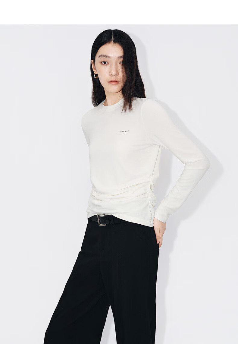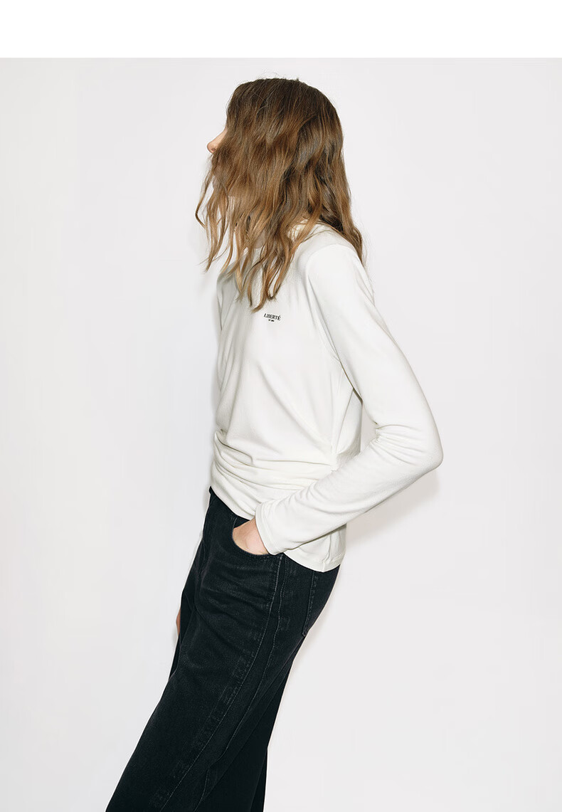 MO&Co. Qin Lan's same style long-sleeved T-shirt 2025 winter new far-infrared heating double-sided brushed MBE4TEET03 dark floral gray M /165