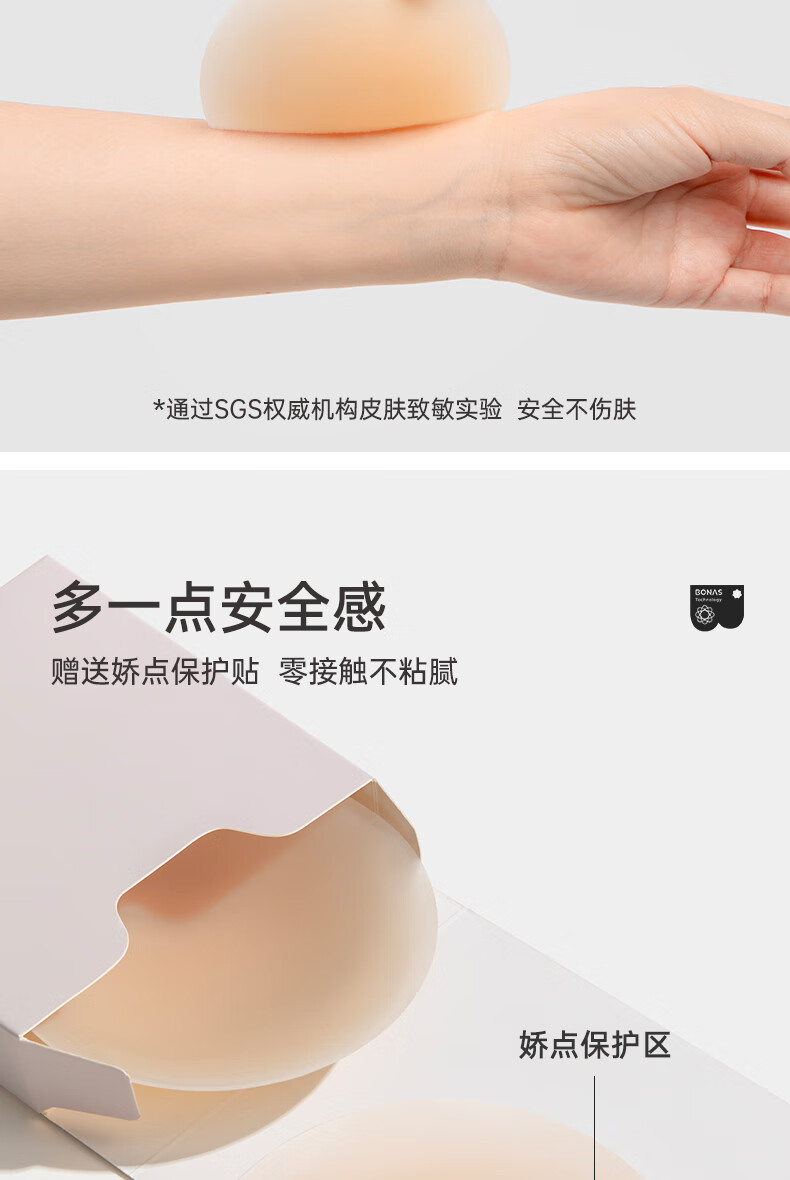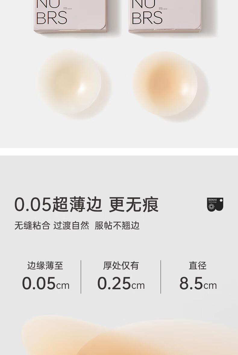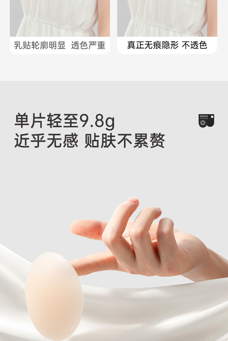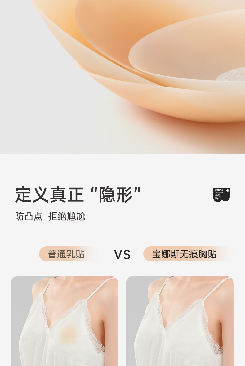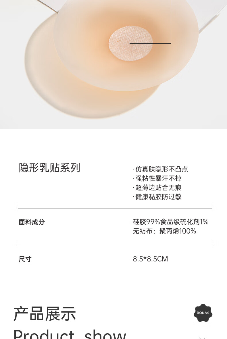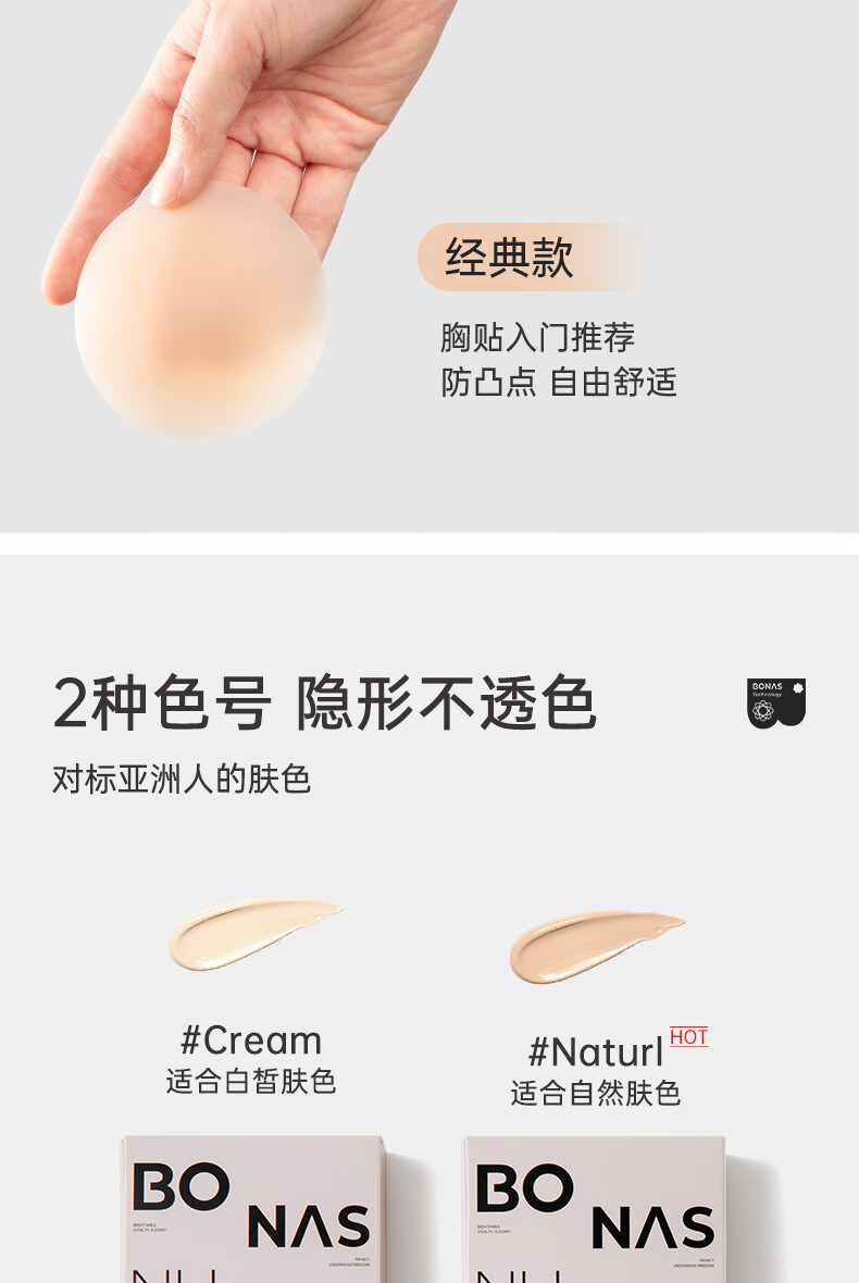 BONAS Suitable Skin Invisible Breast Patch Winter Thin Breathable Silicone Breast Patch Women's Wedding Dress Seamless Anti-Bump Spot 2 Pairs Natural Skin (Classic Style)