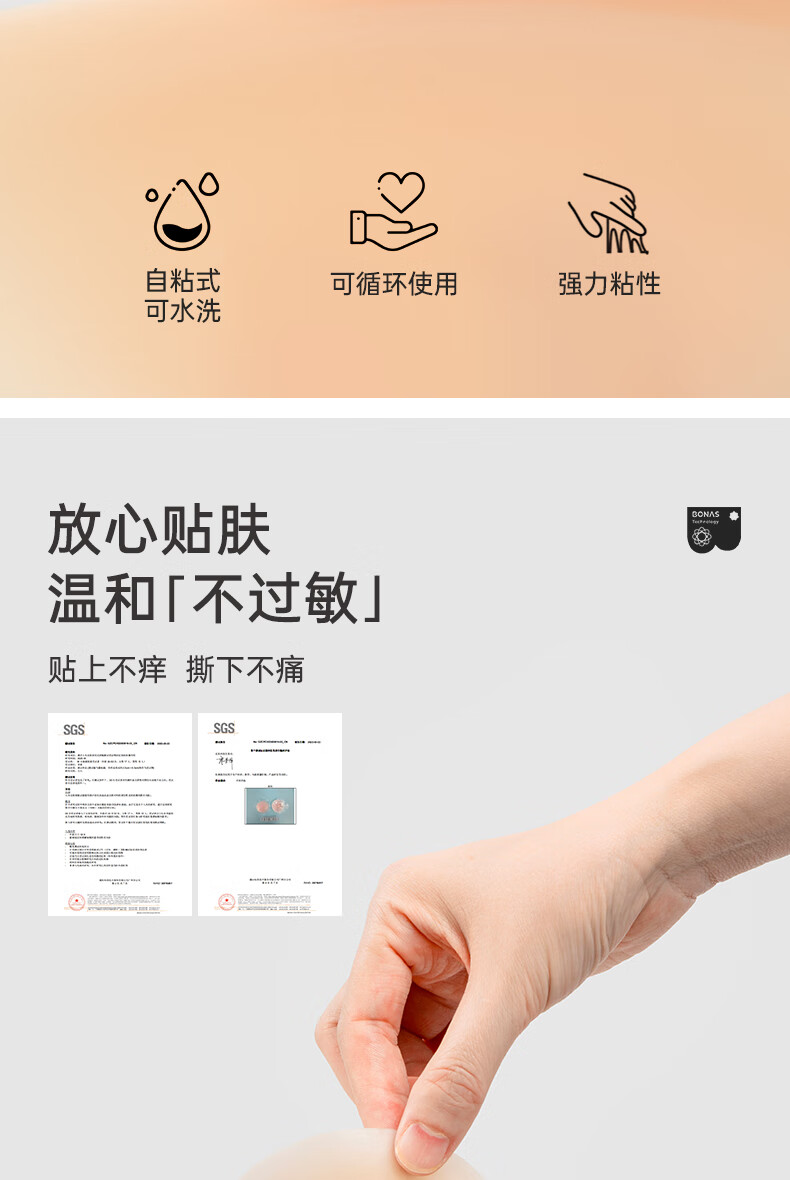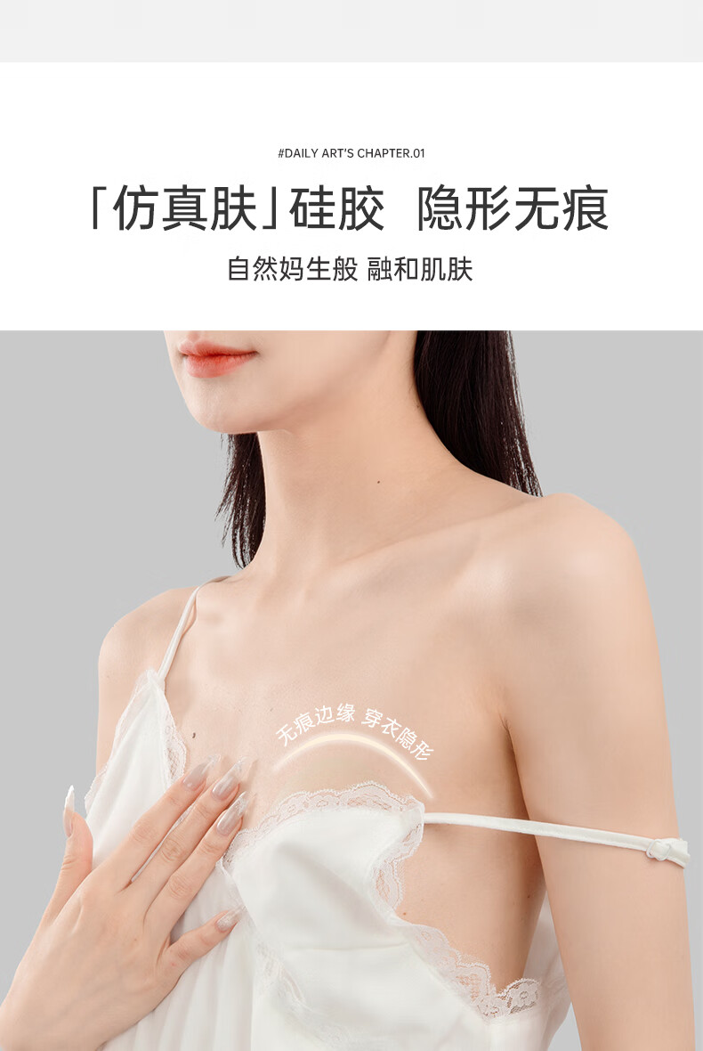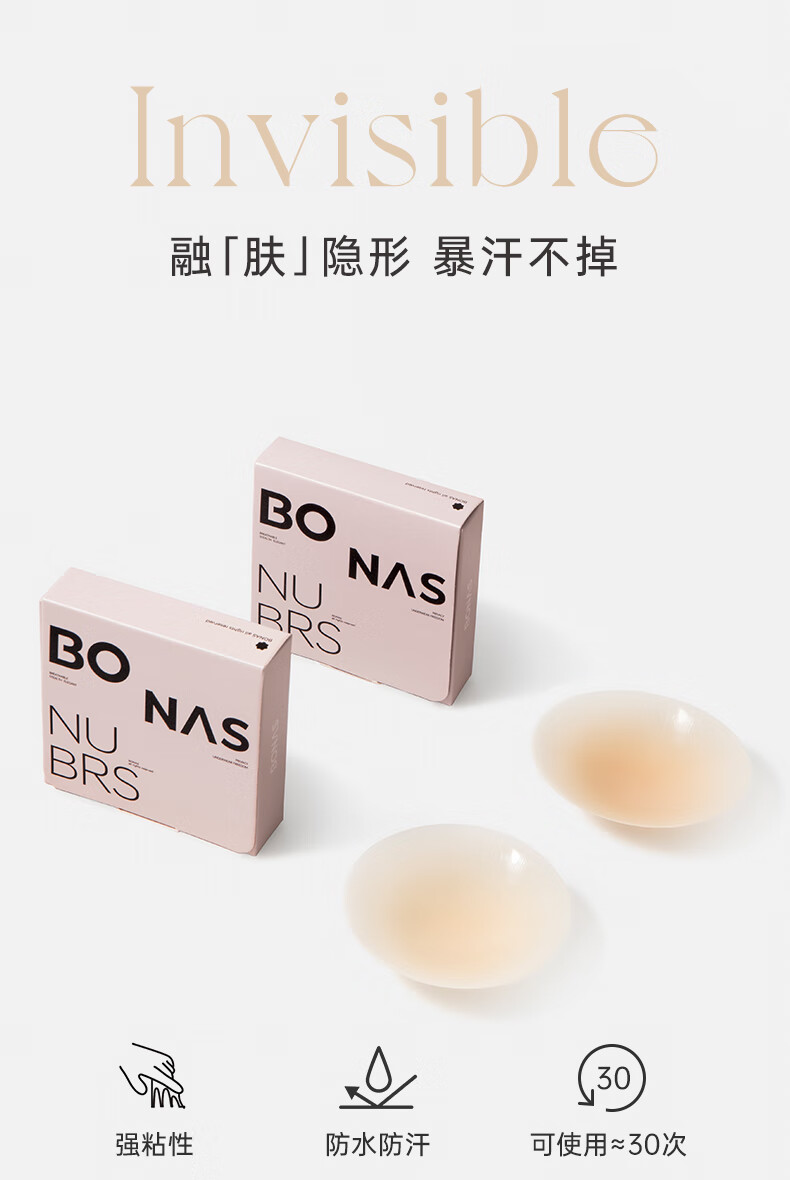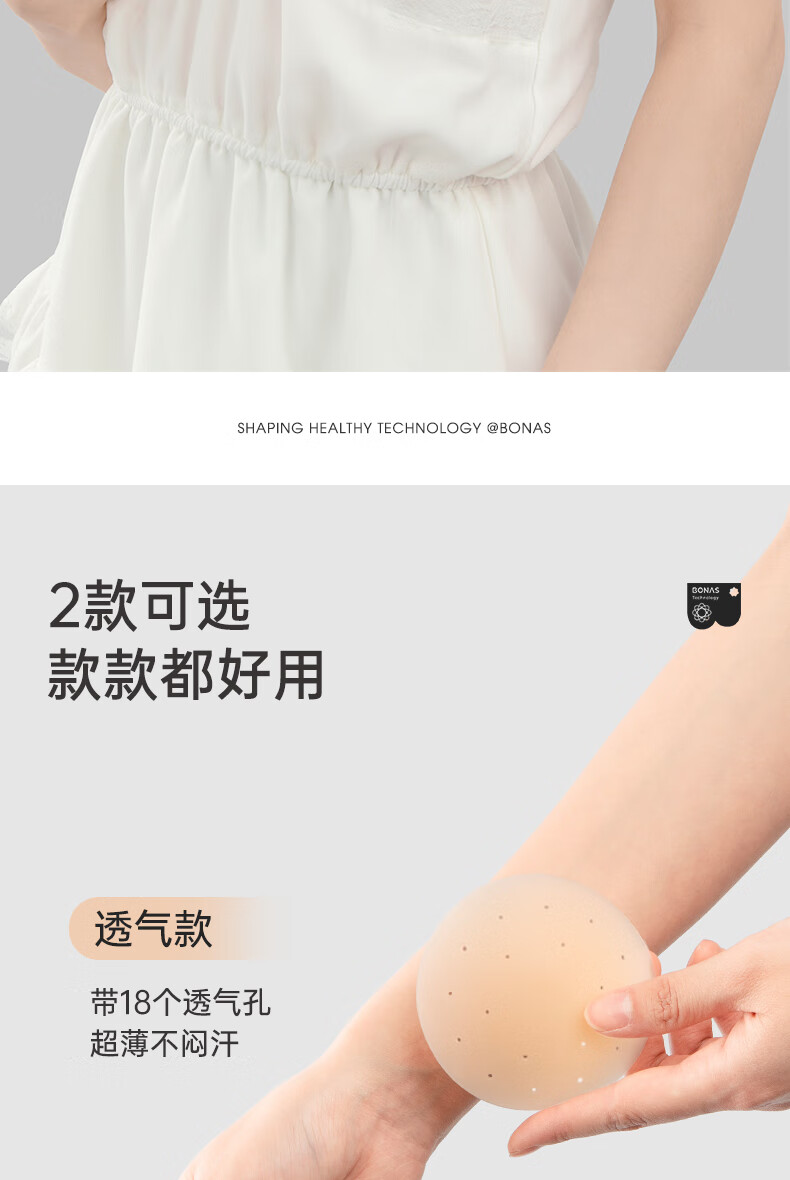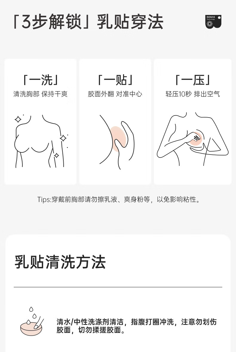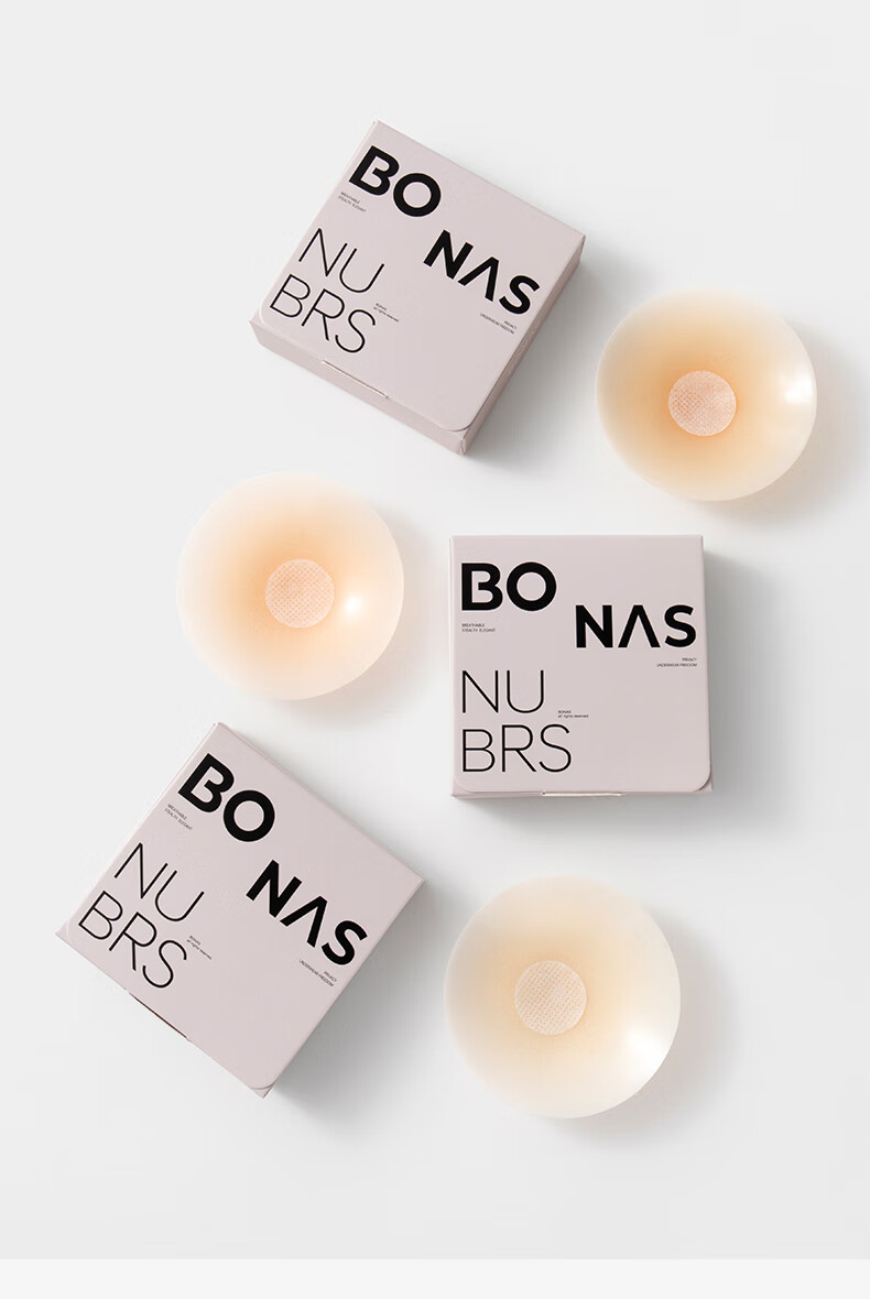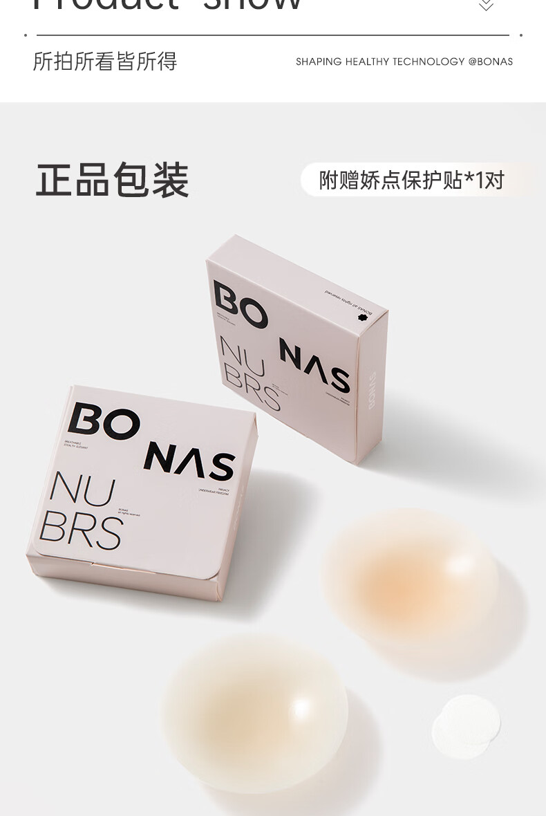 BONAS Suitable Skin Invisible Breast Patch Winter Thin Breathable Silicone Breast Patch Women's Wedding Dress Seamless Anti-Bump Spot 2 Pairs Natural Skin (Classic Style)
