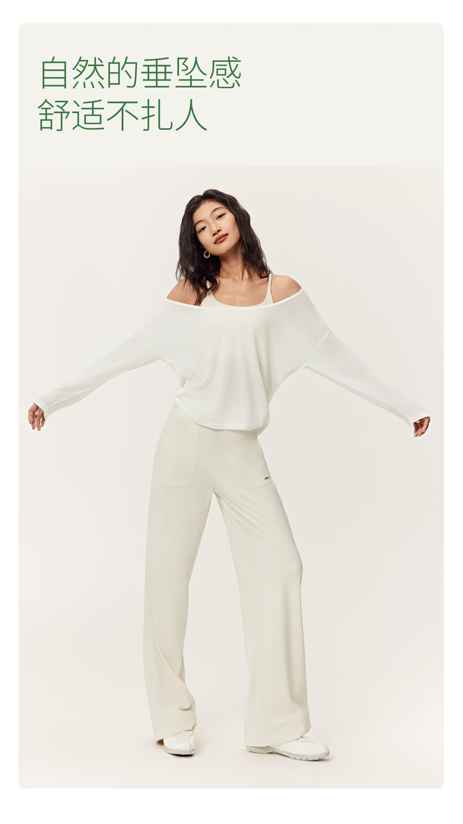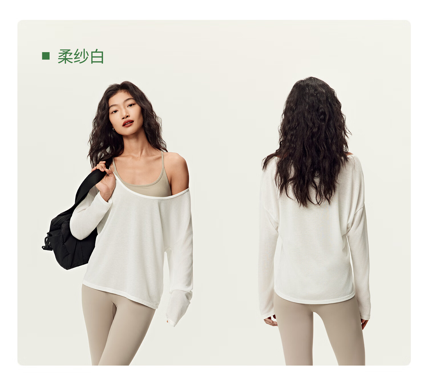 Yottoy large round neck sports blouse women's one-shoulder loose and lightweight long-sleeved Pilates fitness T-shirt yoga wear soft gauze white M