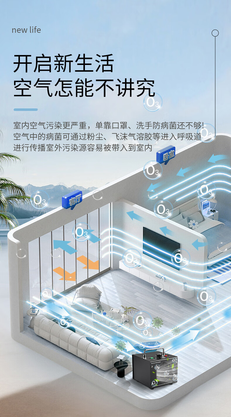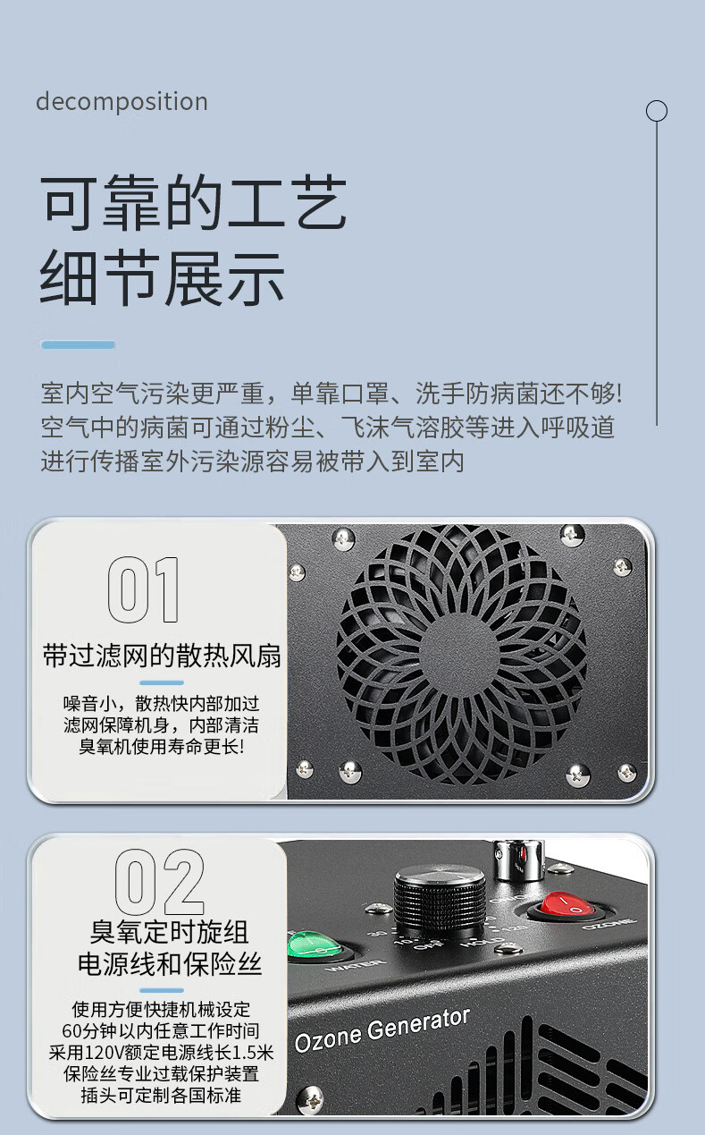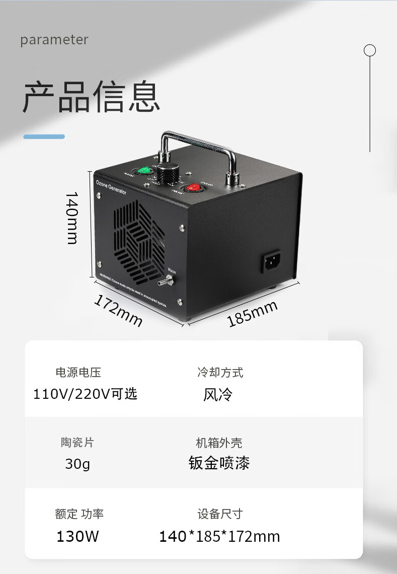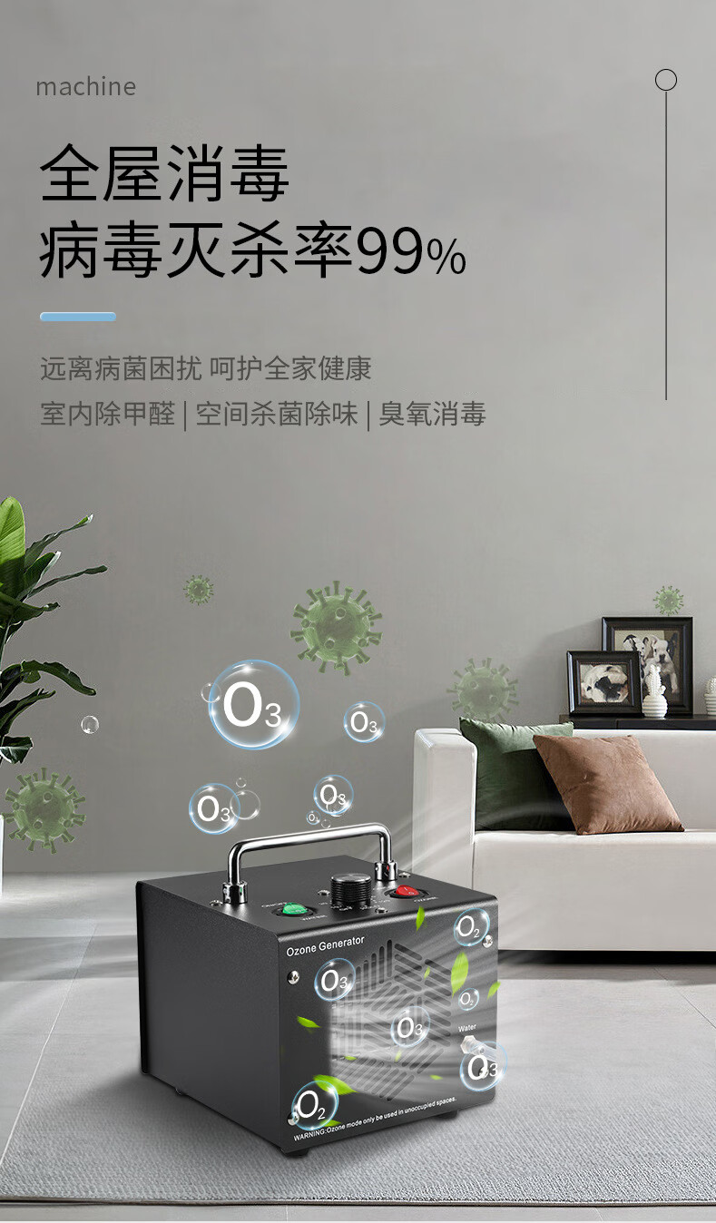 TOPUVAN ozone generator, commercial and household, powerful deodorization, formaldehyde odor removal, air purification and disinfection artifact, food factory garbage room air disinfection, sterilization and deodorization equipment, black model, 30g/h space disinfection + 1g water disinfection
