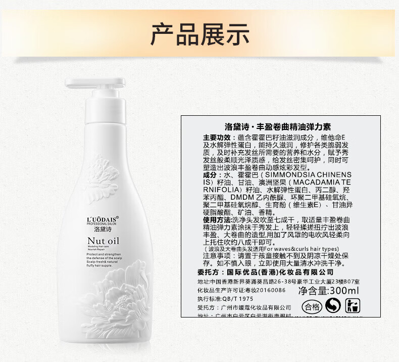 Luo Daishi elastin perfume type curly hair moisturizing care volume fluffy styling repair care essence styling long-lasting protection normal Specifications 300ml