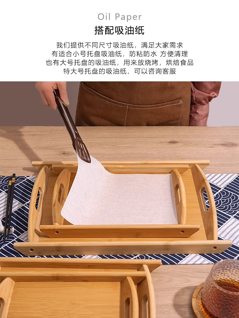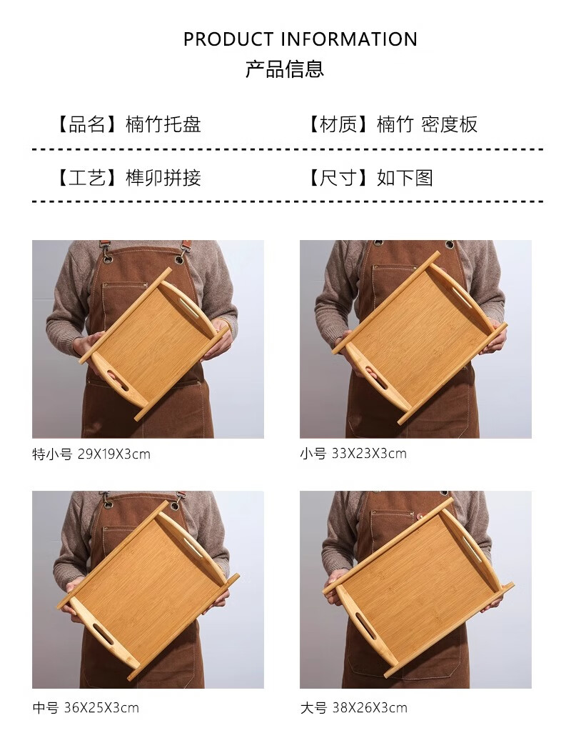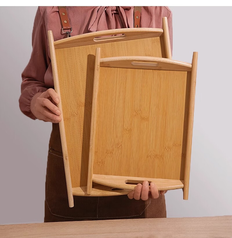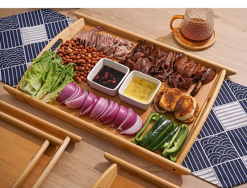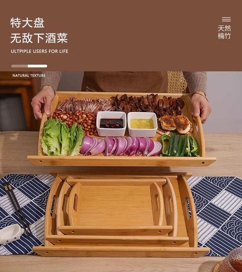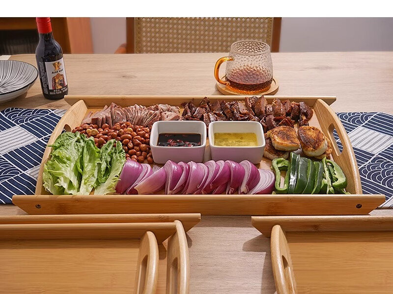 Shenglaifu Tray Bamboo Wooden Rectangular Dinner Plate Dish Plate Hotel BBQ Oil Paper Liner Household Commercial Bin-Ear Plate Dinner Plate Large-Double-Ear Tray 38*26*4.4cm No Specifications