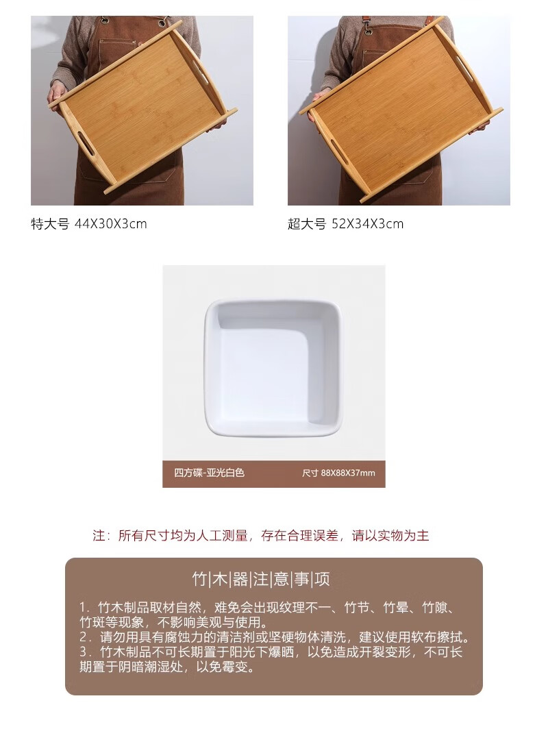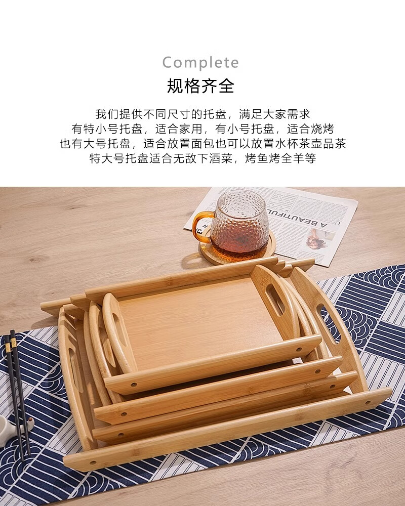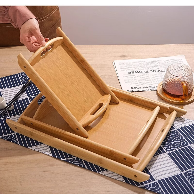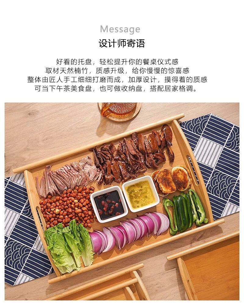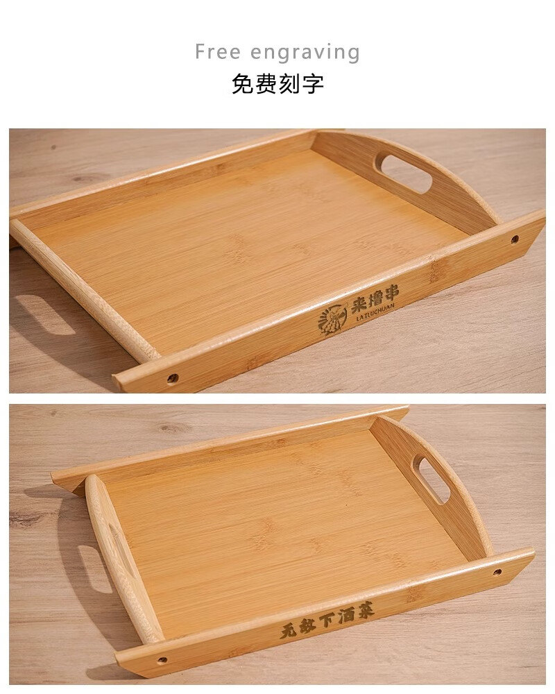 Shenglaifu Tray Bamboo Wooden Rectangular Dinner Plate Dish Plate Hotel BBQ Oil Paper Liner Household Commercial Bin-Ear Plate Dinner Plate Large-Double-Ear Tray 38*26*4.4cm No Specifications