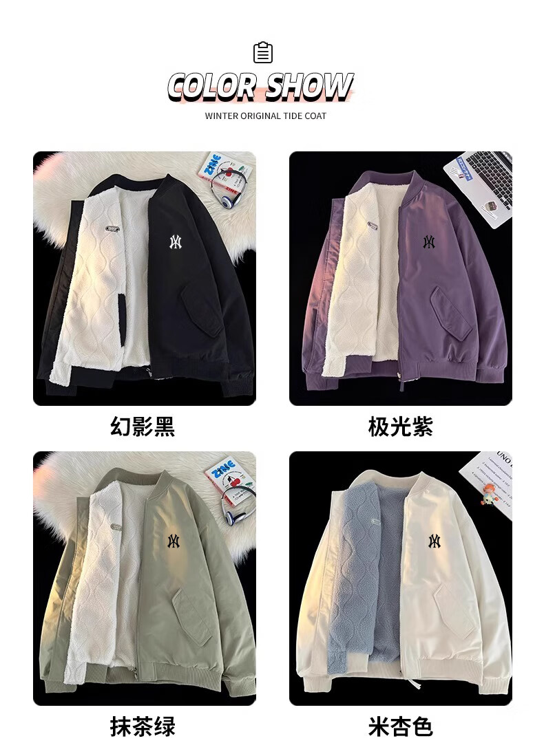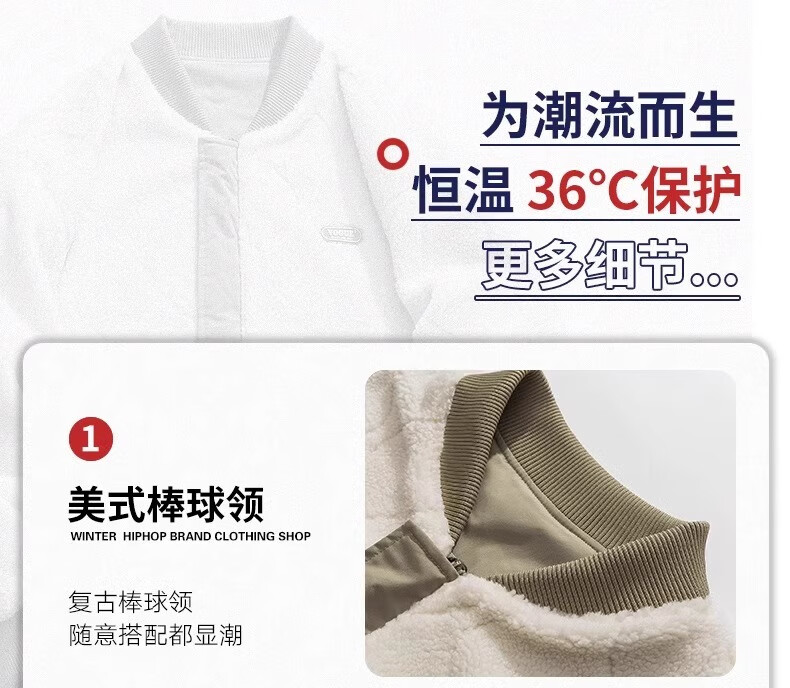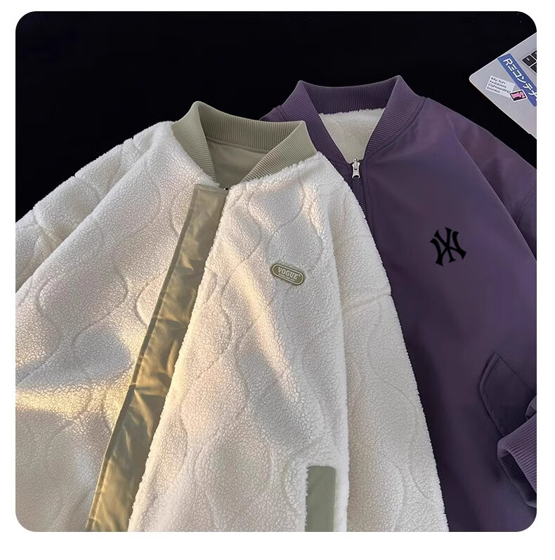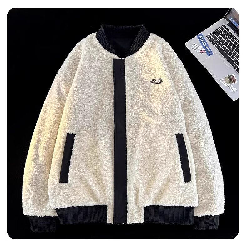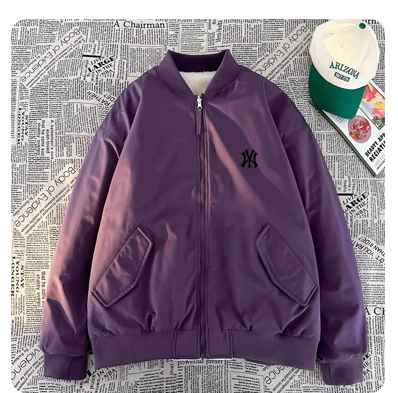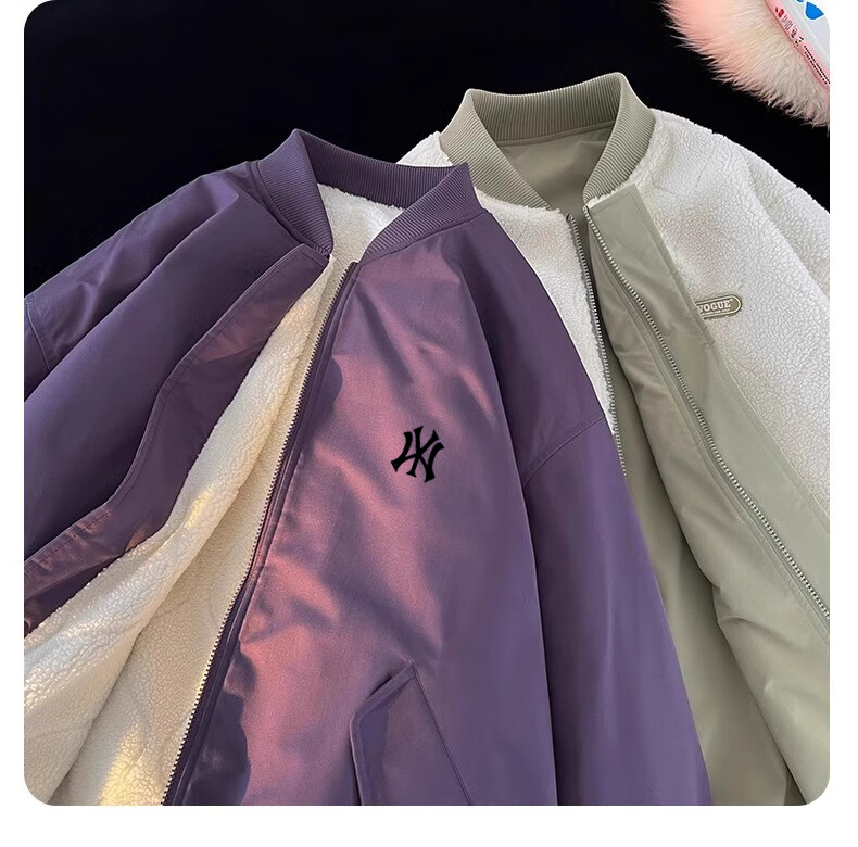 WENEGAINES official American trendy brand cotton coat for men and women, reversible winter velvet warm cotton jacket, baseball collar cotton jacket, apricot (NE01) L (recommended weight 130-150Jin Jin equals 0.5 kg)