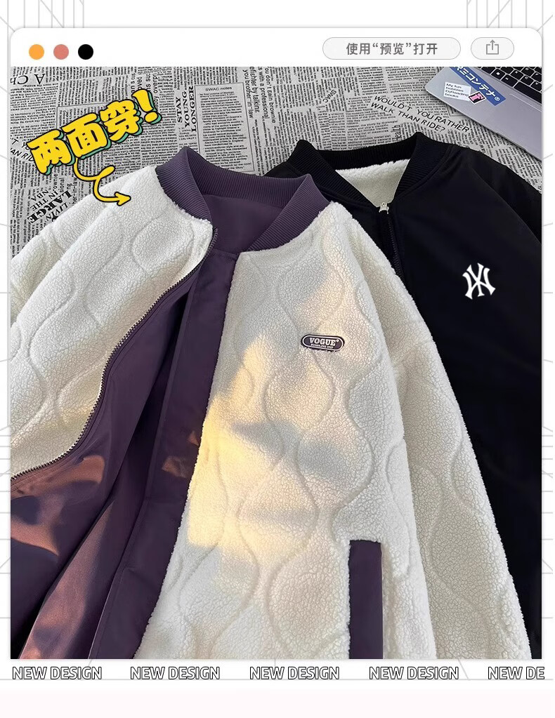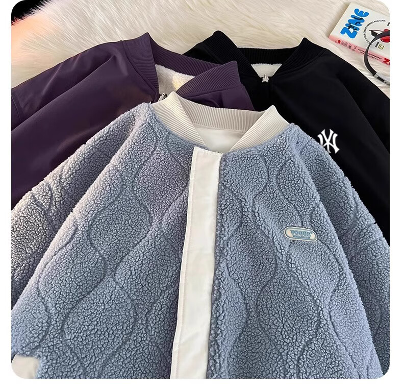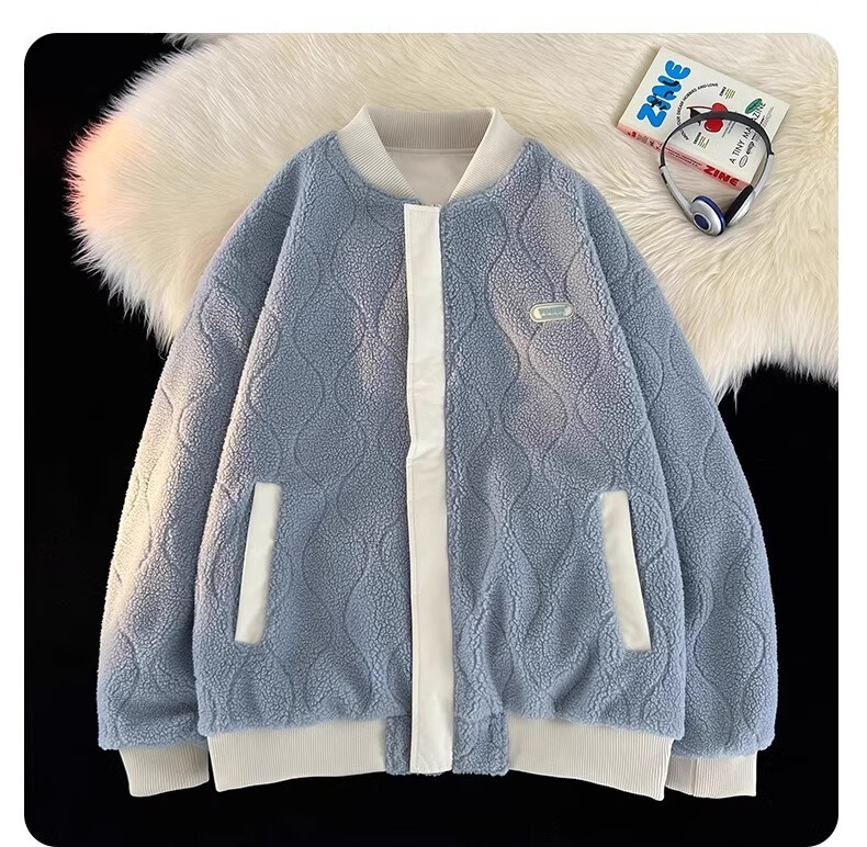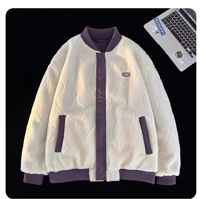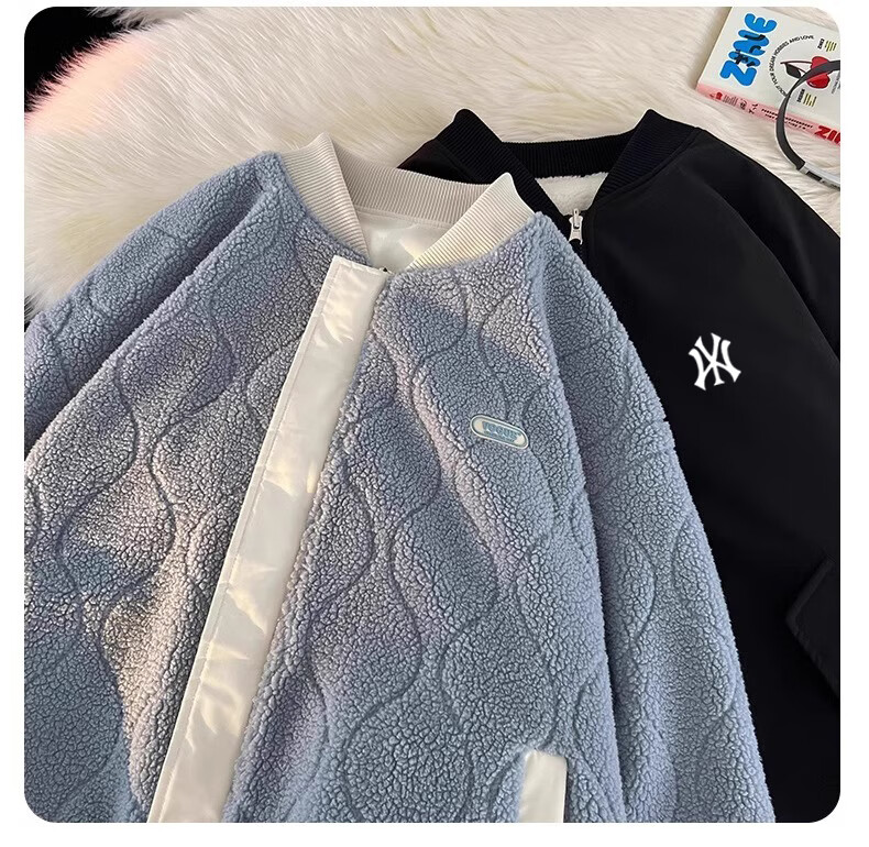 WENEGAINES official American trendy brand cotton coat for men and women, reversible winter velvet warm cotton jacket, baseball collar cotton jacket, apricot (NE01) L (recommended weight 130-150Jin Jin equals 0.5 kg)