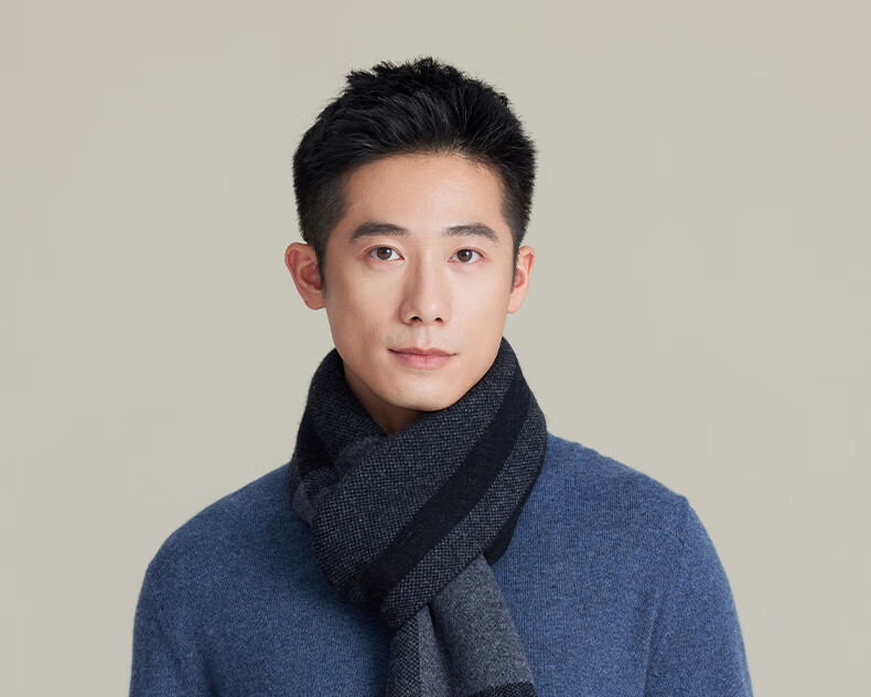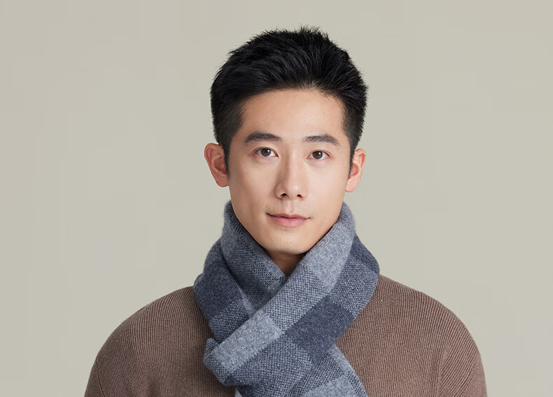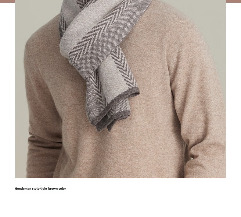 Shanghai Story Autumn and Winter New Men's Wool Scarf Thickened Warm Gift Box Gentleman Style - Light Brown