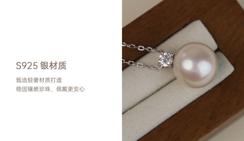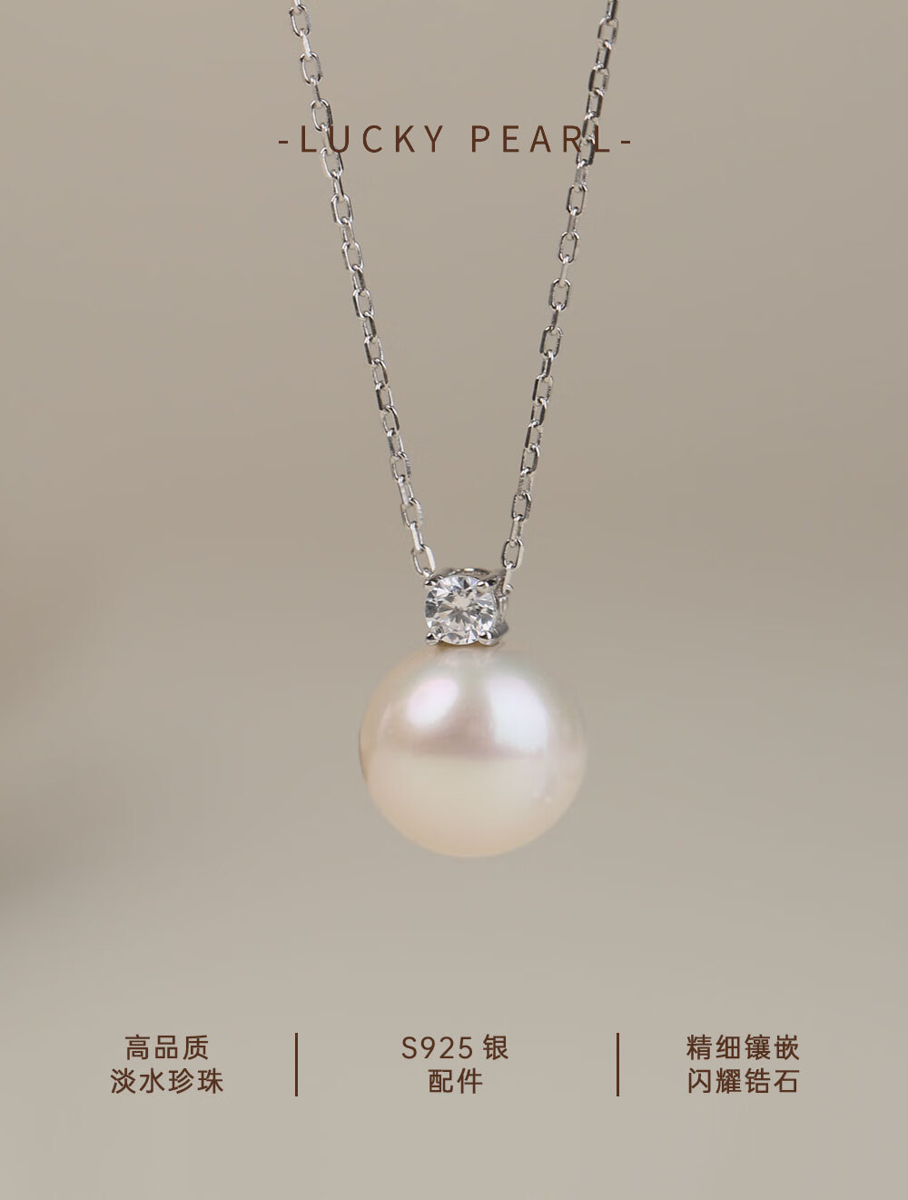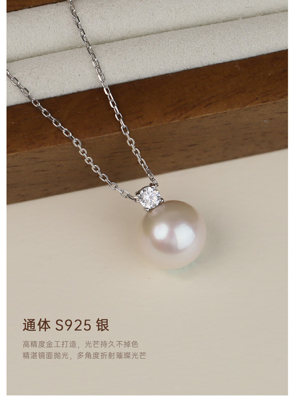 Lucky Pearl Pendant S925 Silver Edison Pearl Princess Style Freshwater Pearl Clavicle Chain as a Birthday Gift for My Girlfriend 10-11mm Near Round/Strong Light Princess Style Pendant Free Silver Chain
