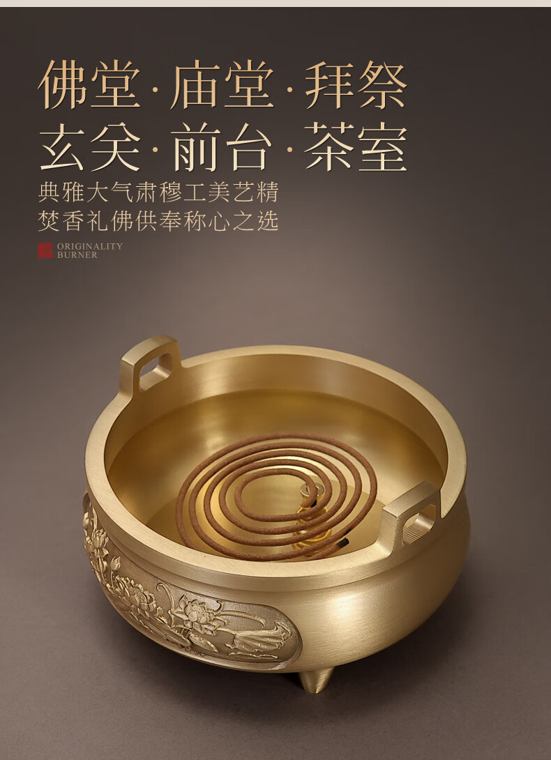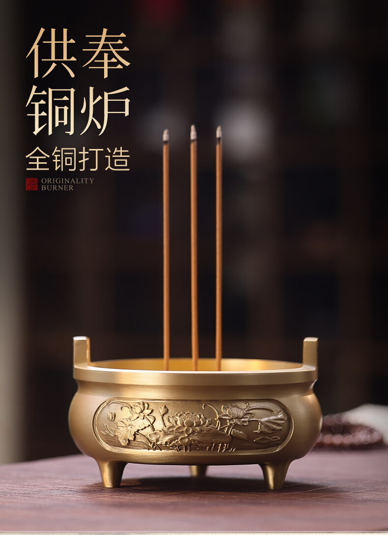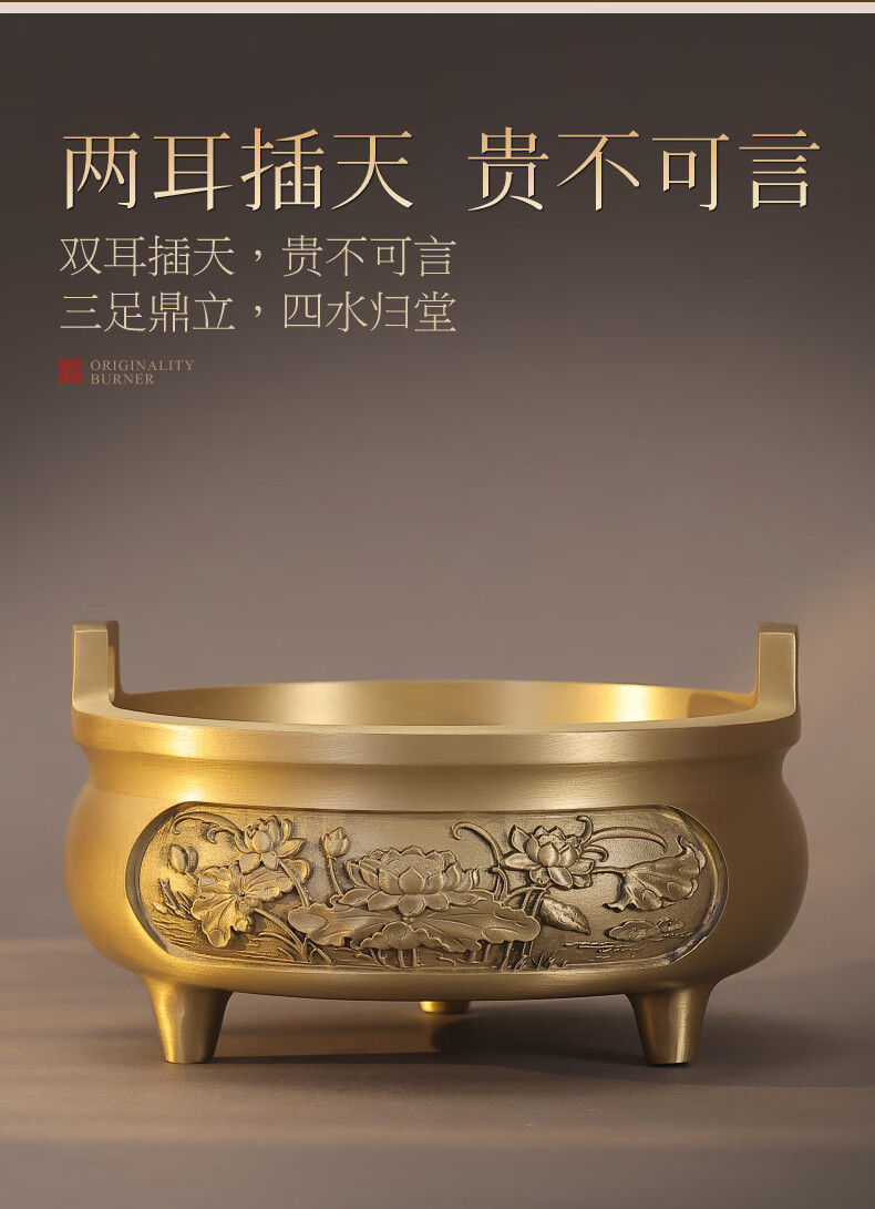 Fat Donglai's same style incense burner pure copper household extra large pure copper incense burner household offering Xuande stove indoor incense stick extra large offering stove