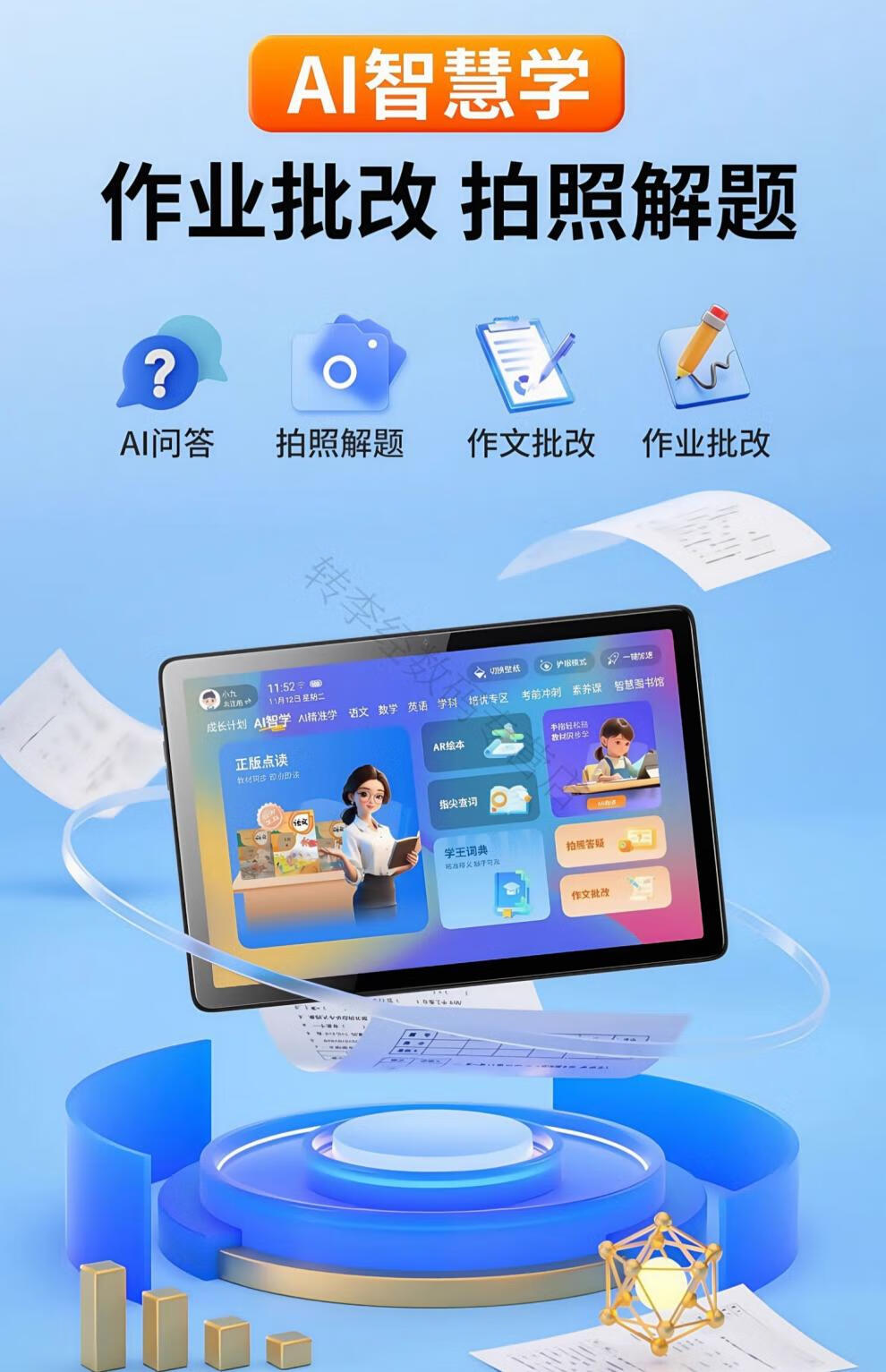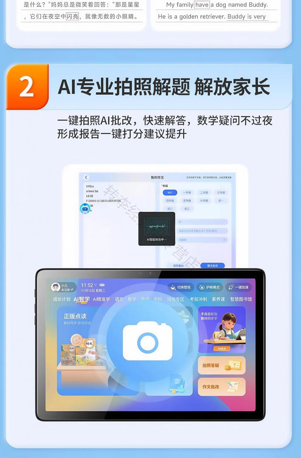 HKMW machine is suitable for point reading learning machine for primary school, junior high school and high school general general curriculum, dedicated tablet computer for students from first grade to high school English tutoring learning machine, space gray, genuine textbooks, synchronous point reading + full subject learning, 256GB standard version, 12G operation + support for card/WIFI