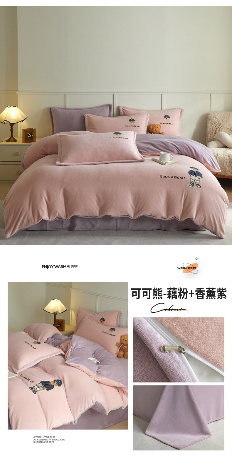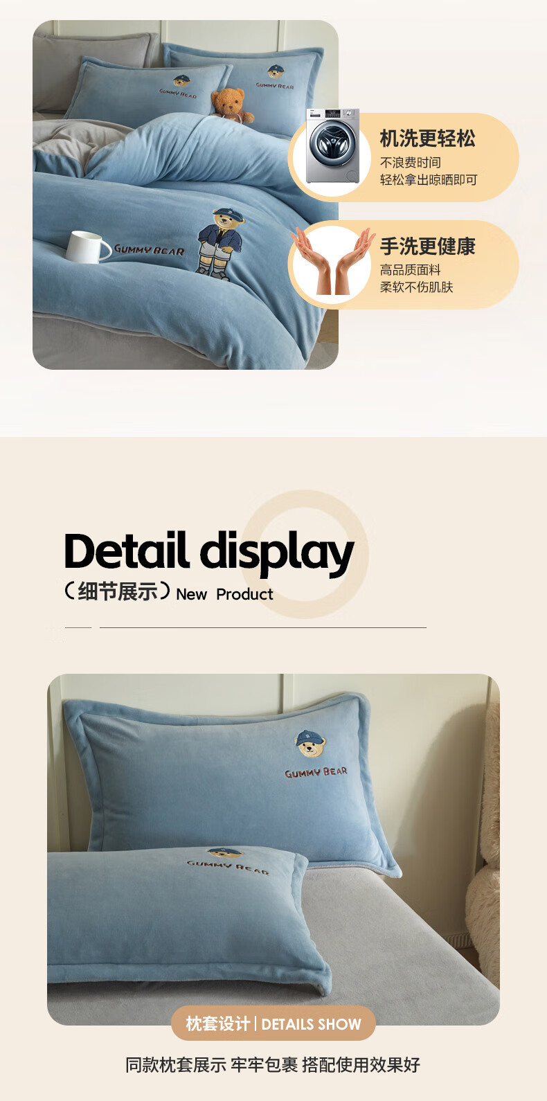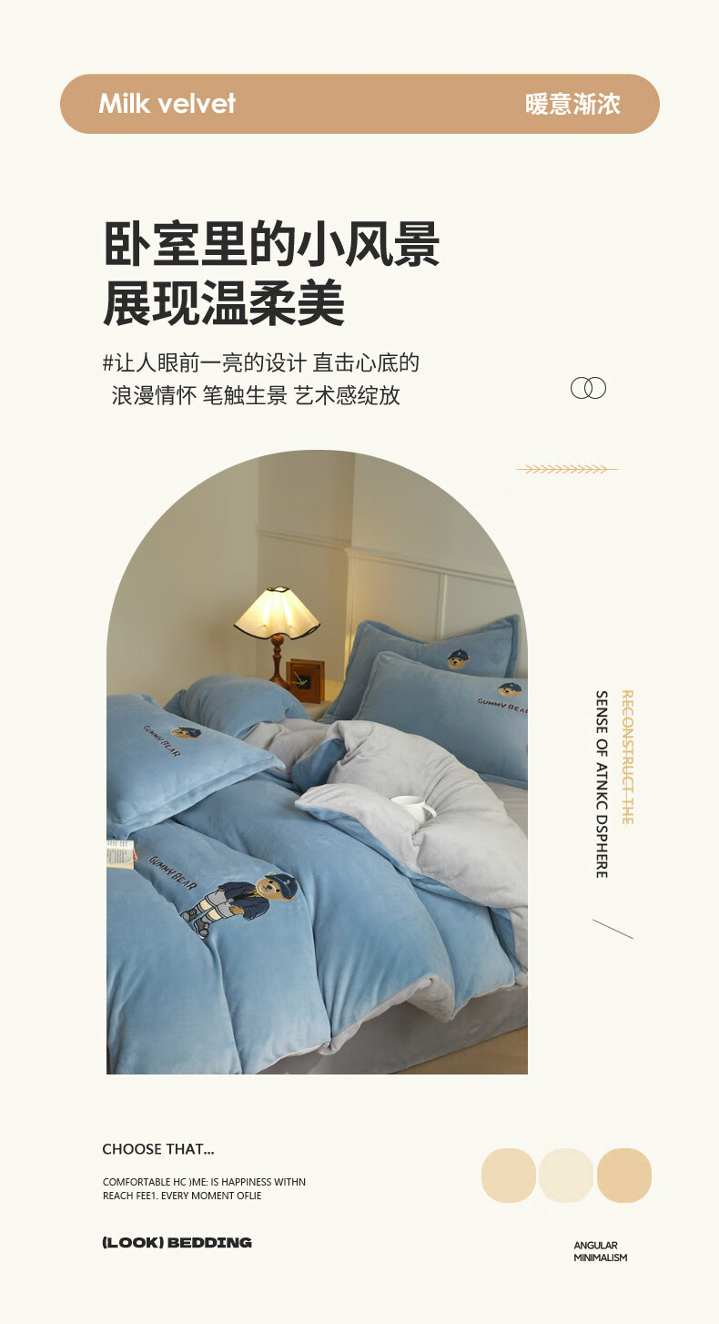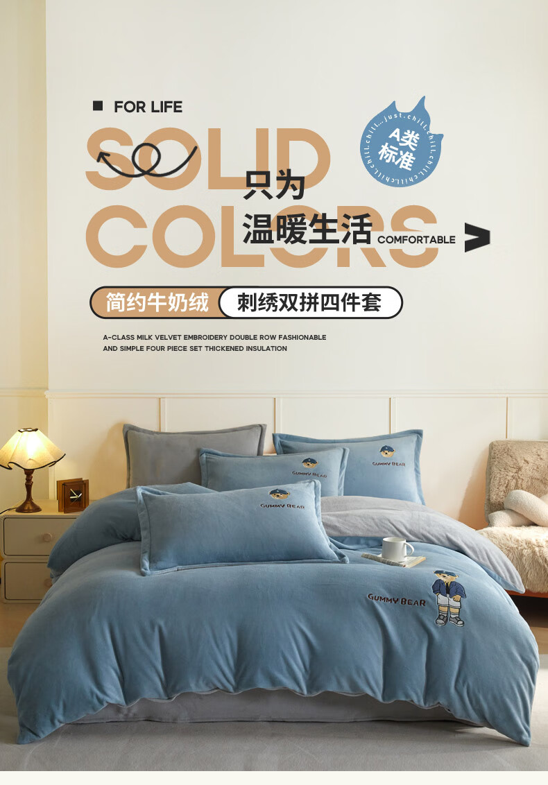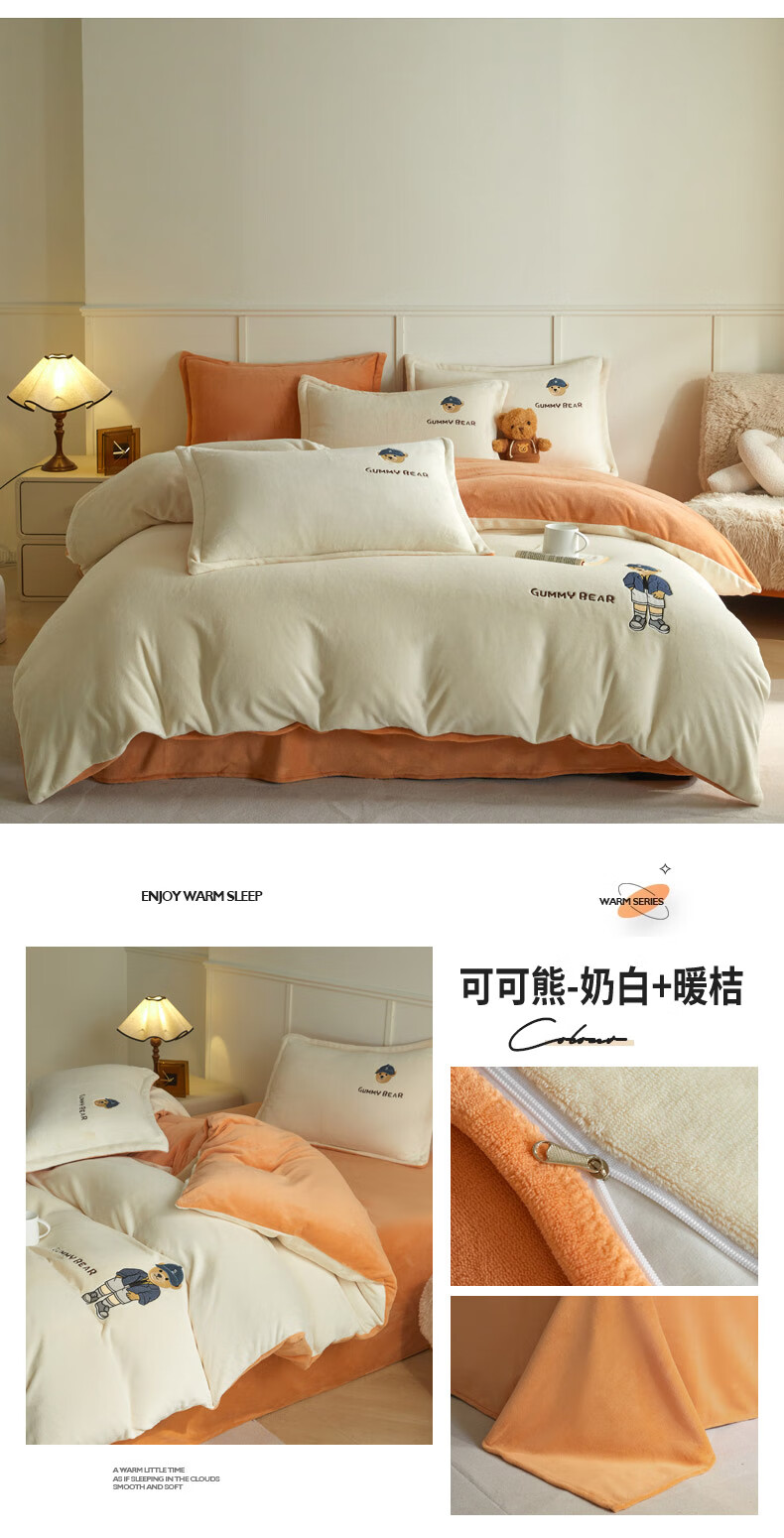 Mercury series 180 count high-end embroidered milk velvet bed four-piece set Class A baby velvet children's coral velvet quilt cover plus velvet Coco Bear - sea salt blue + light gray antistatic + thickened + no shedding 1.5m fitted sheet four-piece quilt cover 220*240 antistatic + thickened + no shedding