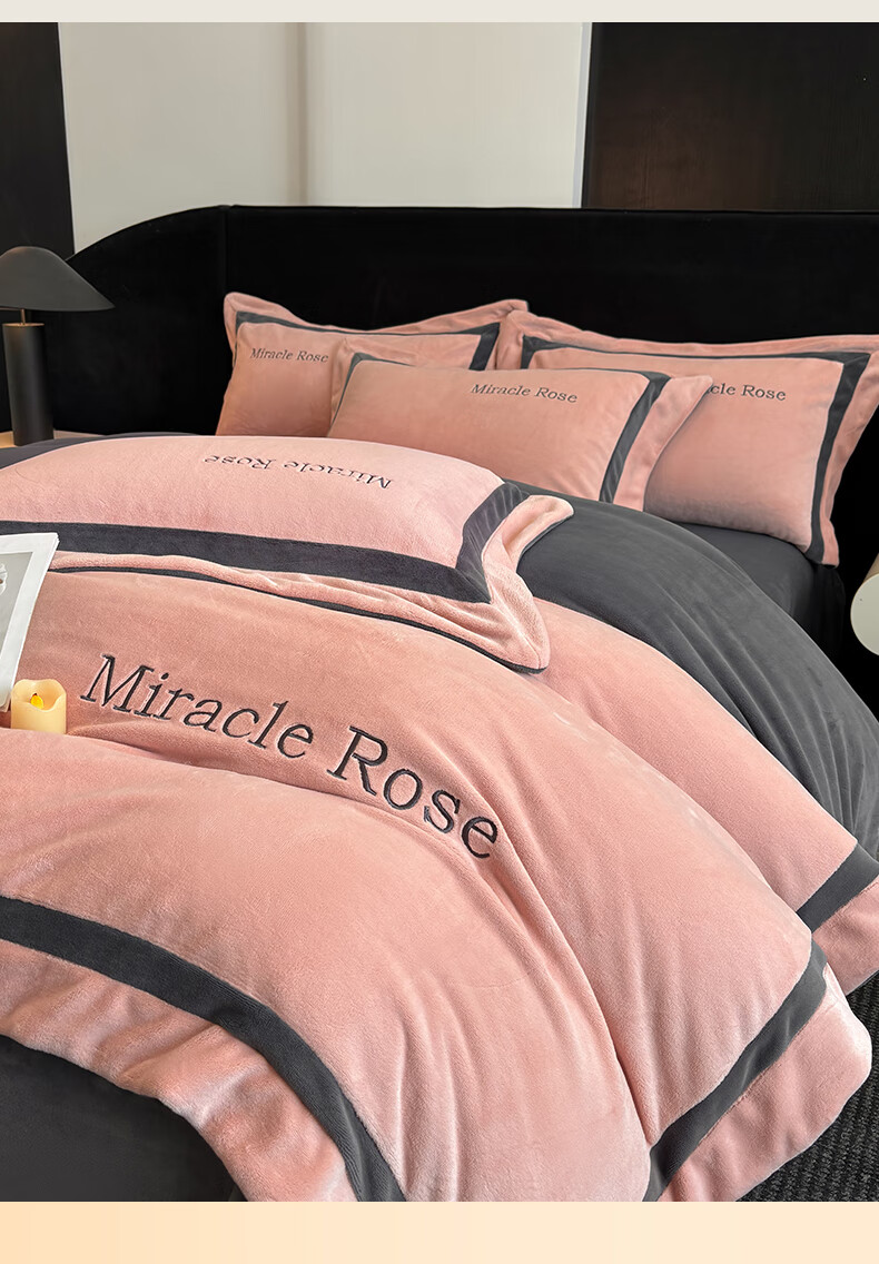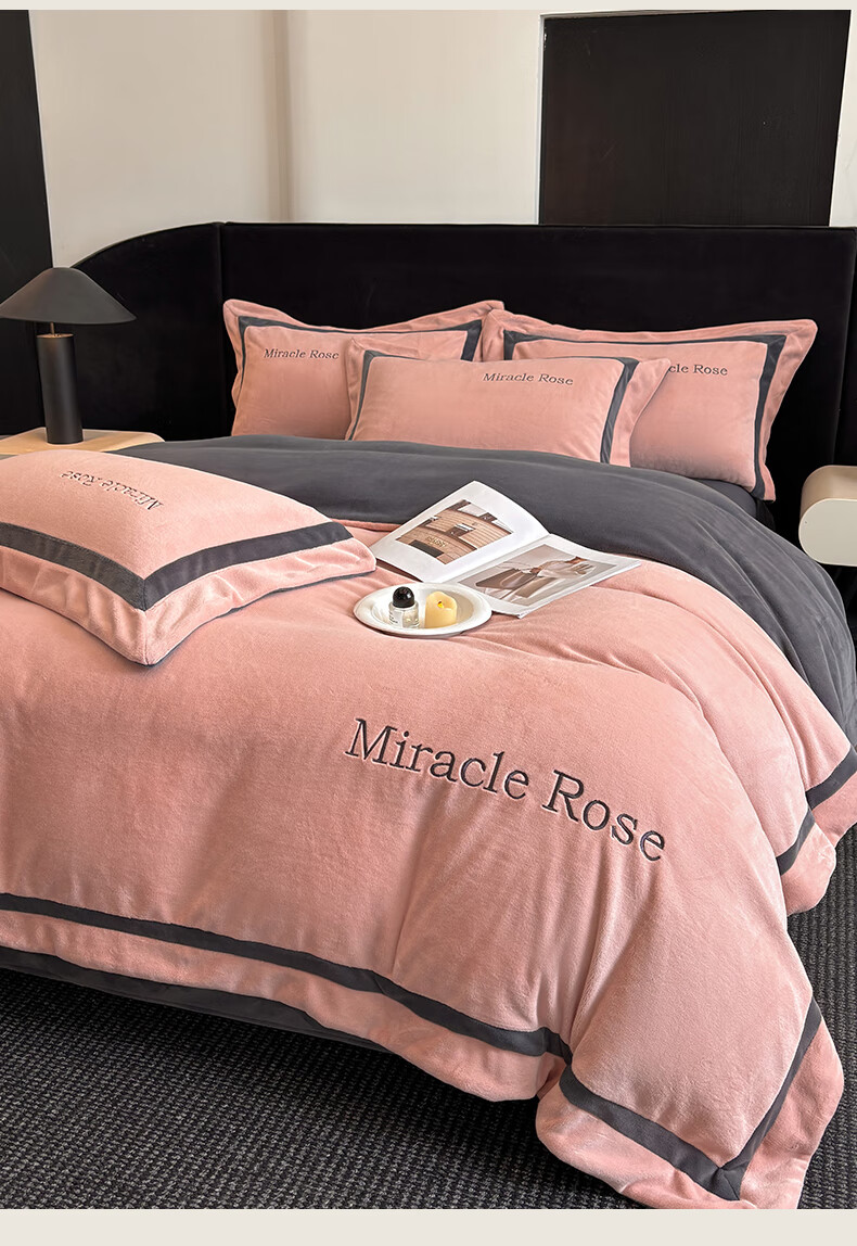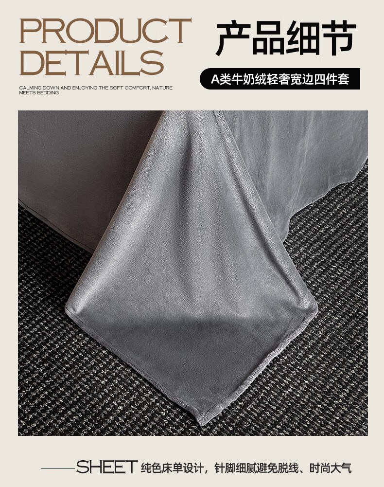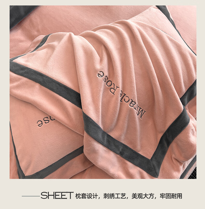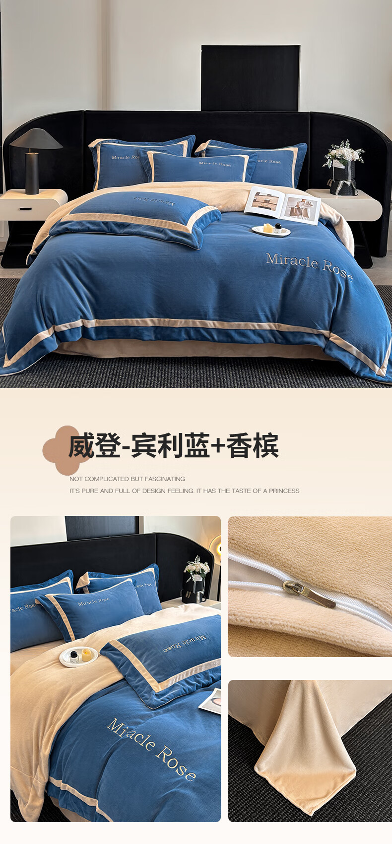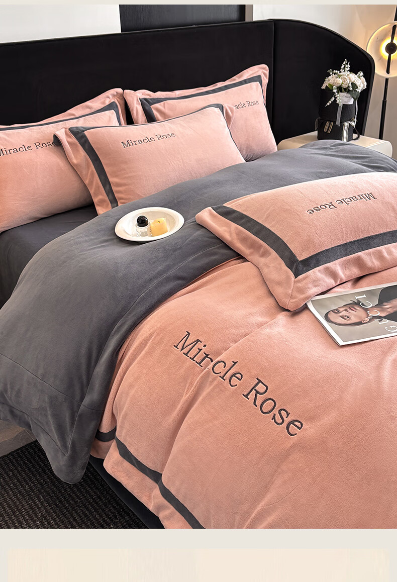 Mercury series 200-count high-end embroidered milk velvet four-piece set, Class A flannel coral velvet bed sheet, double-sided velvet quilt cover, autumn Vuitton-champagne + gentleman gray, anti-static + thickened + no lint, 1.5m bed sheet style four-piece set, anti-static + thickened + no lint