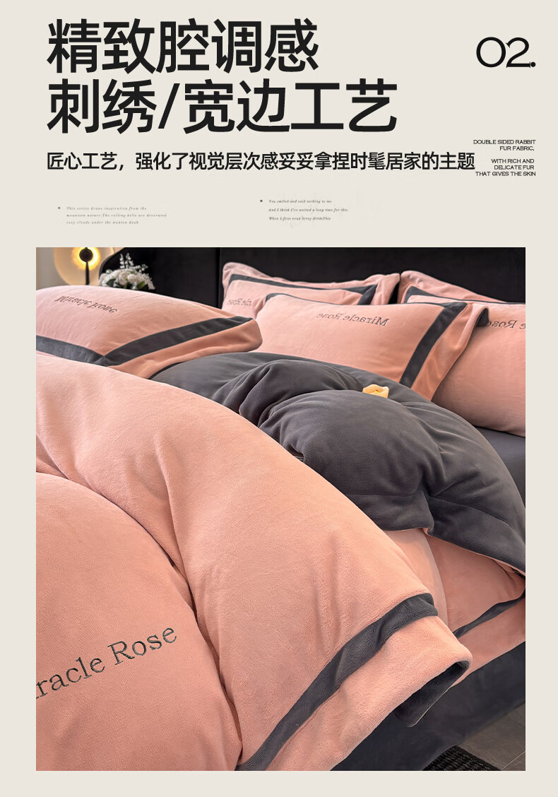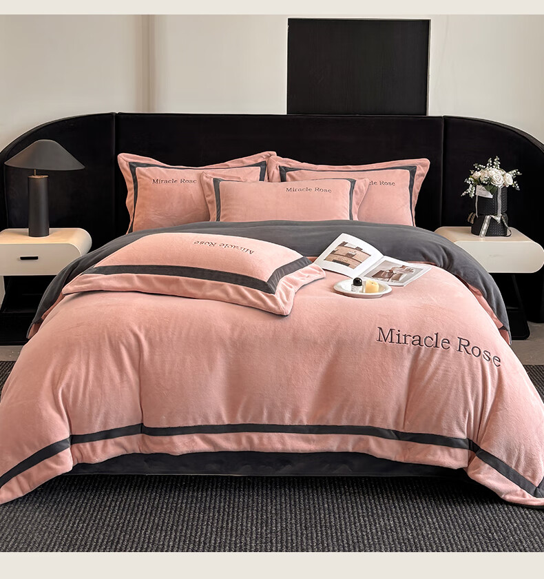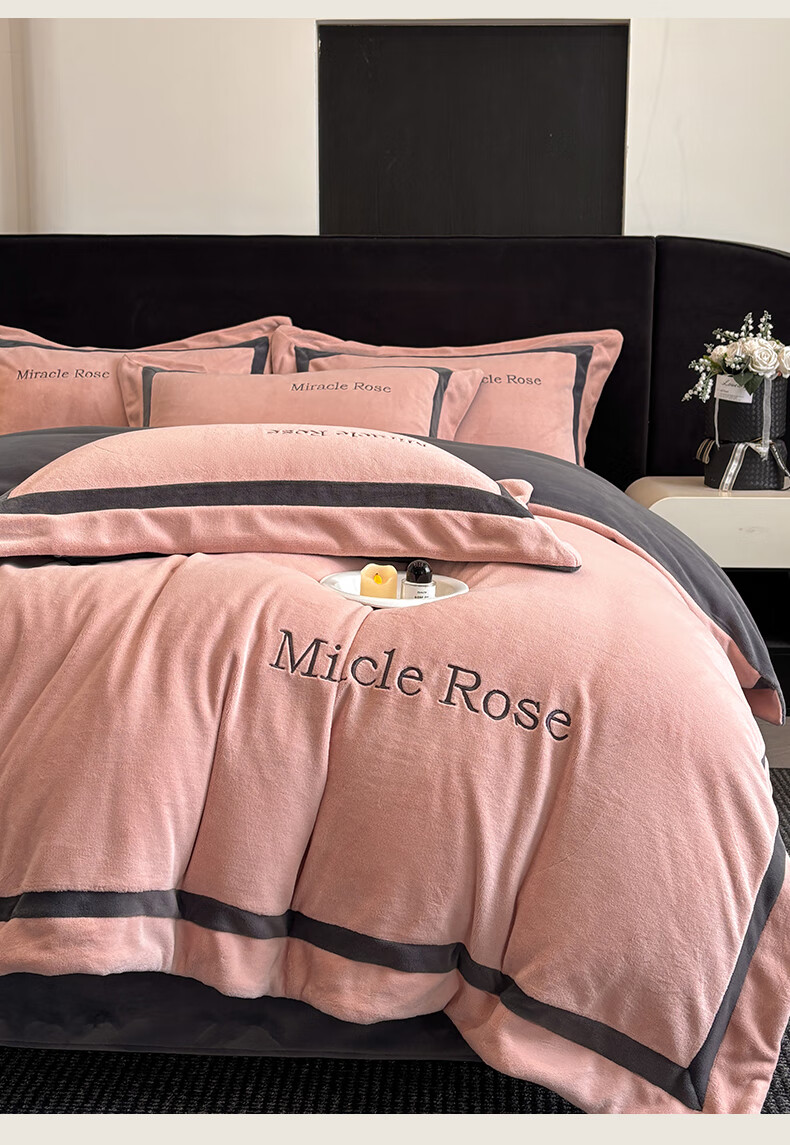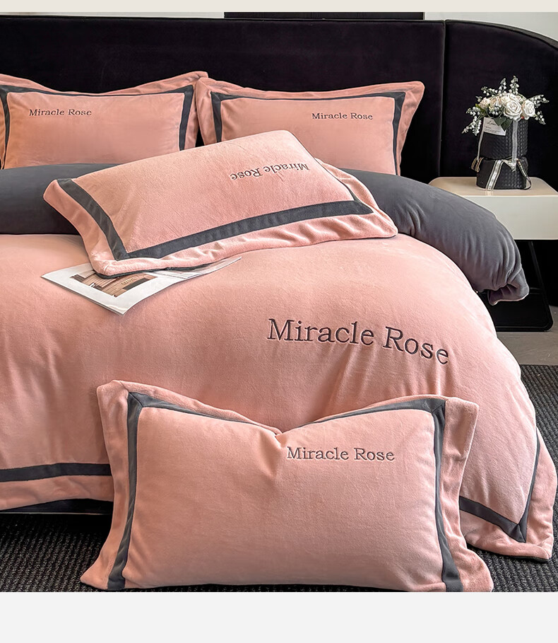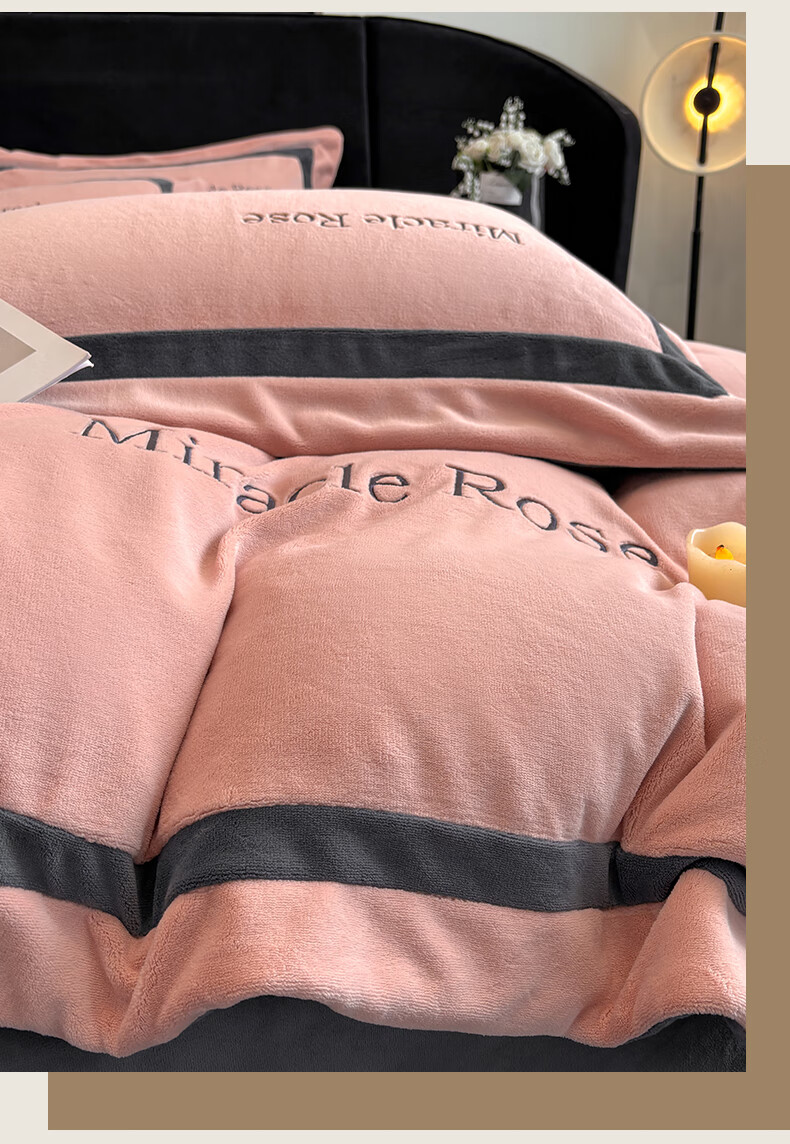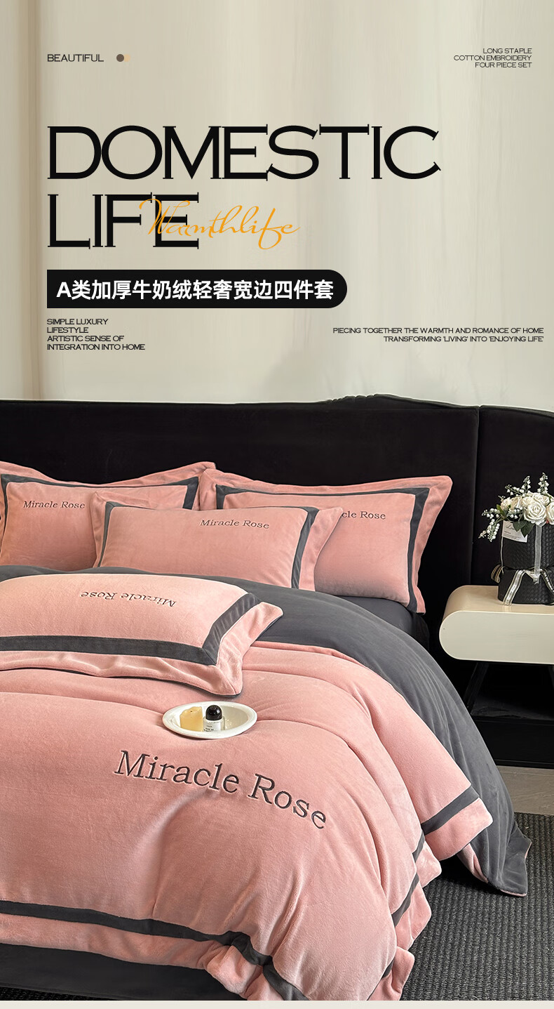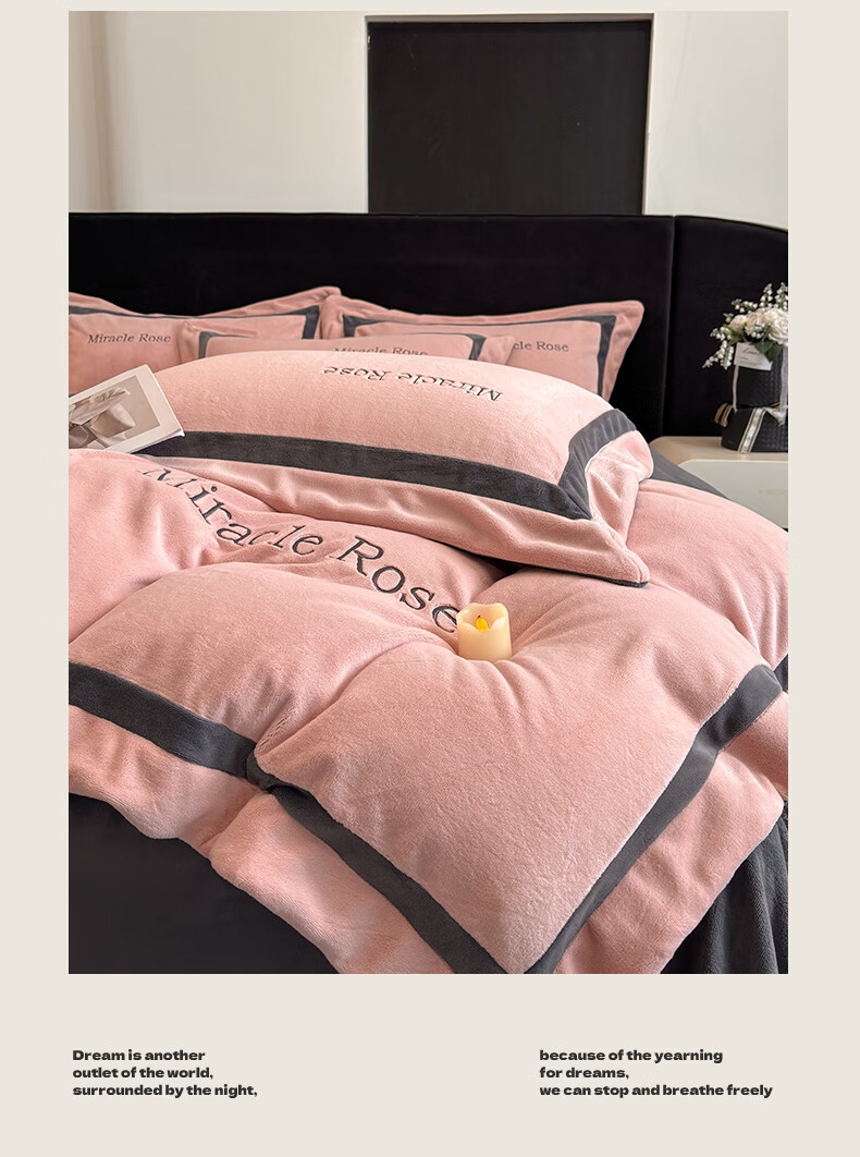 Mercury series 200-count high-end embroidered milk velvet four-piece set, Class A flannel coral velvet bed sheet, double-sided velvet quilt cover, autumn Vuitton-champagne + gentleman gray, anti-static + thickened + no lint, 1.5m bed sheet style four-piece set, anti-static + thickened + no lint