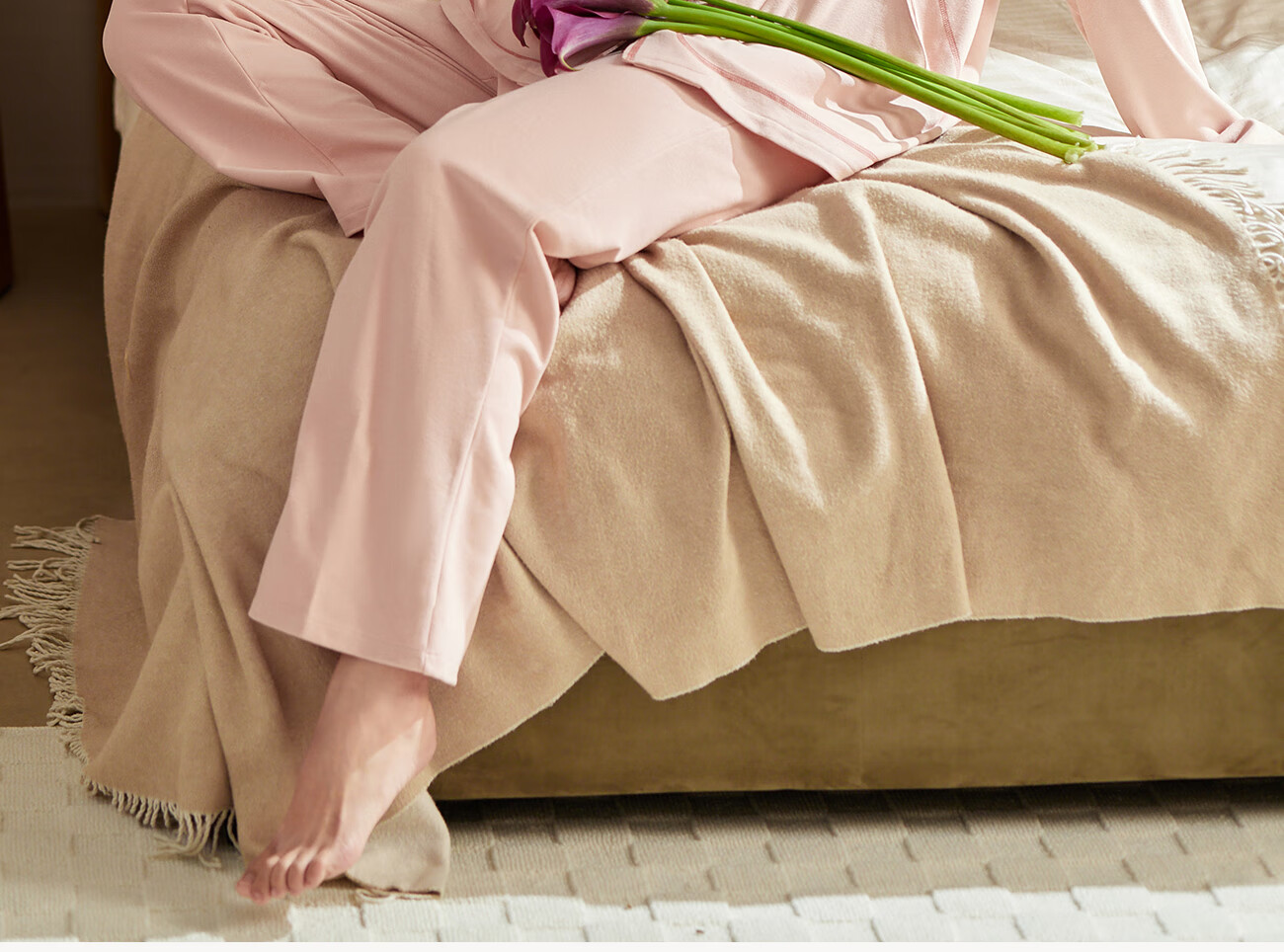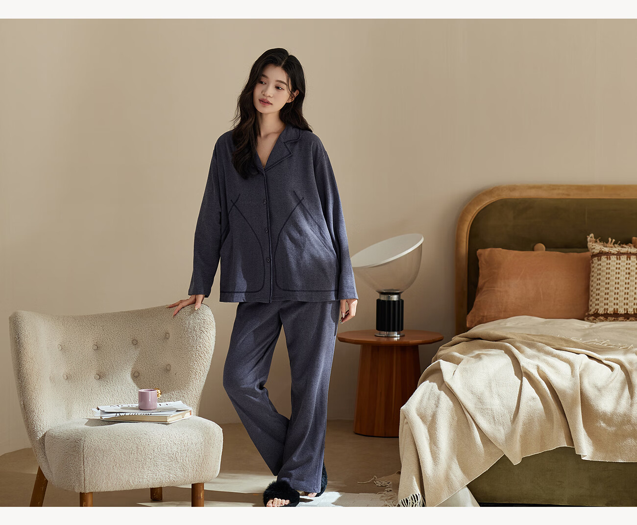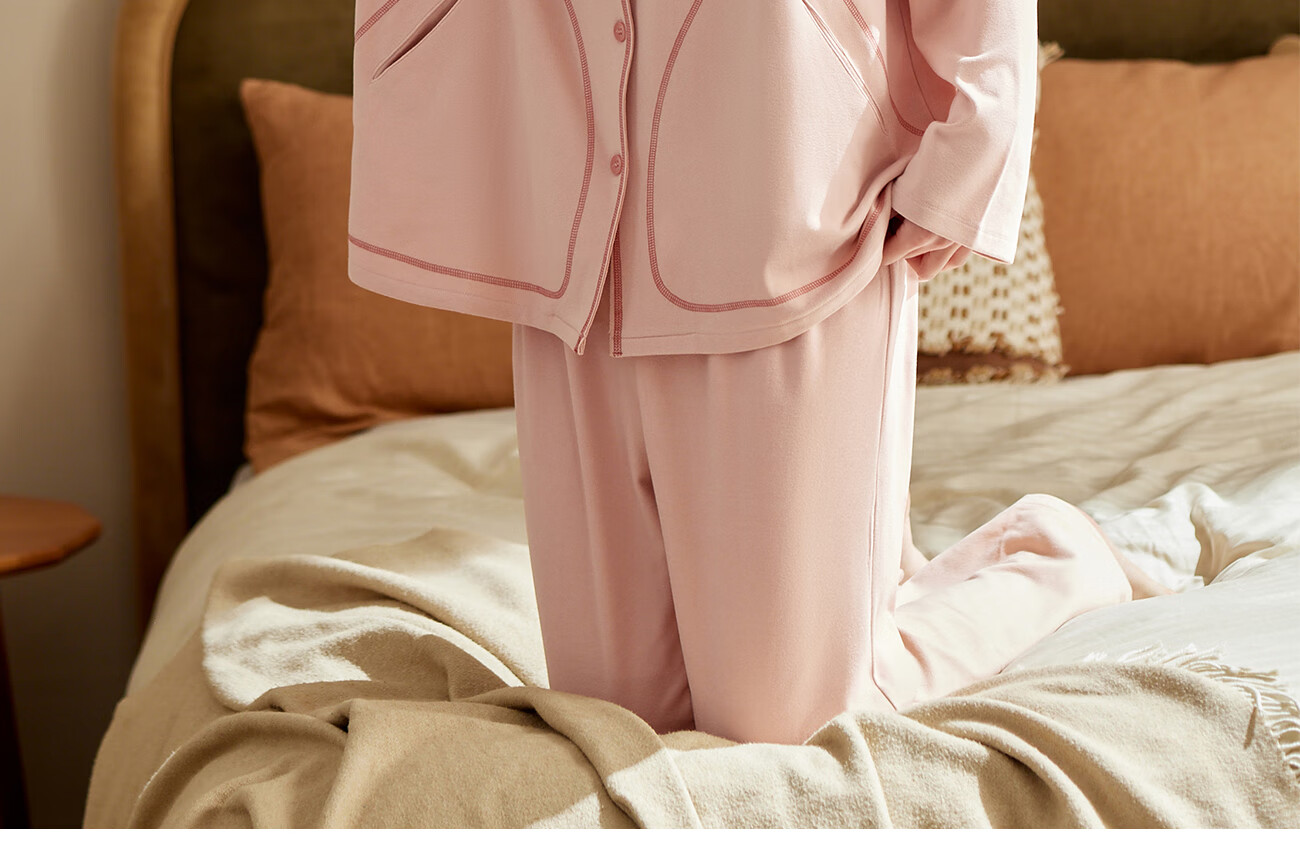 Qiulu Couple Pajamas Women's Comfortable Warm Brushed 25 New Autumn Cardigan Long Sleeve Men's Home Clothes Set Shrimp Pink/Women's S